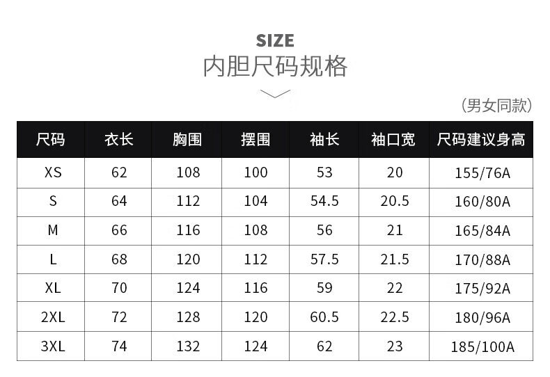 China (cm) 160-165/84-86 165-170 / 88-90 167-172 / 92-96 168-173 / 98-102 170-176 / 106-110