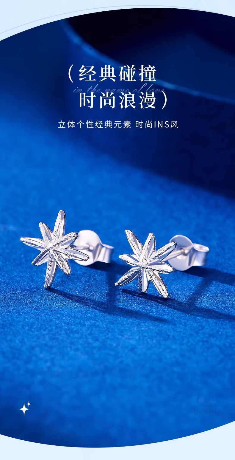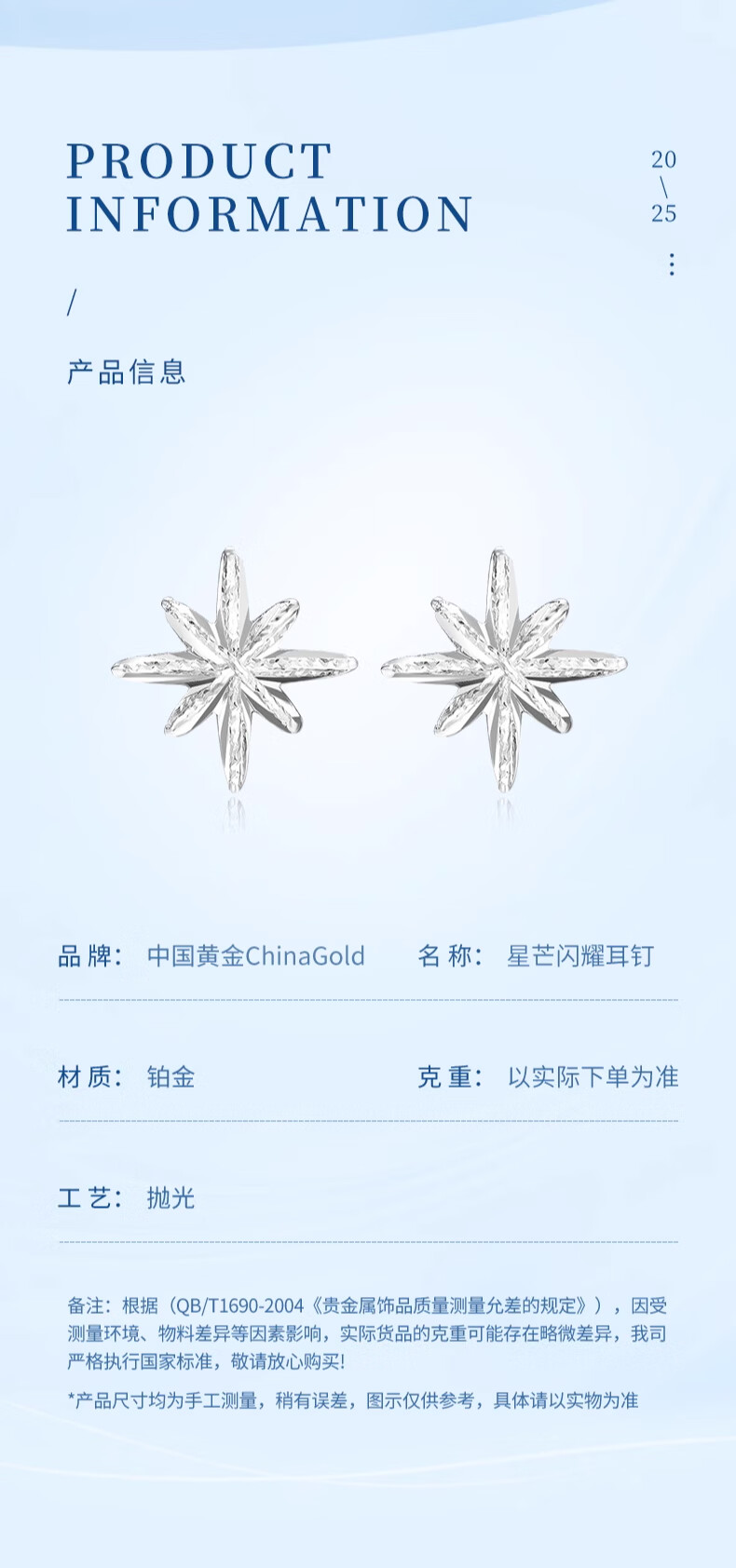 China Gold (CHINA GOLD) PT950 platinum star earrings for women, high-end star shining earrings, light luxury niche birthday gift for girlfriend, platinum star earrings, one pair, about 1.7g, brand gift box