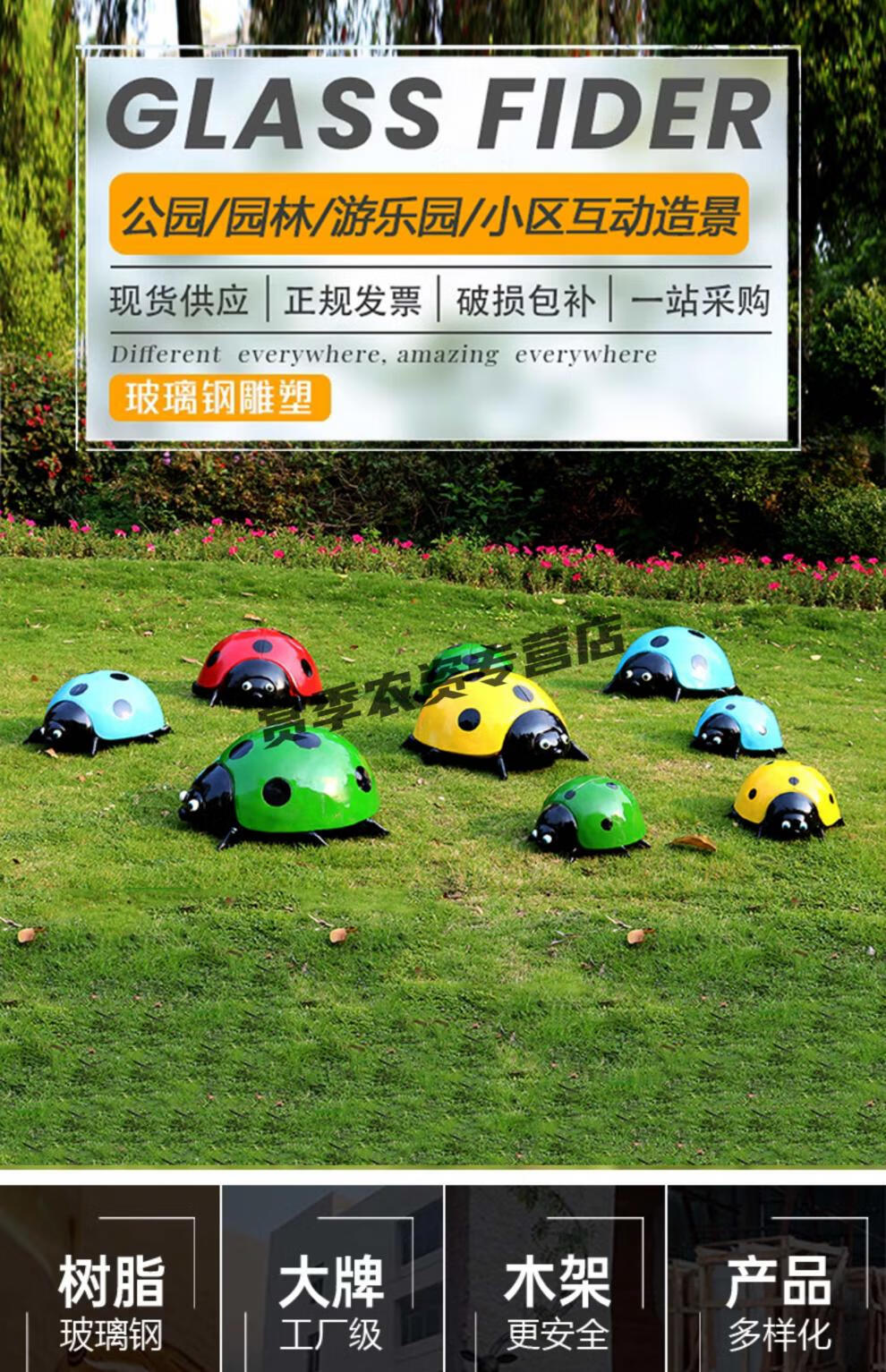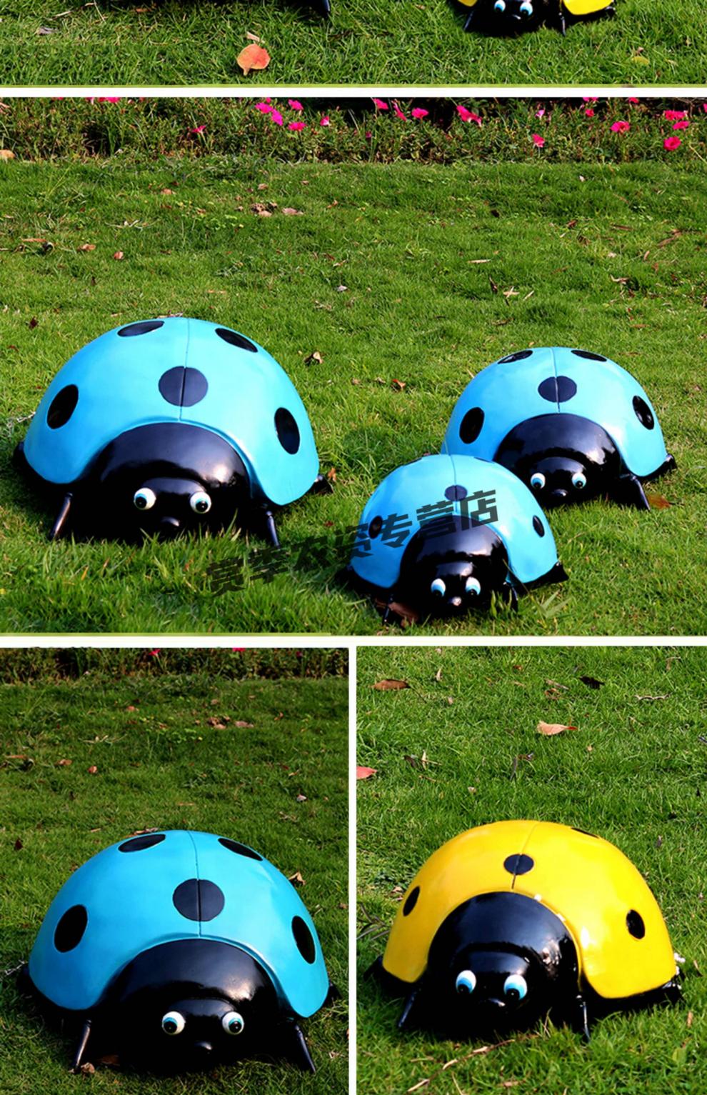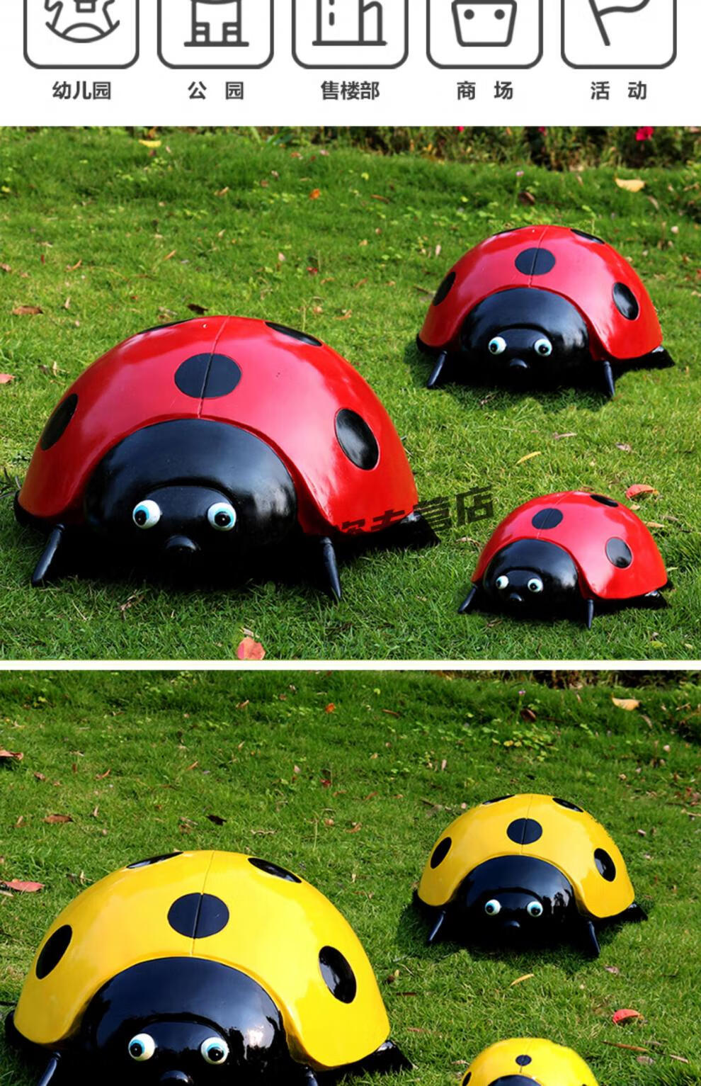 Simulation seven-star ladybug steel courtyard lawn park square luminous beetle floor landscape green sculpture simulation animal yellow beetle trumpet