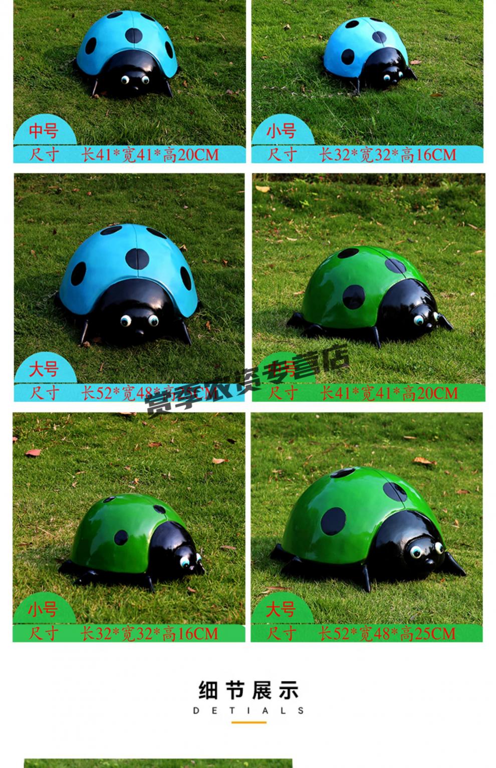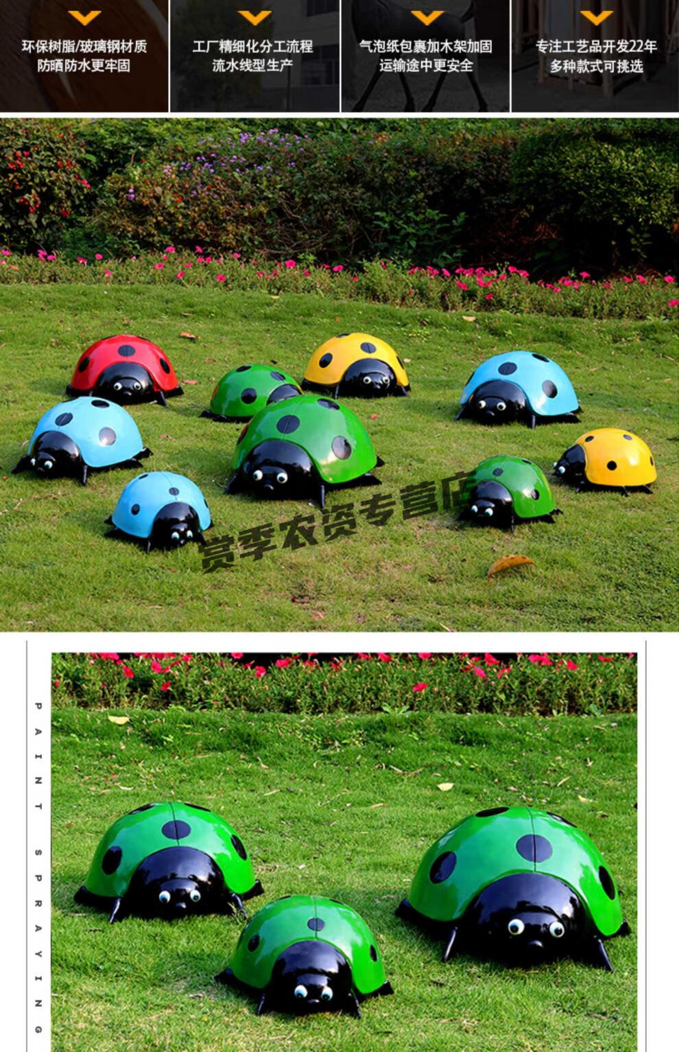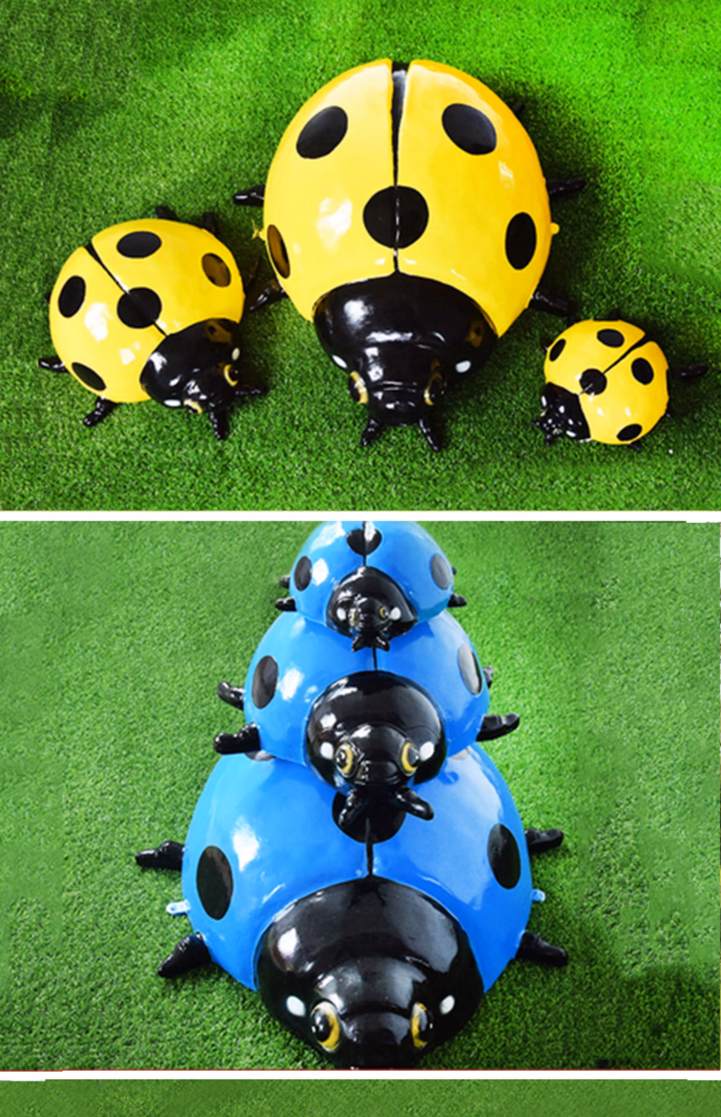 Simulation seven-star ladybug steel courtyard lawn park square luminous beetle floor landscape green sculpture simulation animal yellow beetle trumpet