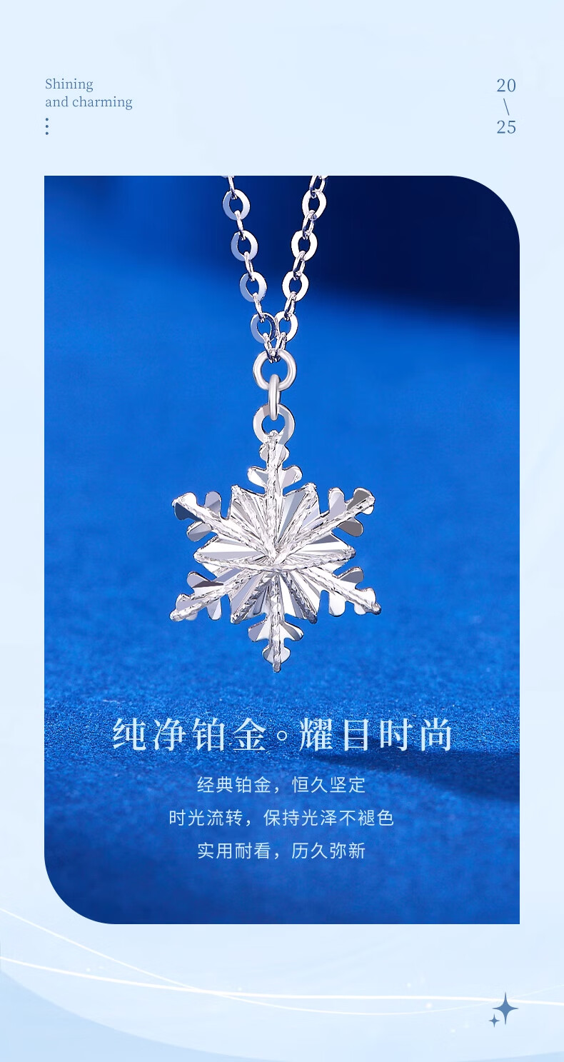 China Gold (CHINA GOLD) PT950 Platinum Romantic Snowflake Pendant Women's Platinum Light Luxury High-Quality Chain Necklace Birthday Gift for Girlfriend PT950 Platinum Romantic Snowflake Chain Approximately 4.3g Brand Gift Box