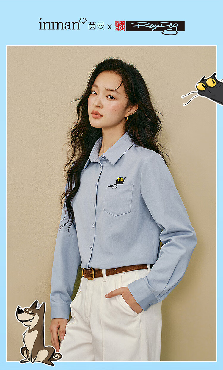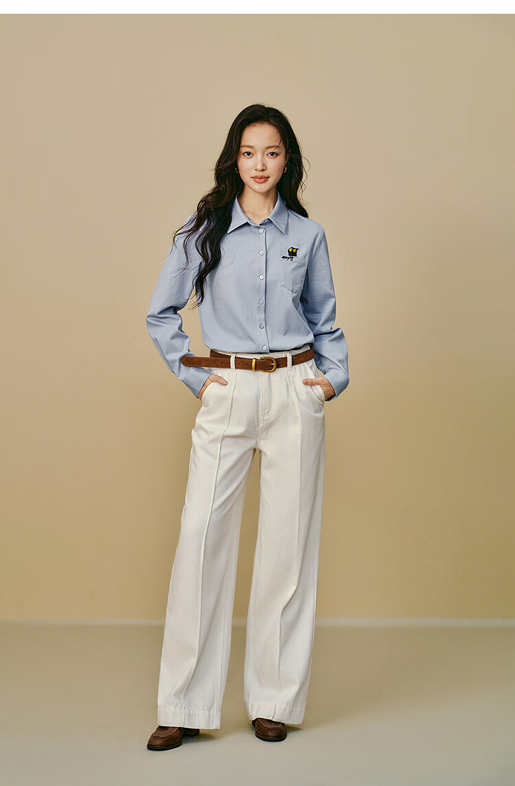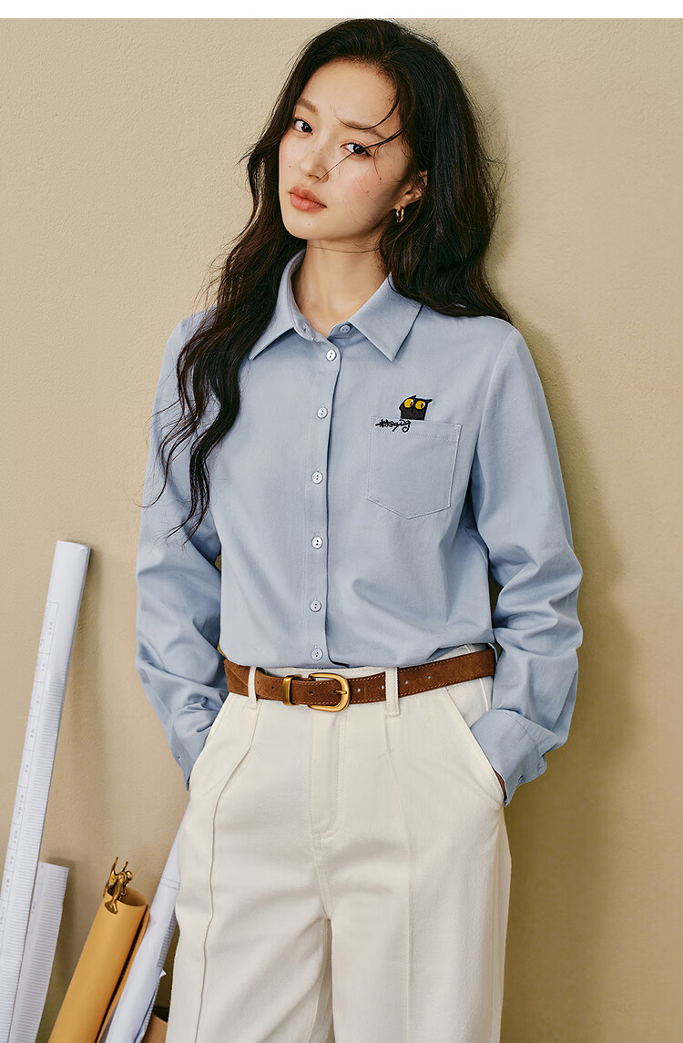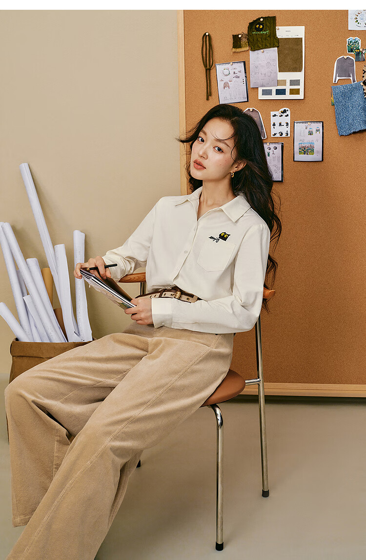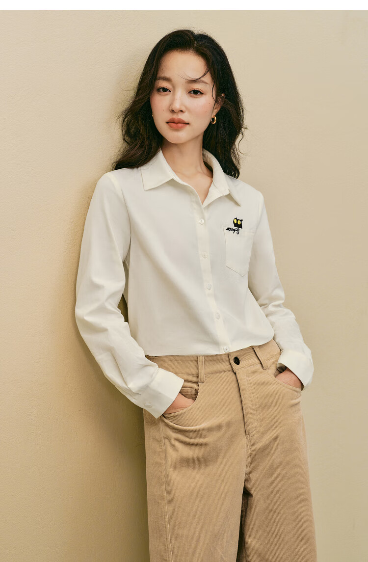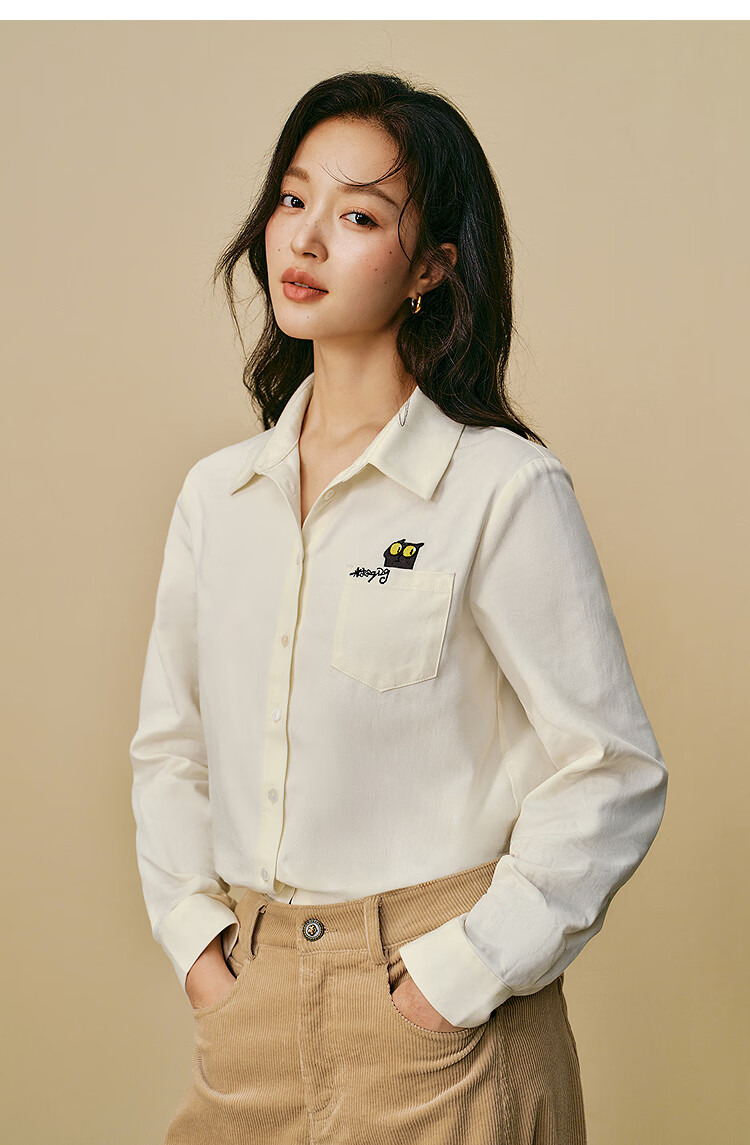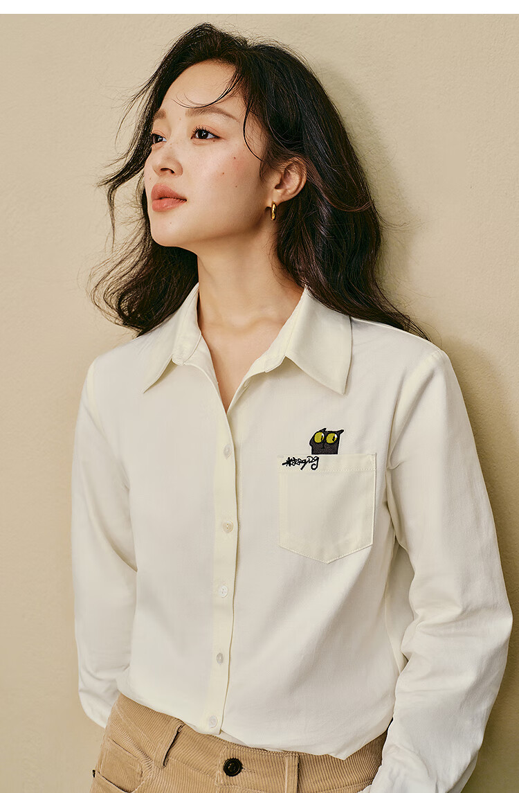 Yinman 2025 autumn and winter new women's clothing | Mirei series cute embroidered brushed cotton shirt long-sleeved shirt off-white M