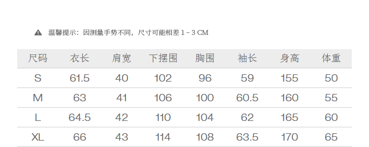 Size (cm) 42 44 46 48 50