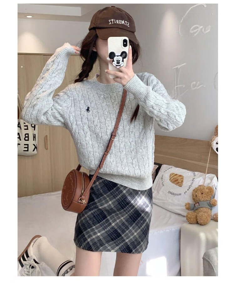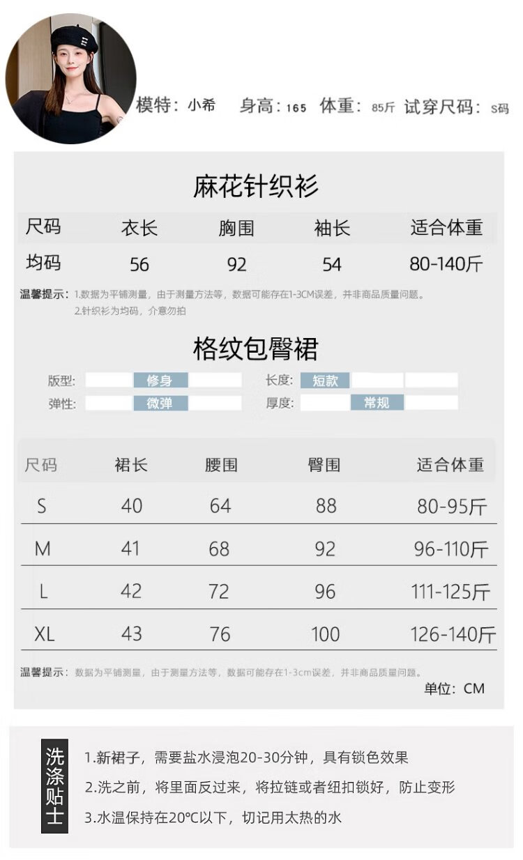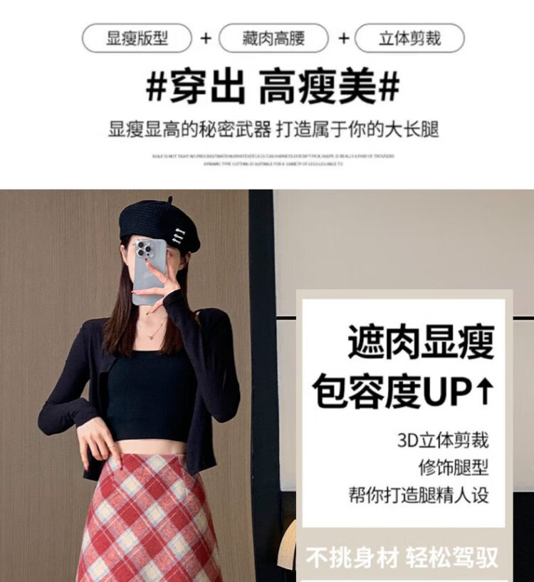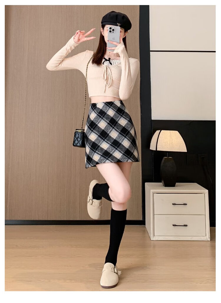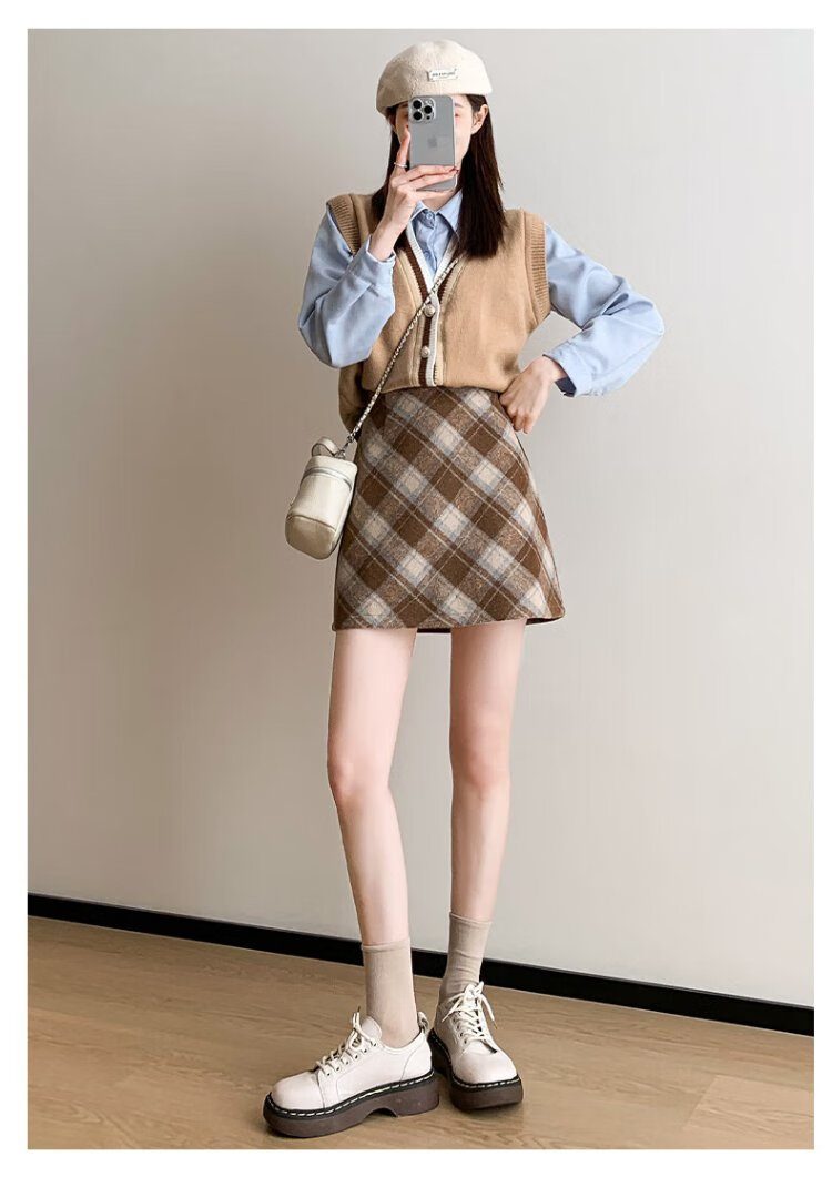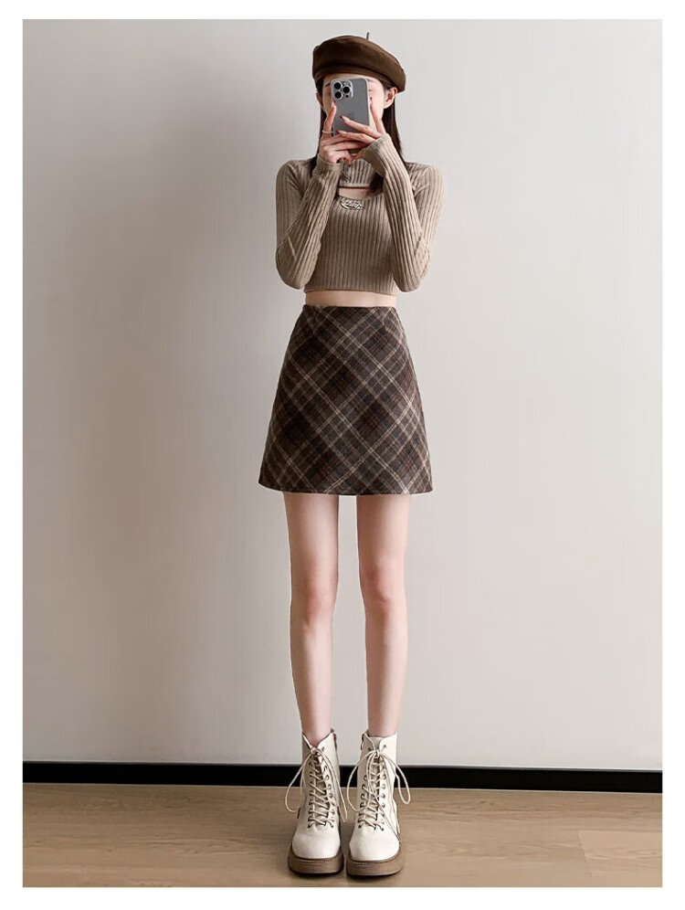Langsha Plaid Skirt Women's 2025 Autumn and Winter New Woolen Hip Skirt Korean Style A-Line Short Skirt Plus Velvet Warm Bottoming Skirt Dark Gray Small Plaid Skin Friendly Wool Comes with Lining M Weight 96-110 Jin Jin equals 0.5 kg Waist 68CM Hips 92CM