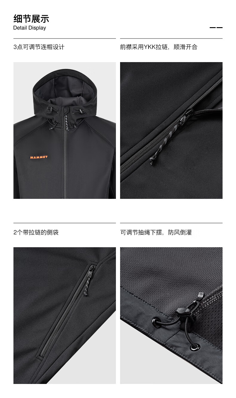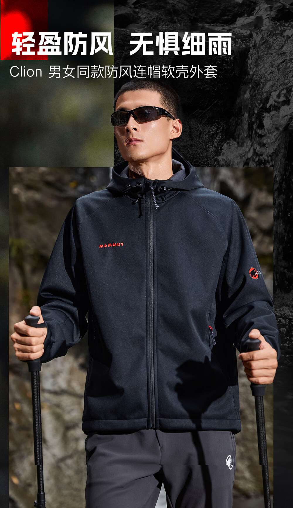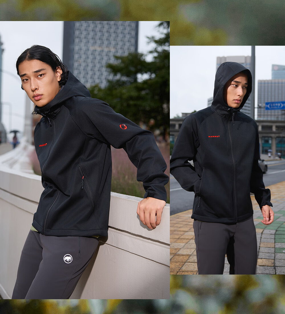 Mammoth (MAMMUT) Red Label Clion Men's and Women's Outdoor Windproof and Wear-Resistant Hooded Jacket Soft Shell Black Red Label M
