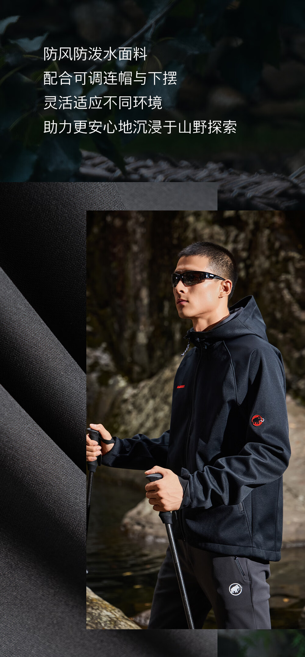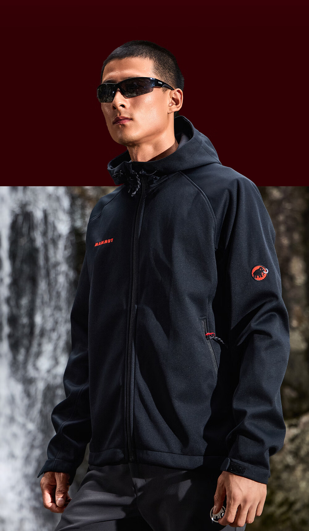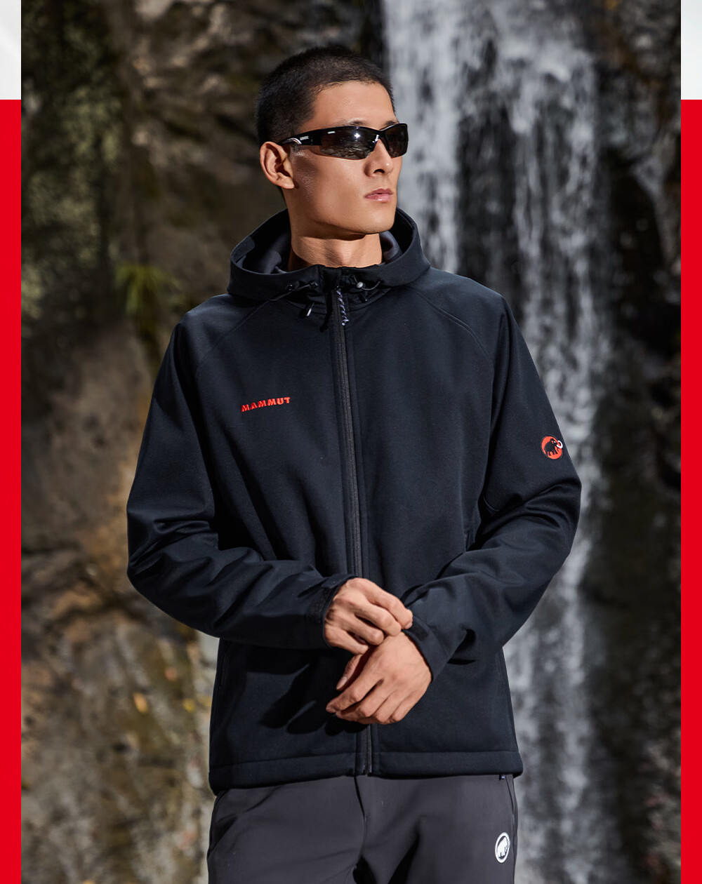 Mammoth (MAMMUT) Red Label Clion Men's and Women's Outdoor Windproof and Wear-Resistant Hooded Jacket Soft Shell Black Red Label M