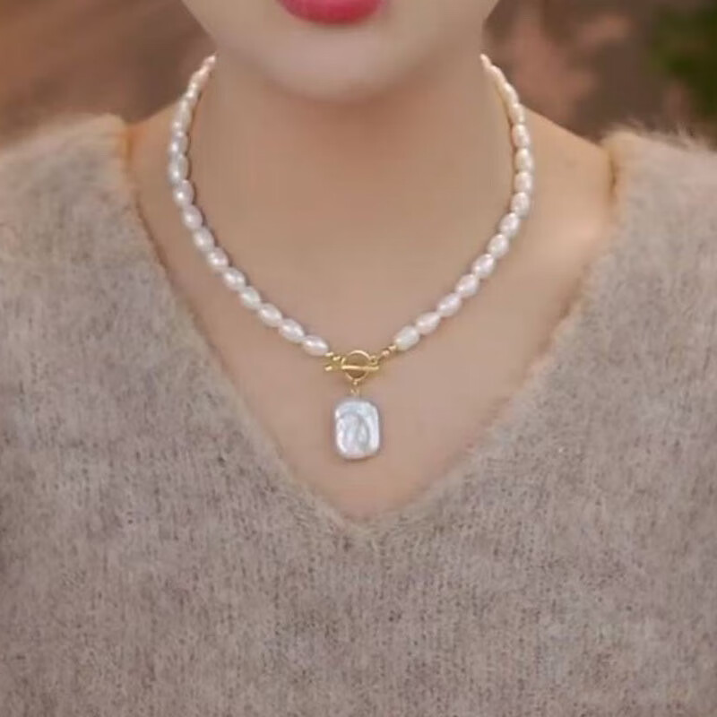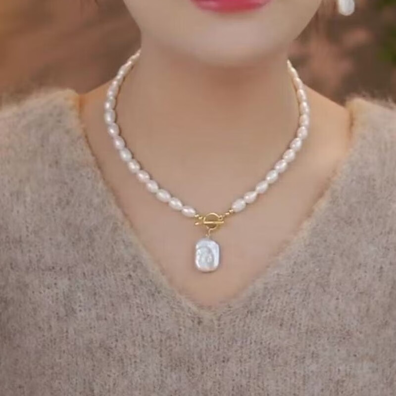 KZD Old Phoenix 999 Baroque Pendant Pearl Silver OT Buckle Necklace Women's Light Luxury Niche 2024 New Fashion Women Baroque Pearl Gold OT Buckle Necklace