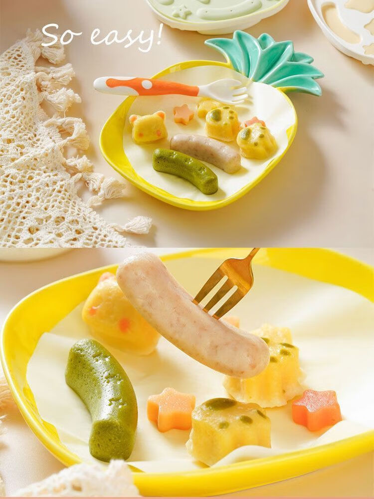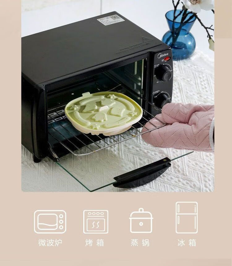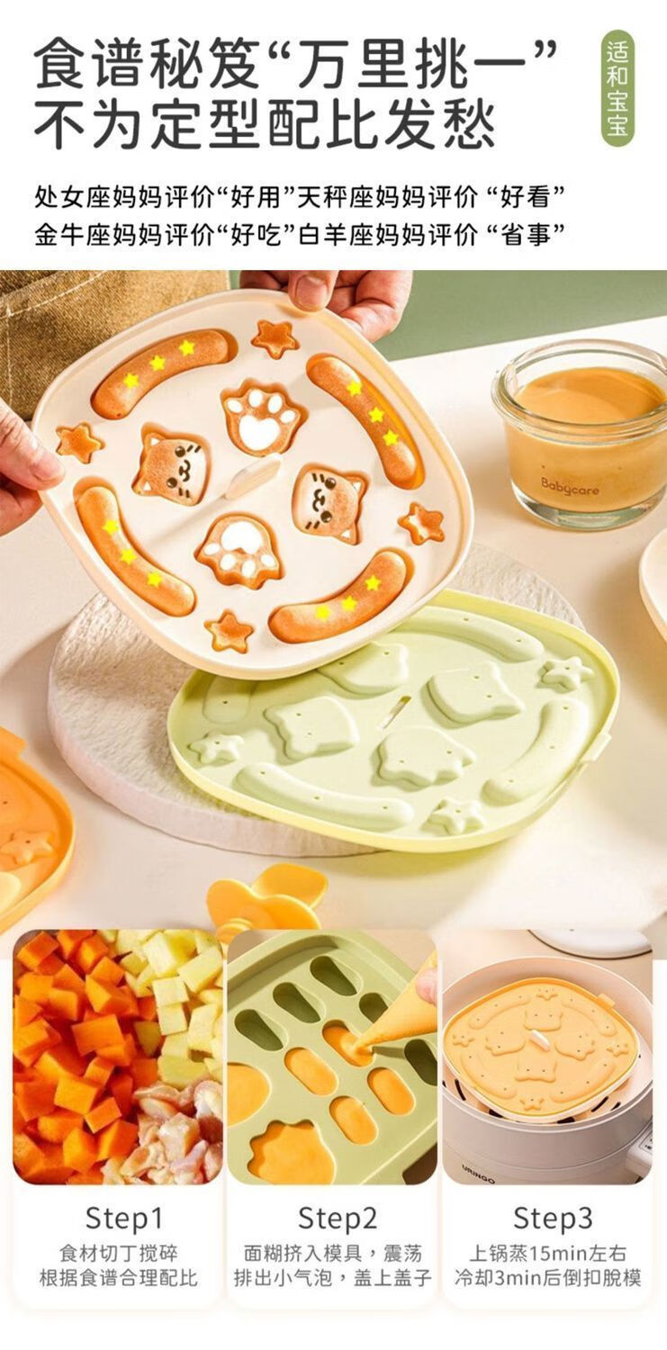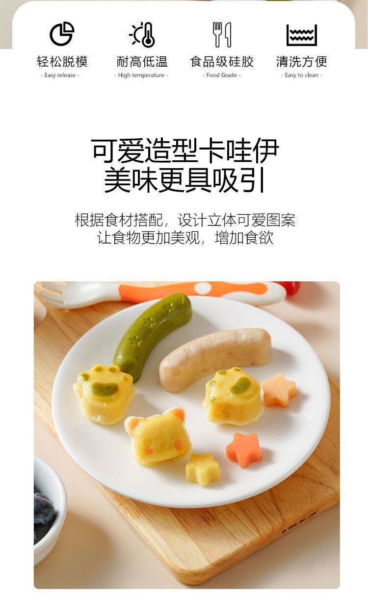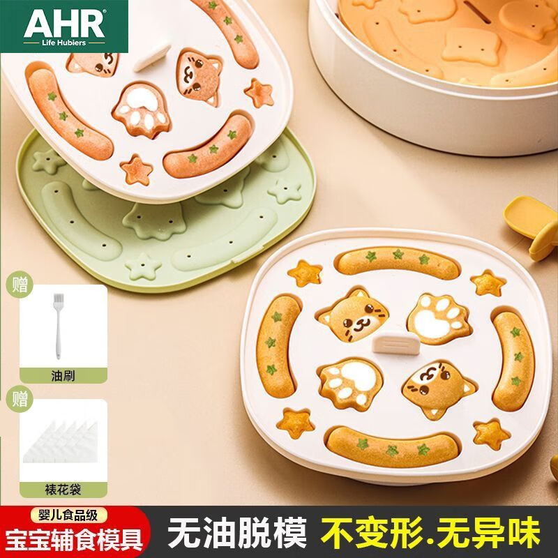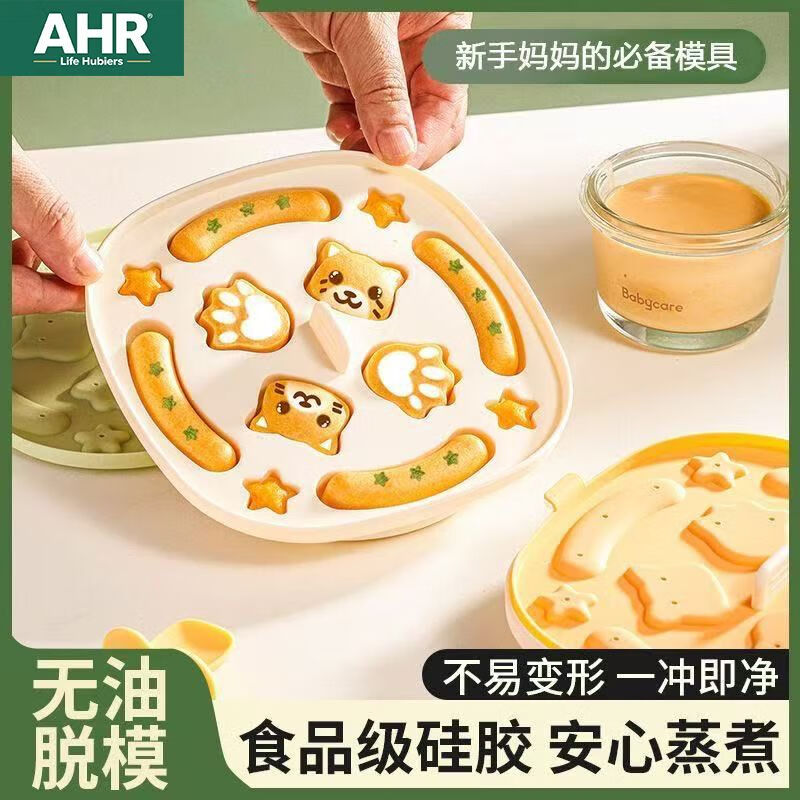 AHR baby food supplement steamed cake mold new thickened high temperature resistant cartoon baking household food grade silicone maternal and infant grade silicone material single mold + oil brush + 50 decorating bags Cute DIY party cat-little duck yellow comes with dust-proof breathable cover