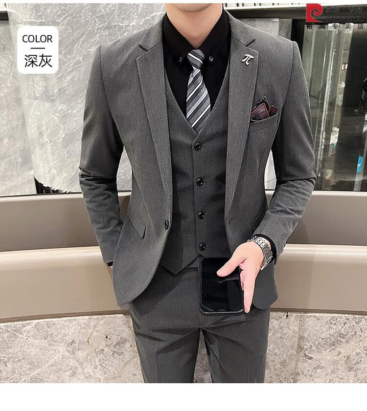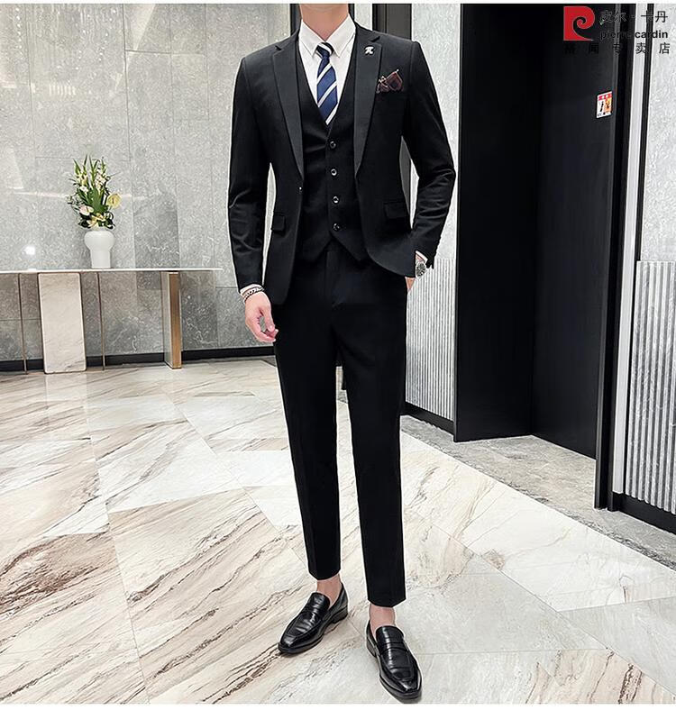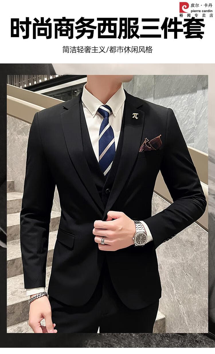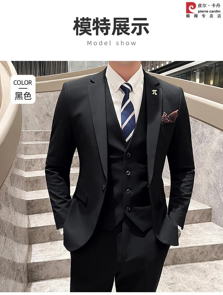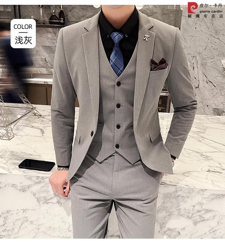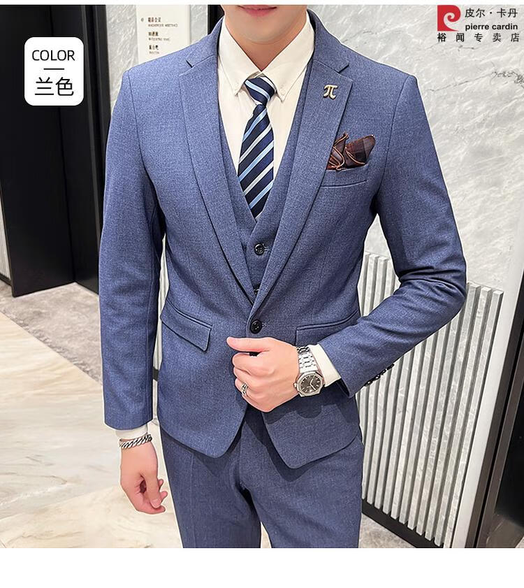 Pierre Cardin high-end suit men's 2025 new wedding dress fashion business professional formal suit three-piece suit apricot three-piece suit 5XL
