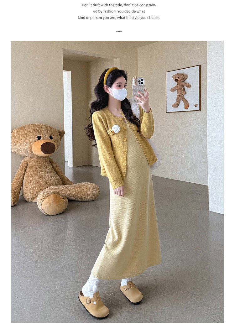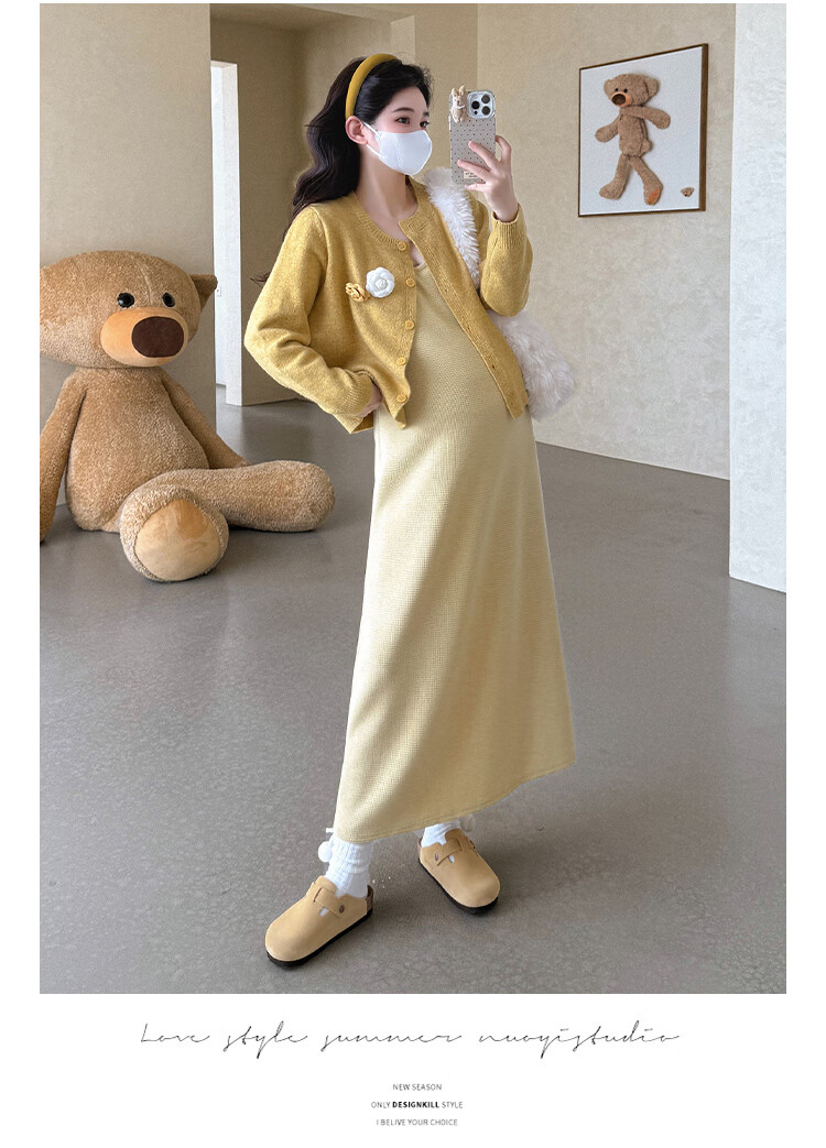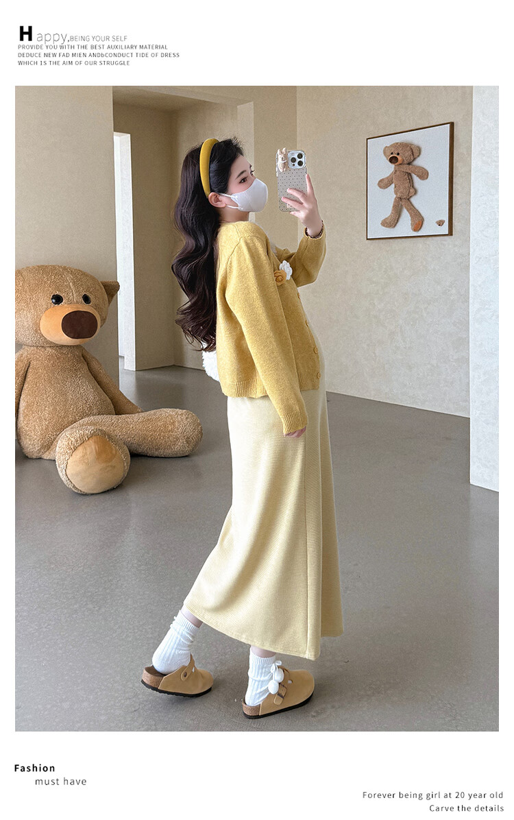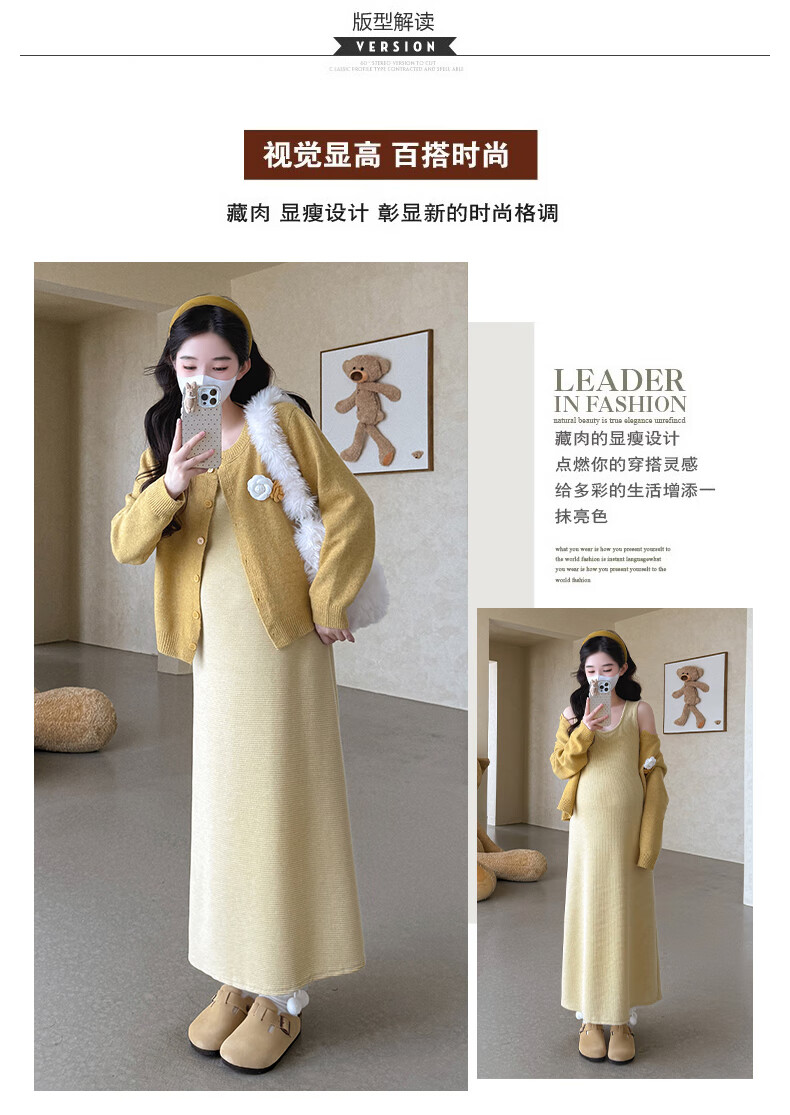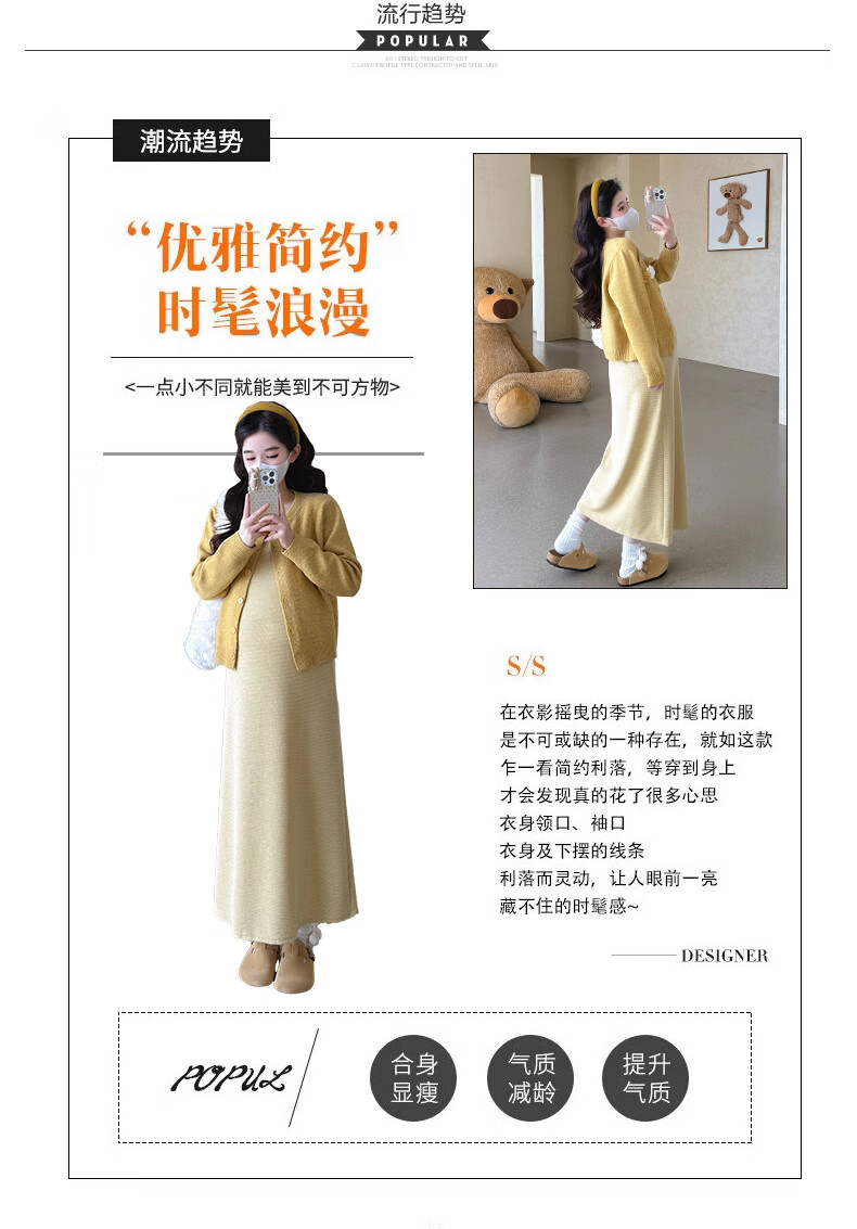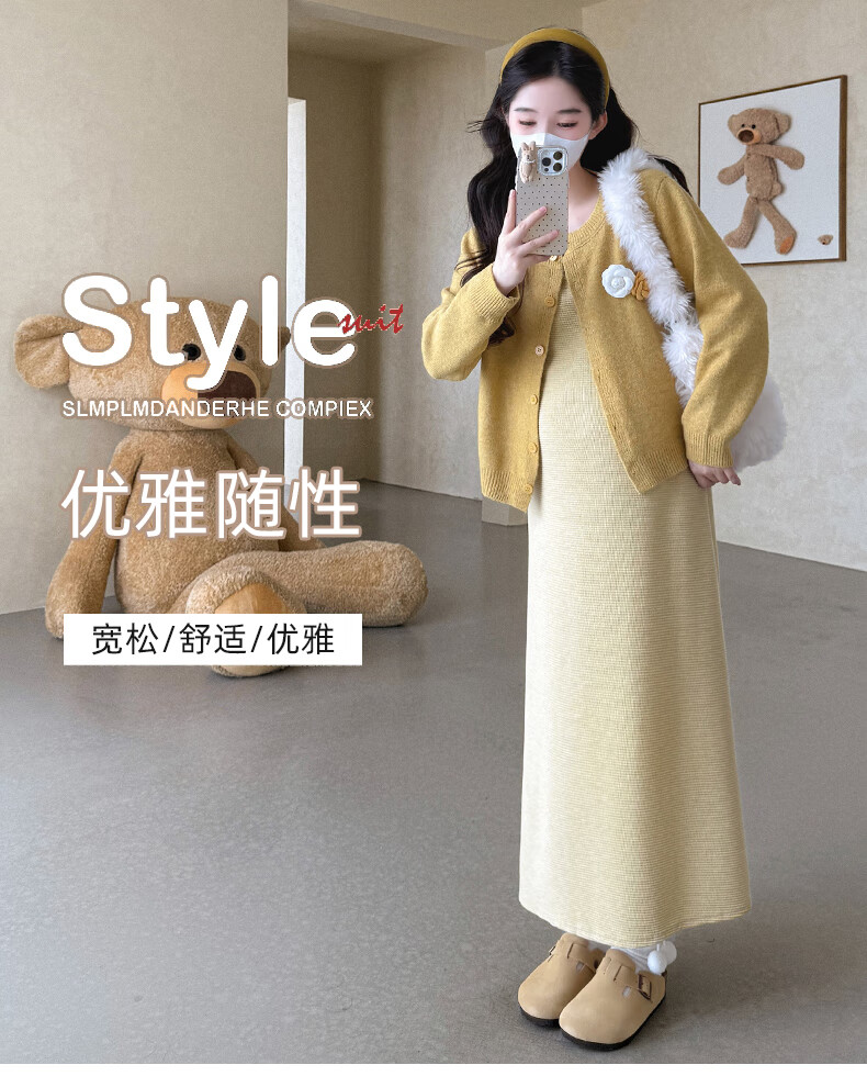 Ran Qiqi Maternity Dress Set Autumn and Winter 2025 New High-end Western Style Sweater Jacket Vest Skirt Knitted Two-piece Set Sweater Jacket + Vest Skirt (Set) L