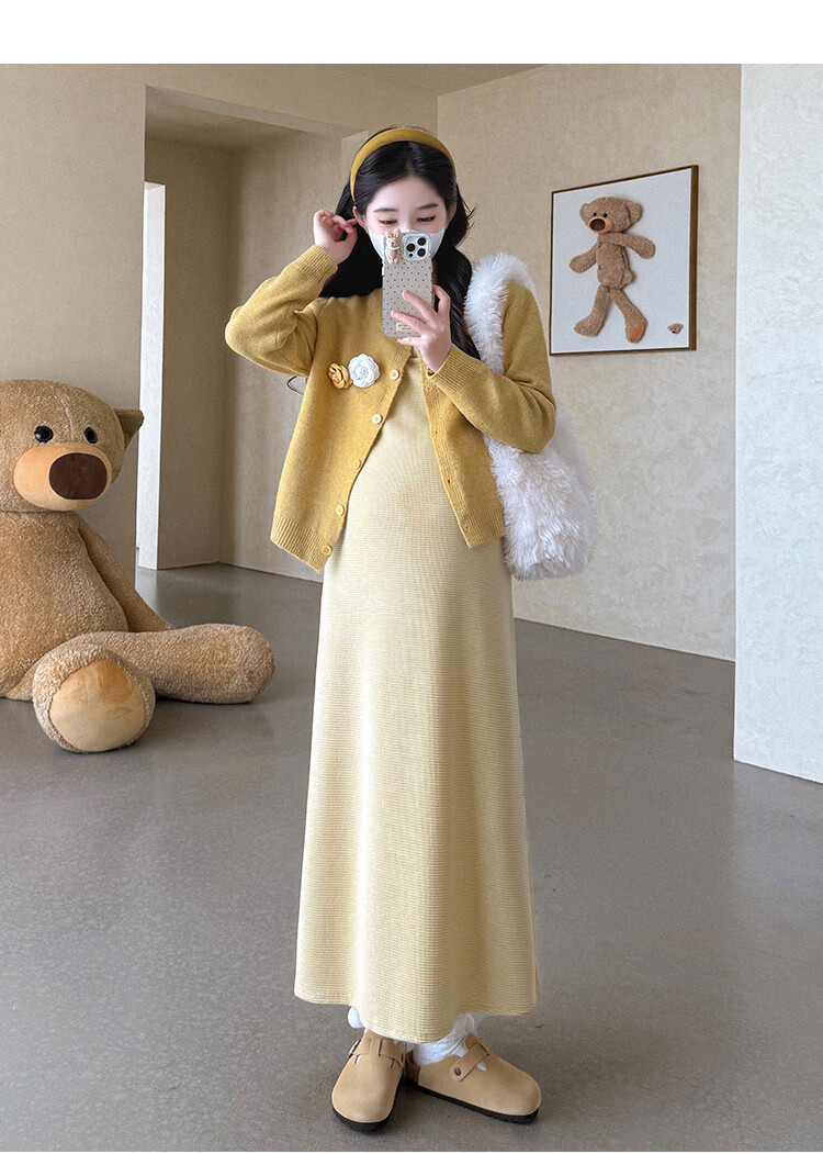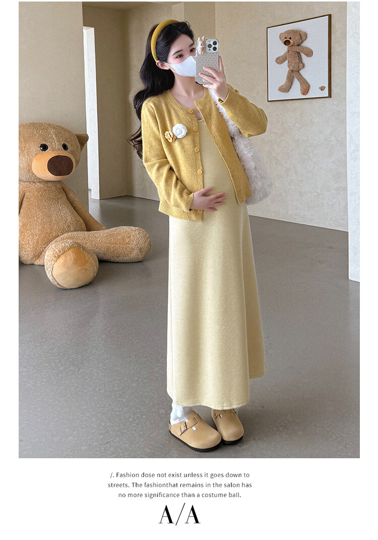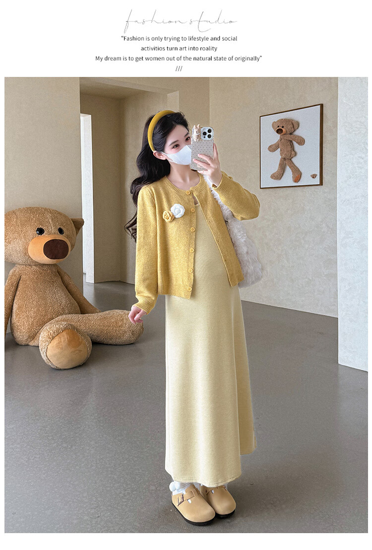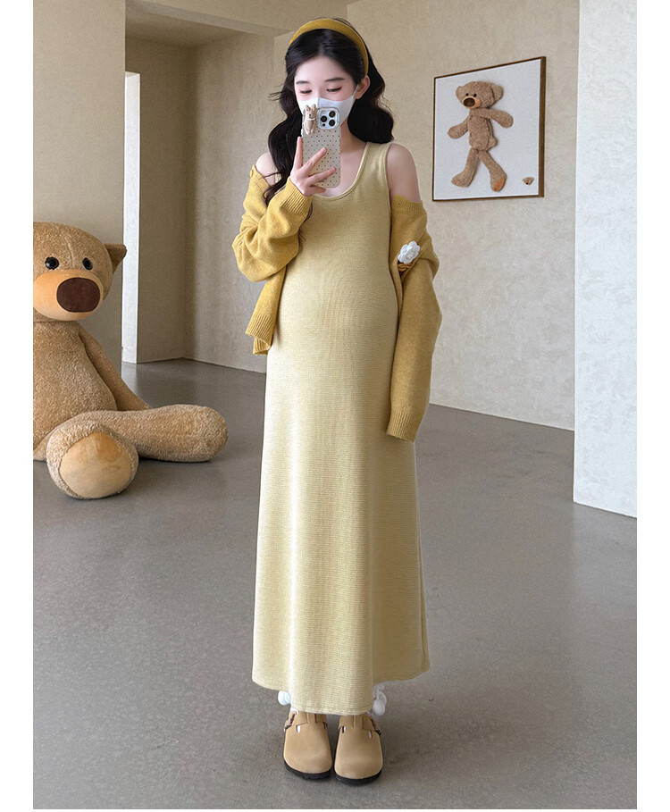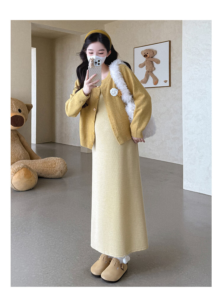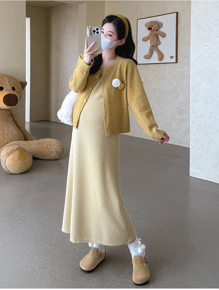 Ran Qiqi Maternity Dress Set Autumn and Winter 2025 New High-end Western Style Sweater Jacket Vest Skirt Knitted Two-piece Set Sweater Jacket + Vest Skirt (Set) L