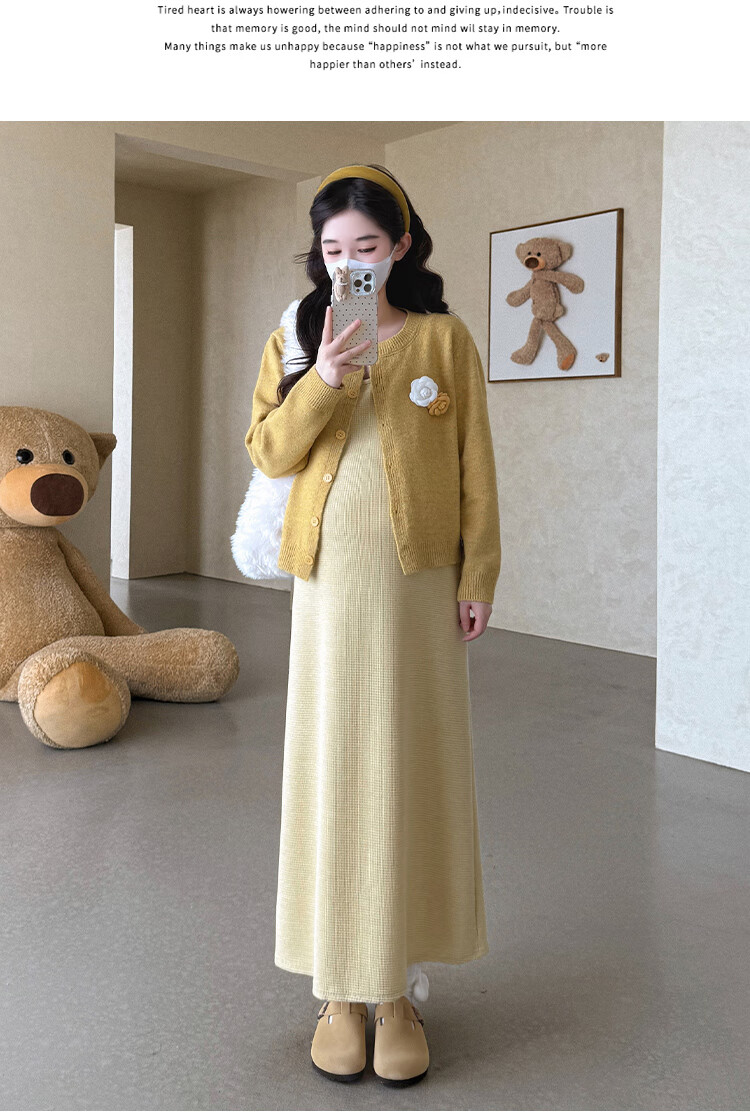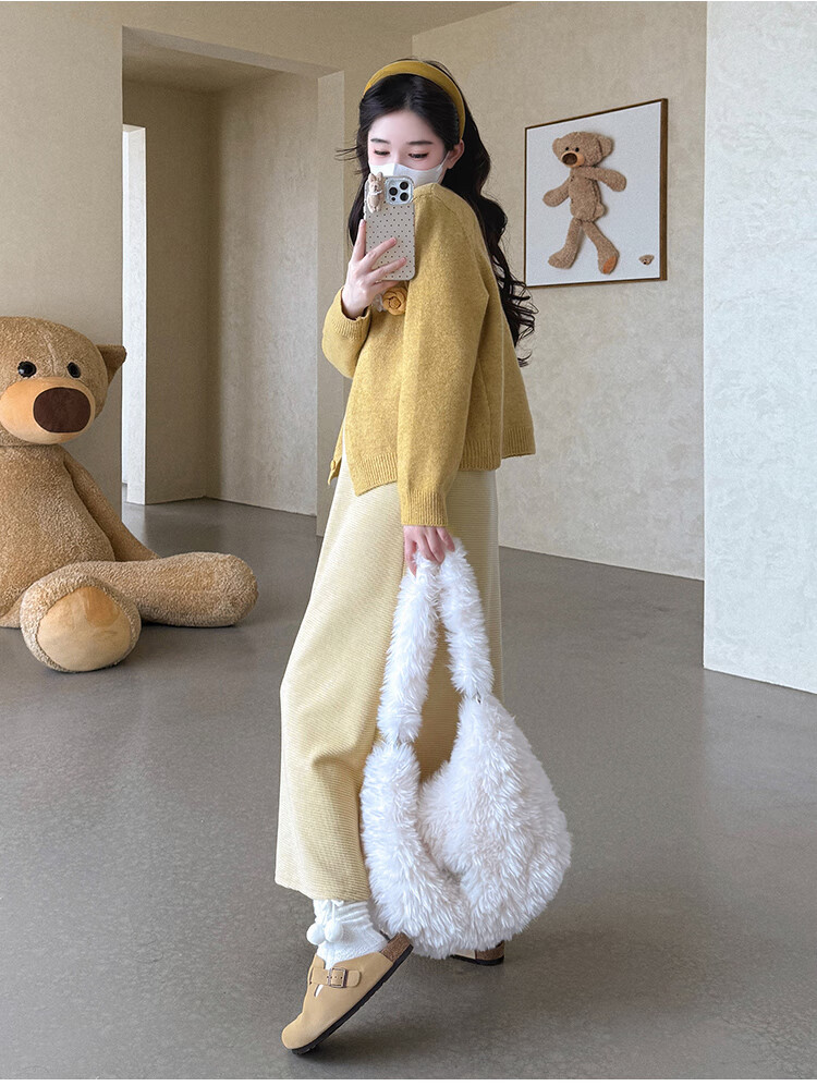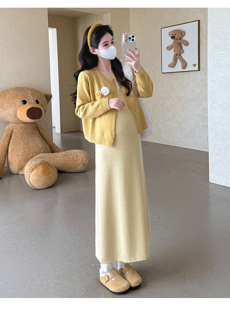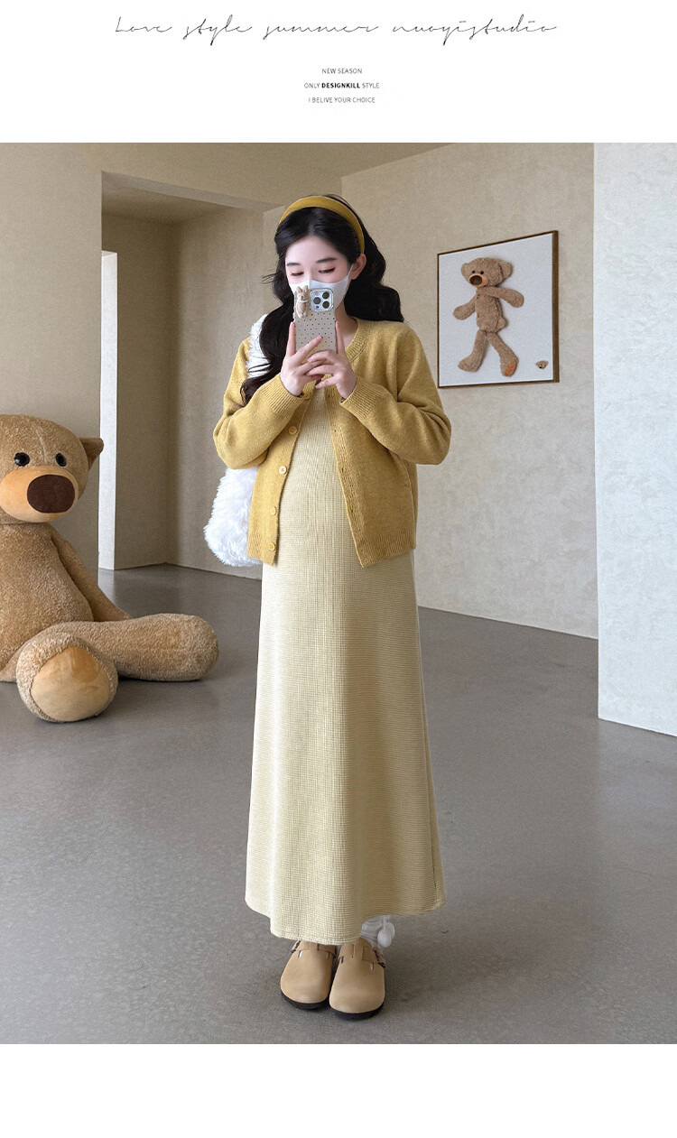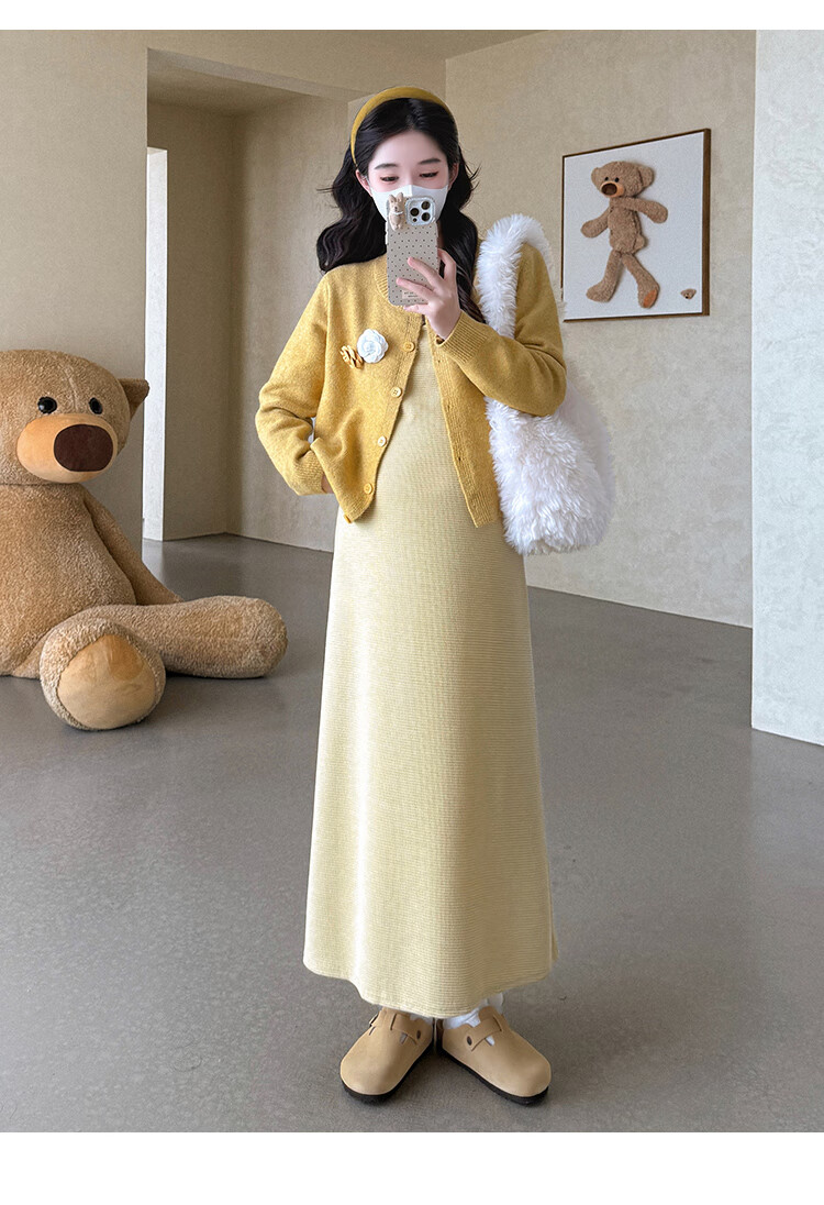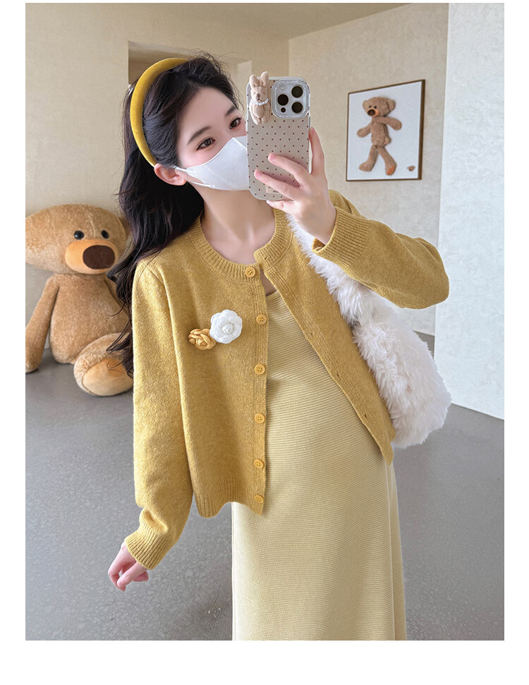 Ran Qiqi Maternity Dress Set Autumn and Winter 2025 New High-end Western Style Sweater Jacket Vest Skirt Knitted Two-piece Set Sweater Jacket + Vest Skirt (Set) L