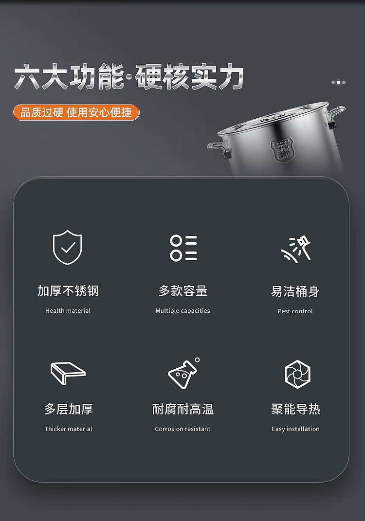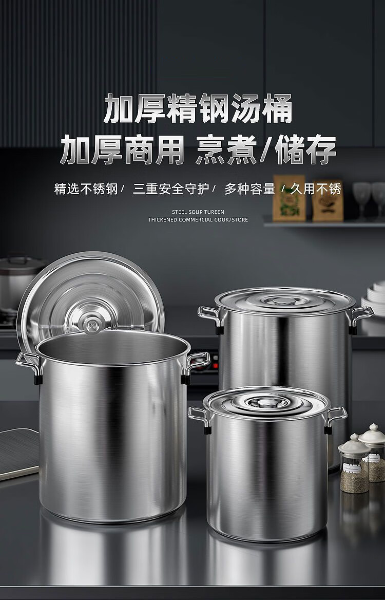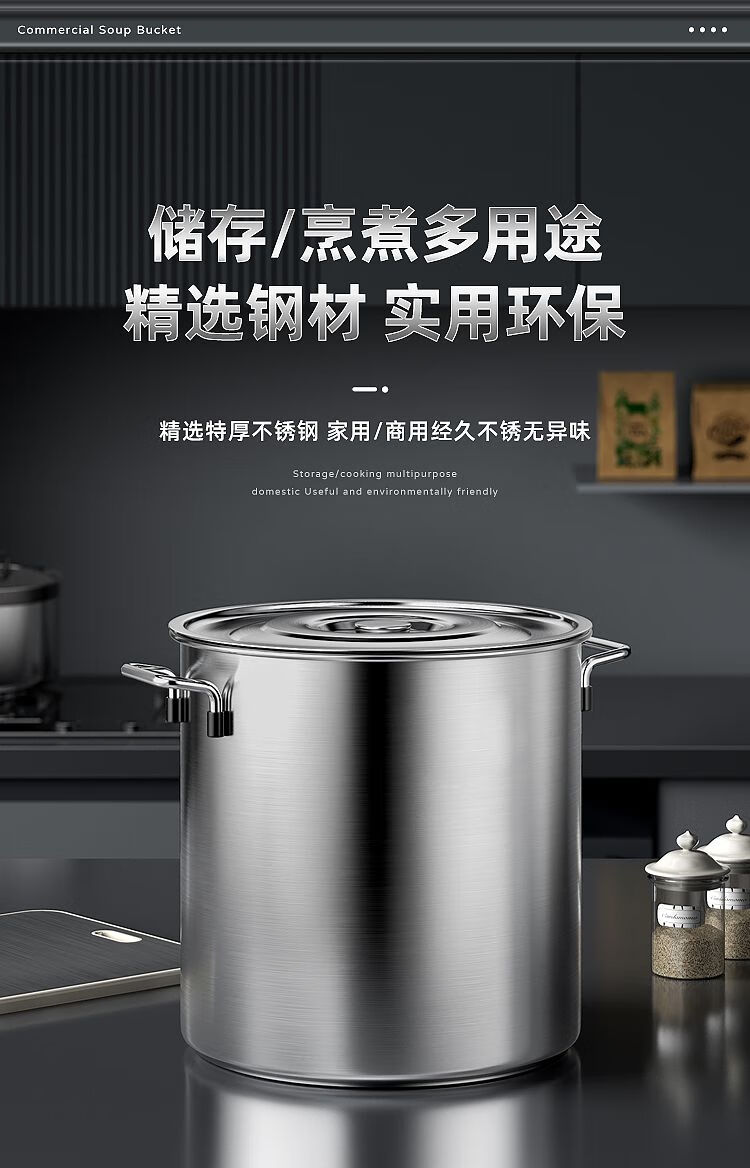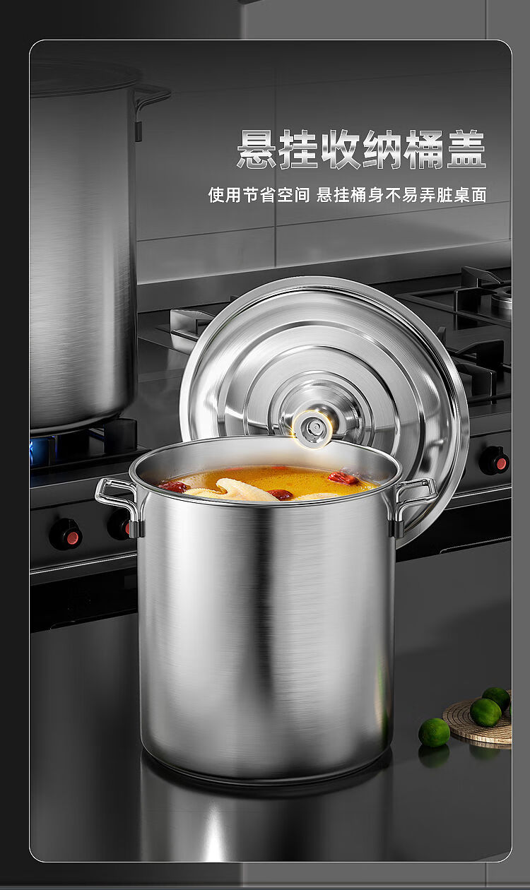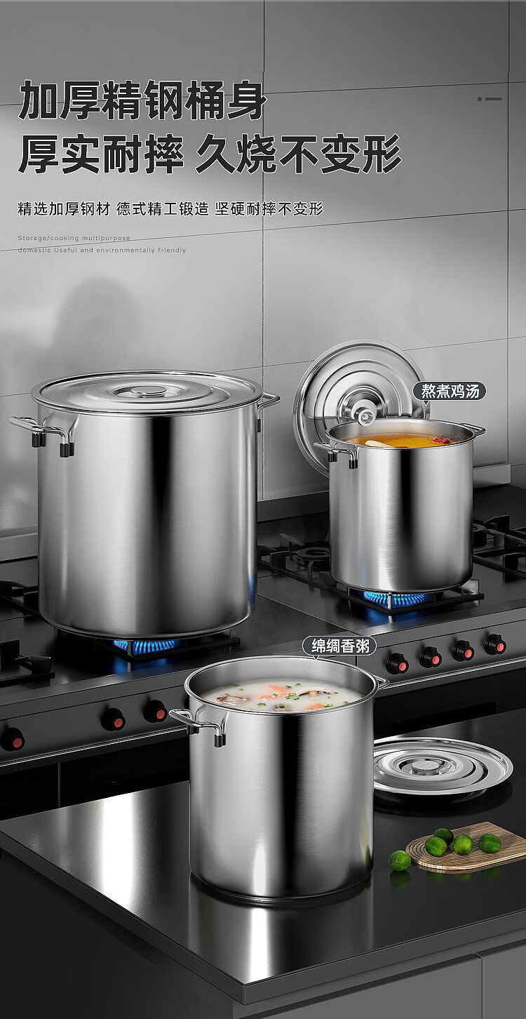 Commercial extra thick stainless steel barrel round barrel household large capacity soup pot water storage barrel oil barrel stewed meat pot stall soup barrel thickened soup barrel 40*50