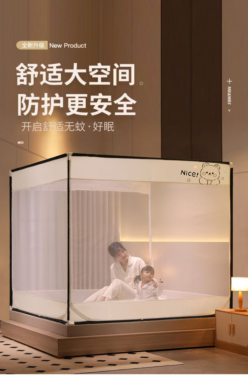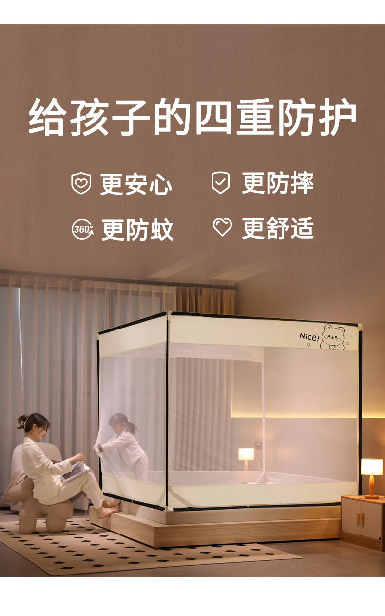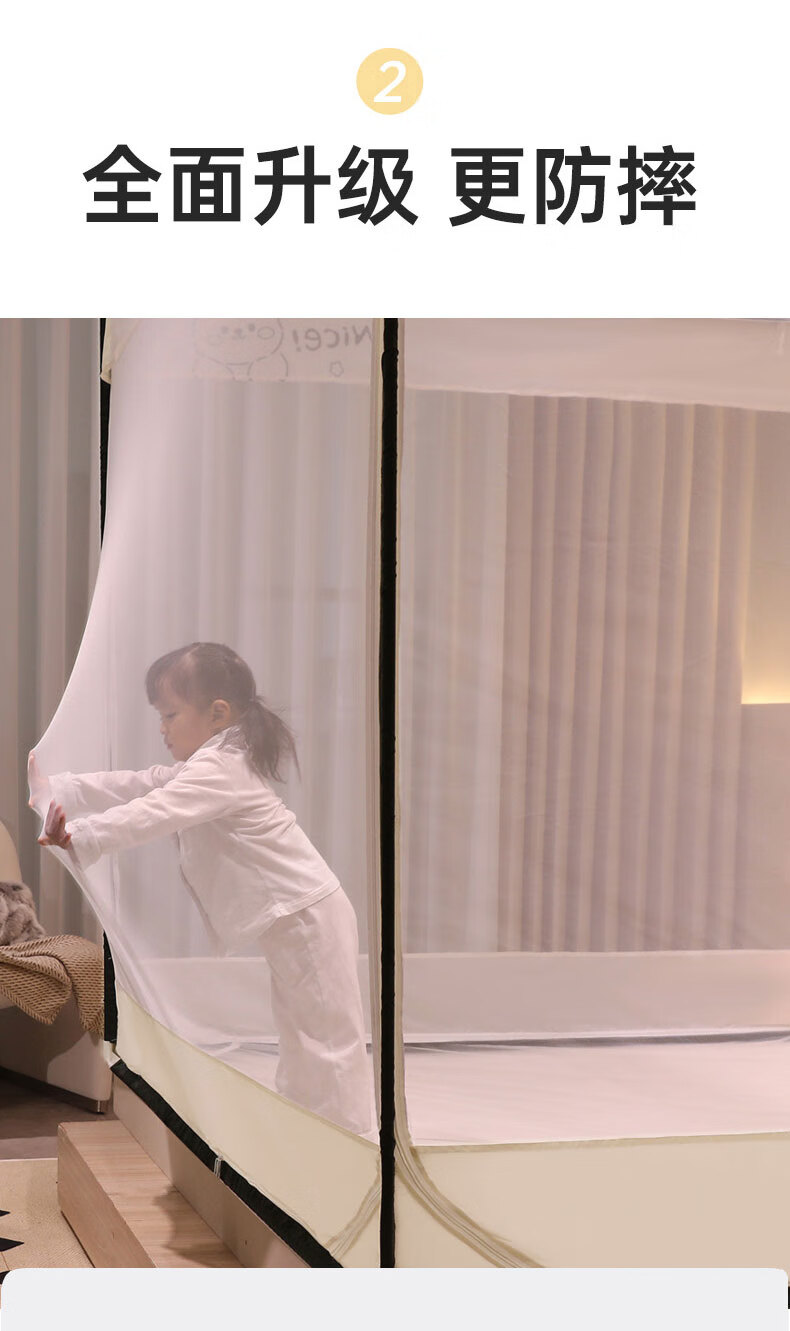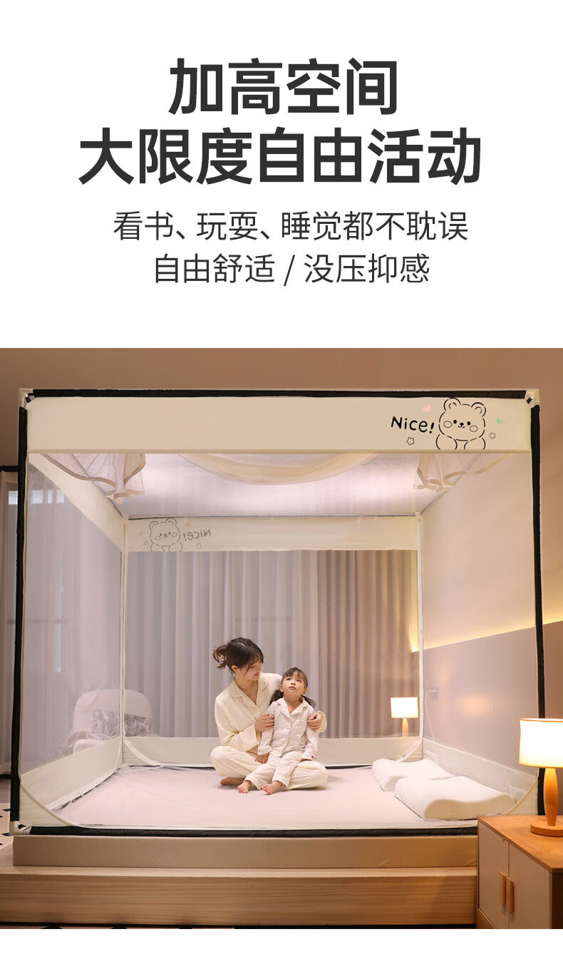 Nanjiren Baby Anti-fall Mosquito Net Stand 1.8x2m Home Pattern Mongolian Yurt Free Installation Children's Thickened Full Bottom Three Doors Ness Bear Baby Anti-fall Class A Full Bottom 180cm*200cm*170cm Comes with Dustproof Top