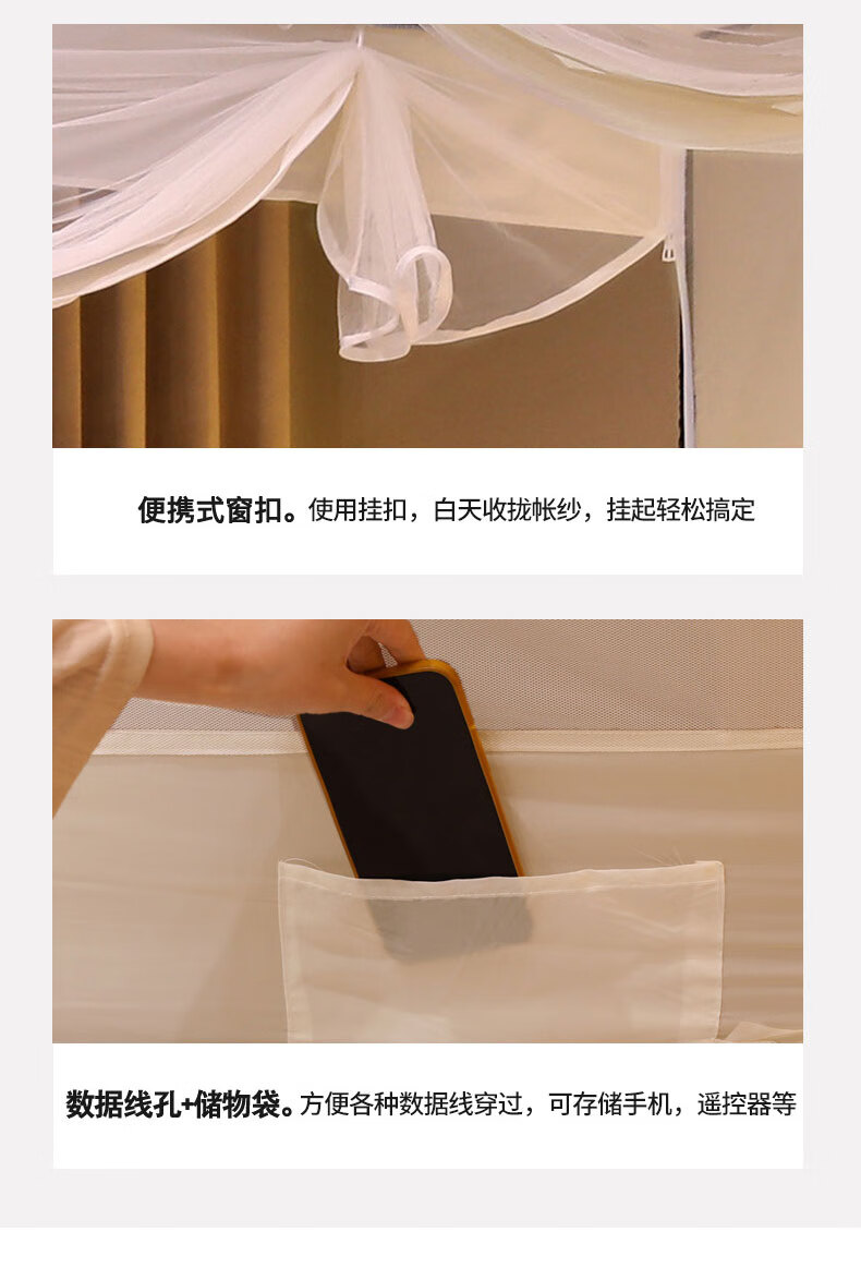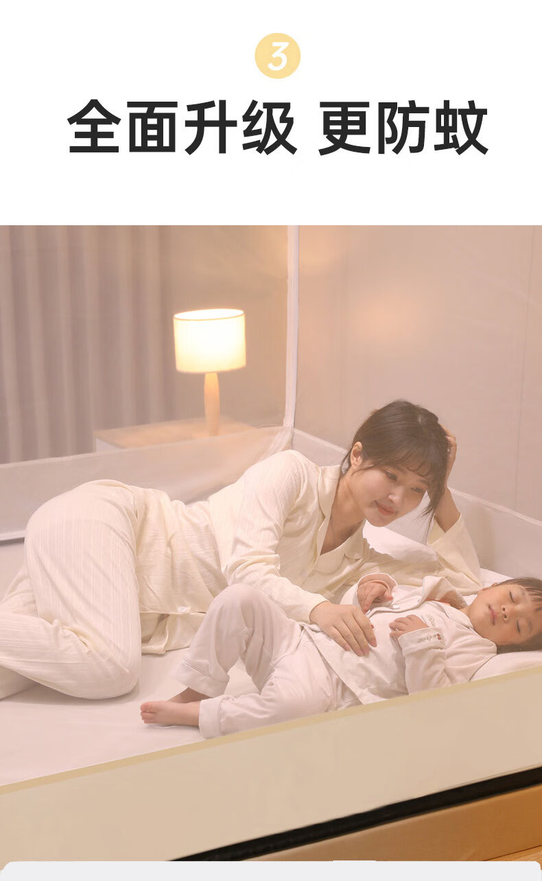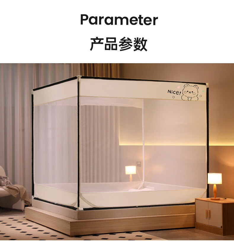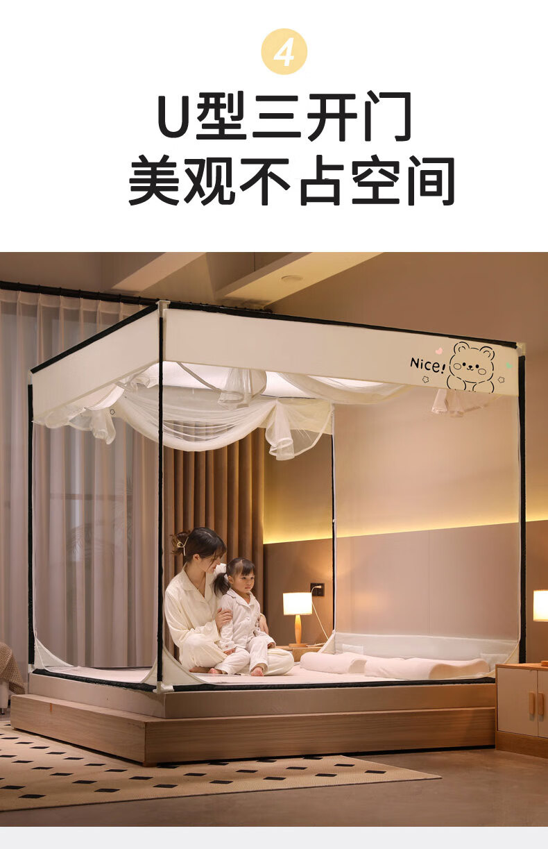 Nanjiren Baby Anti-fall Mosquito Net Stand 1.8x2m Home Pattern Mongolian Yurt Free Installation Children's Thickened Full Bottom Three Doors Ness Bear Baby Anti-fall Class A Full Bottom 180cm*200cm*170cm Comes with Dustproof Top