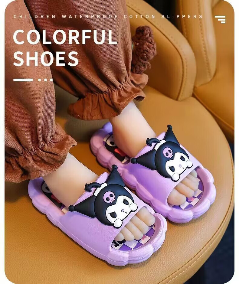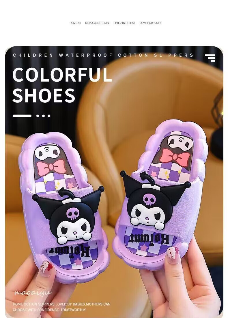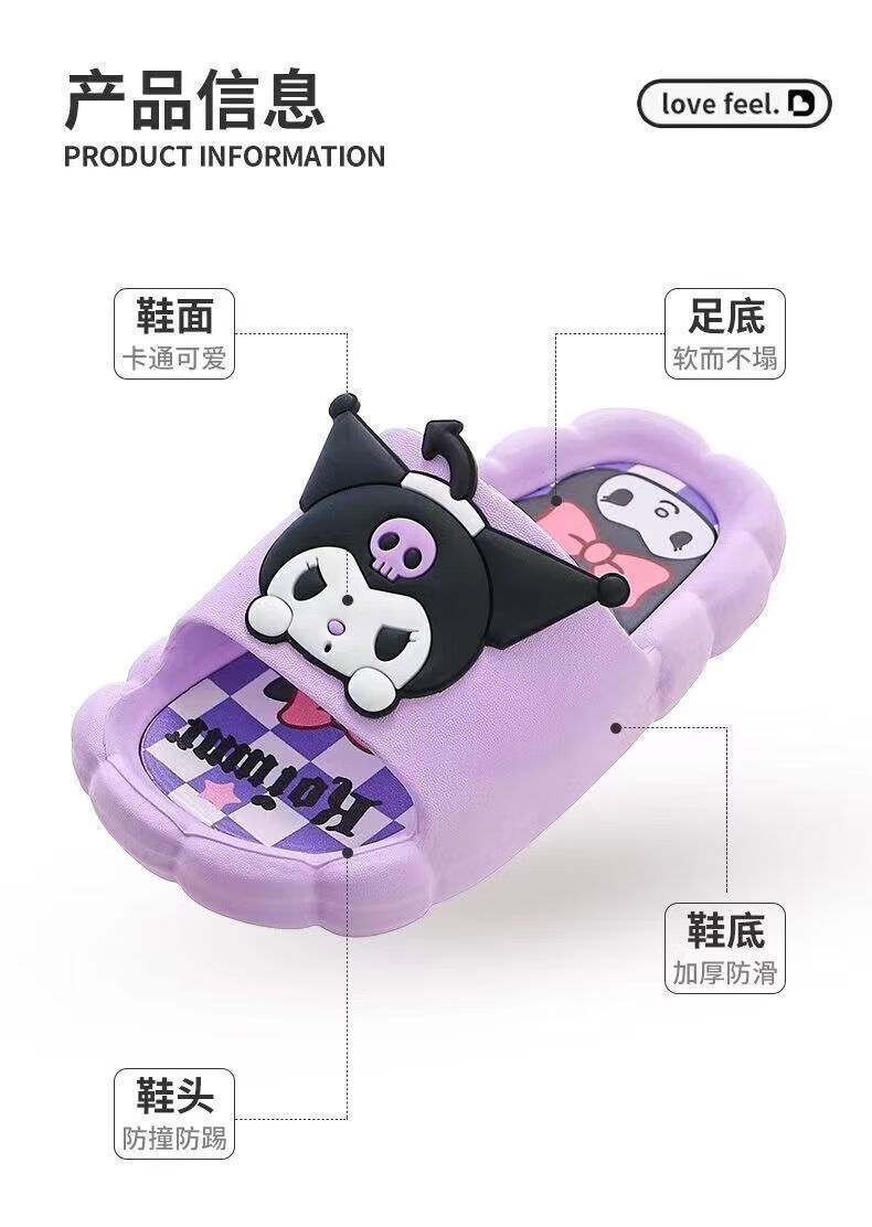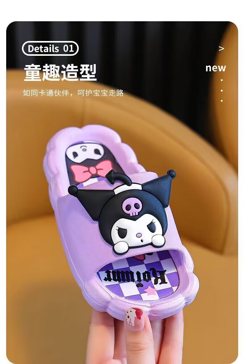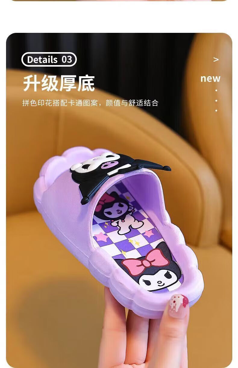 Yihaofeng children's slippers girls summer cartoon non-slip indoor bathing Kuromi Lord baby deodorant household slippers purple Kuromi upgraded version 28-29 size inner length 16.5cm 4-5 years old