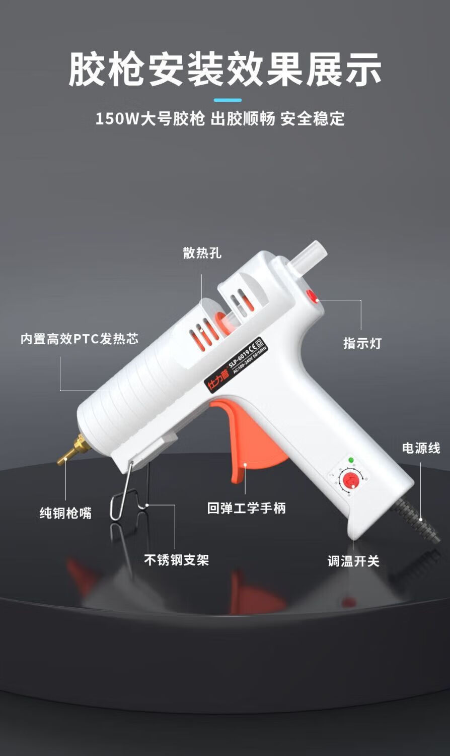 Meikejie temperature-adjustable large high-power hot melt glue gun industrial-grade fine mouth extended mouth gun head hot melt glue stick 11mm switch model 150W high power comes with 2.0*70mm extended copper head gun mouth + 30 glue sticks