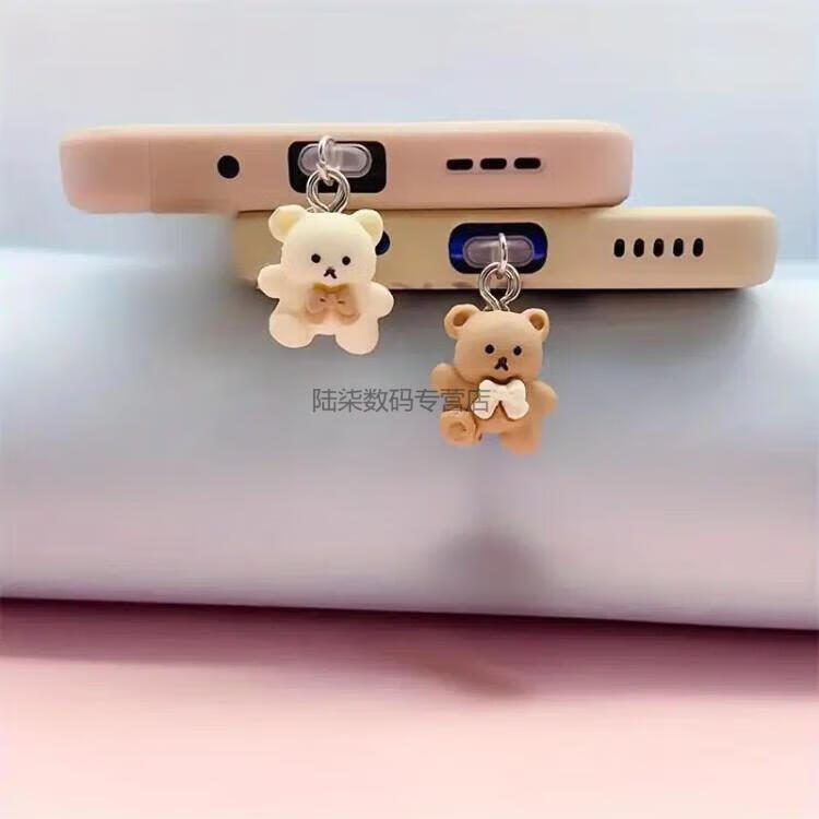 Wenzhi New Bear Phone Dust-proof Plug Resin Tie Off-White Coffee Color Charging Plug Headphone Hole Pendant Type-c Coffee Color Bear (Charging Plug) Android Type-C Elliptical Interface Dustproof