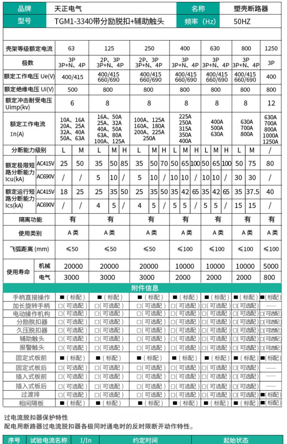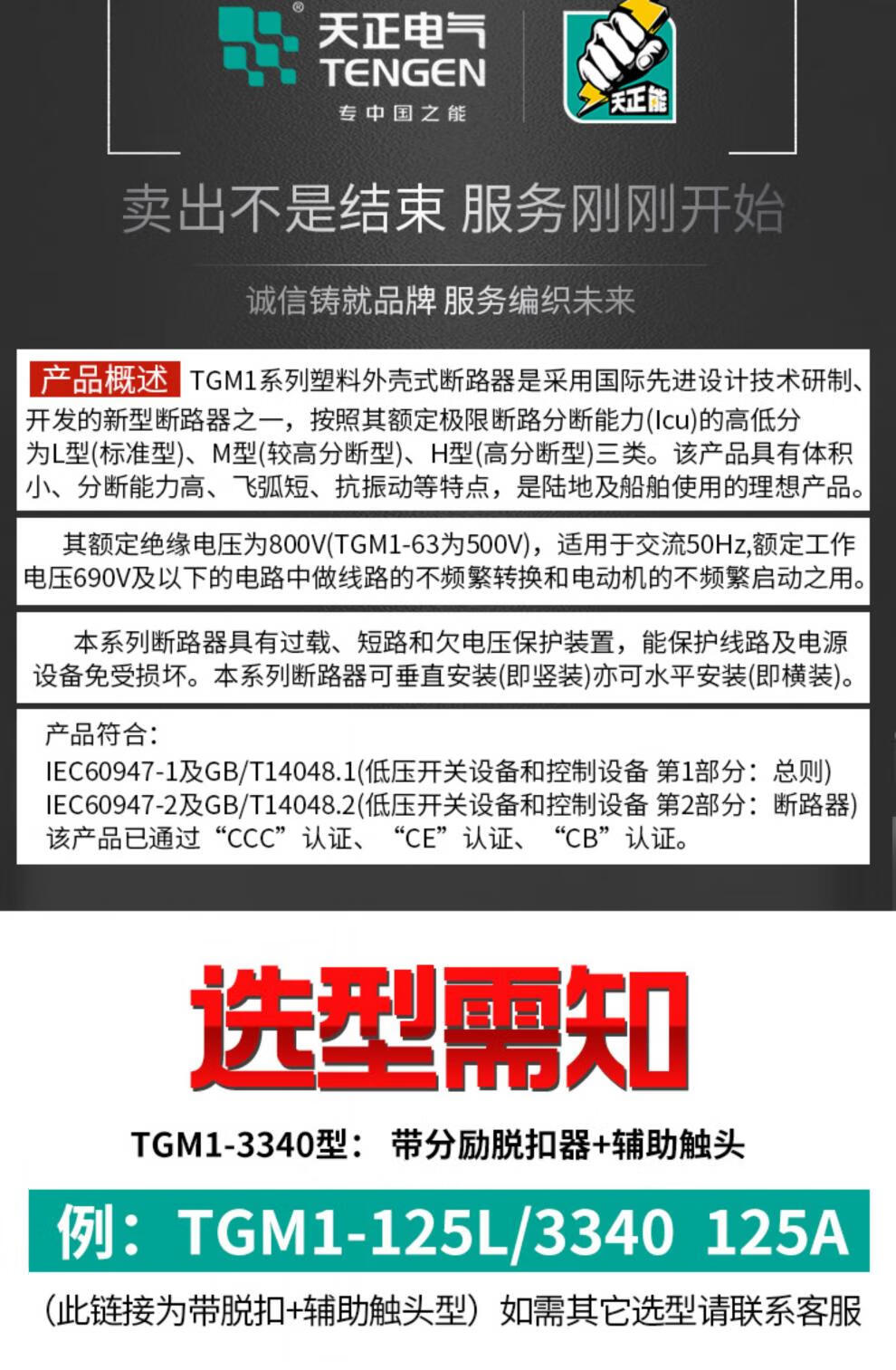 BAI MU GE TENGEN Tianzheng TGM1 switch circuit breaker 3340 with fire shunt release auxiliary contact signal 315A AC220VTGM1-400L/3340