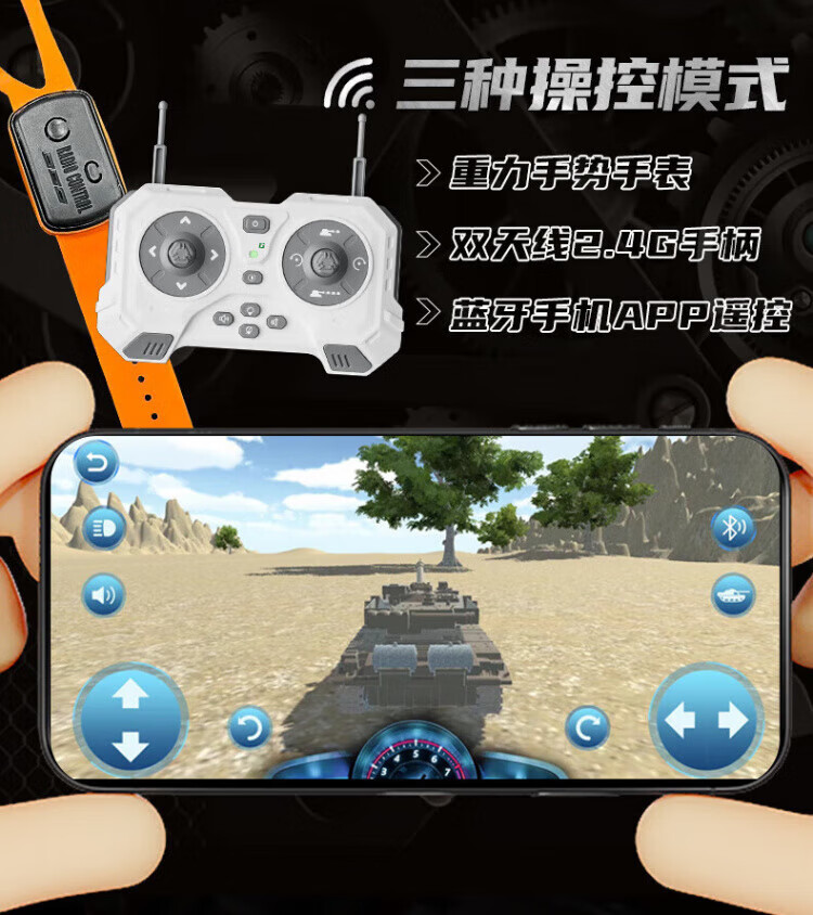 Remote control military tank children's large toy car can launch gesture sensor car model boy's birthday simulated launch 7-channel camouflage green APP remote control