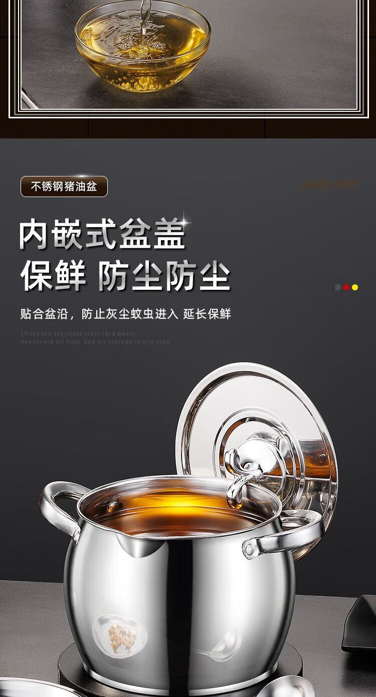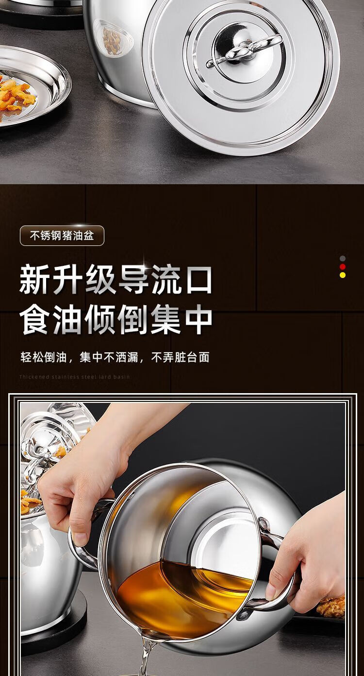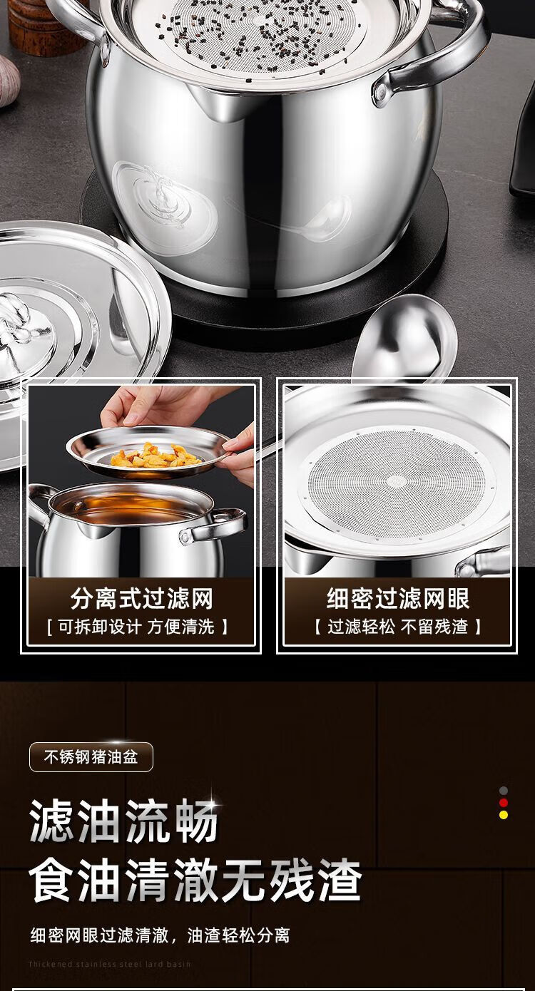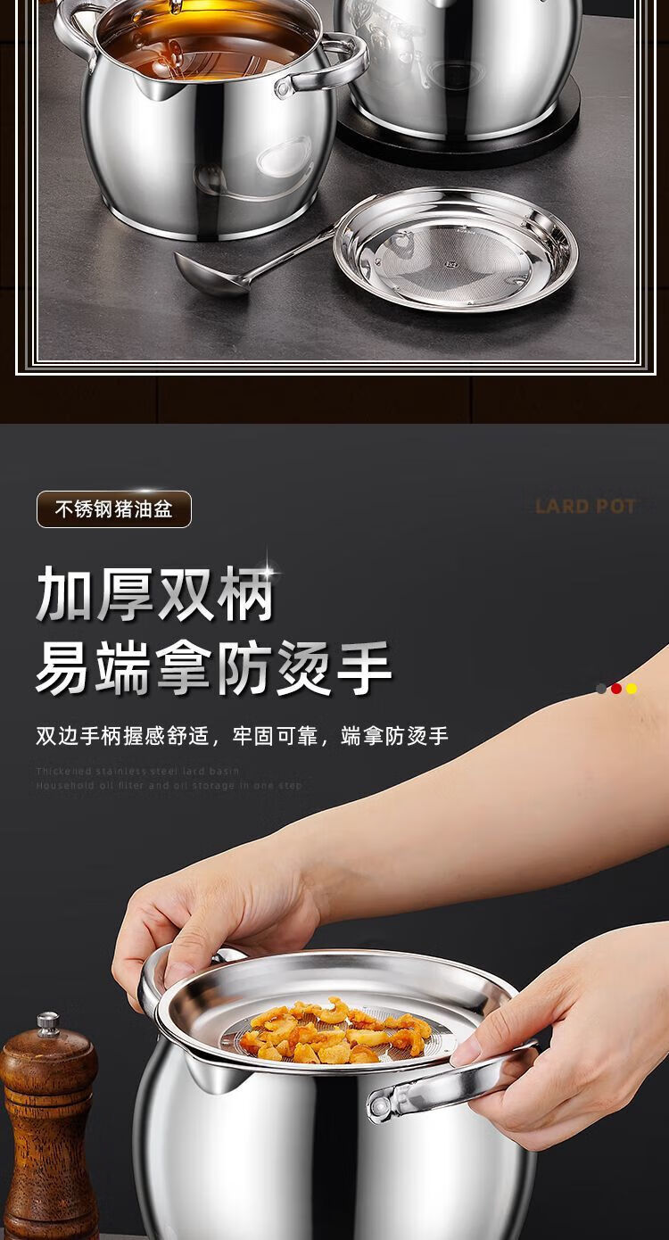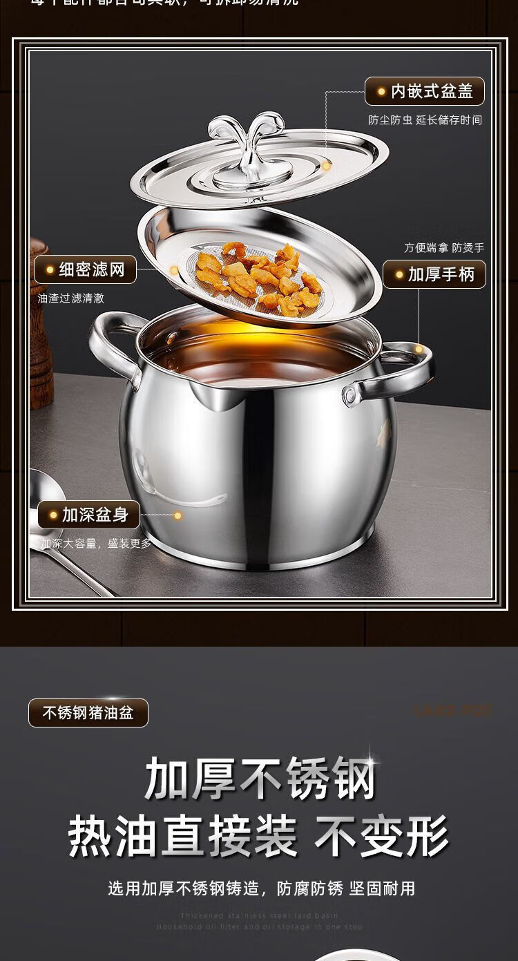 Zishi lard barrel stainless steel lard tank with filter double-ear lard pot with lid household high temperature resistant large capacity upgraded model large capacity holds about 5Jin Jin is equal to 0.5kg oil resistant