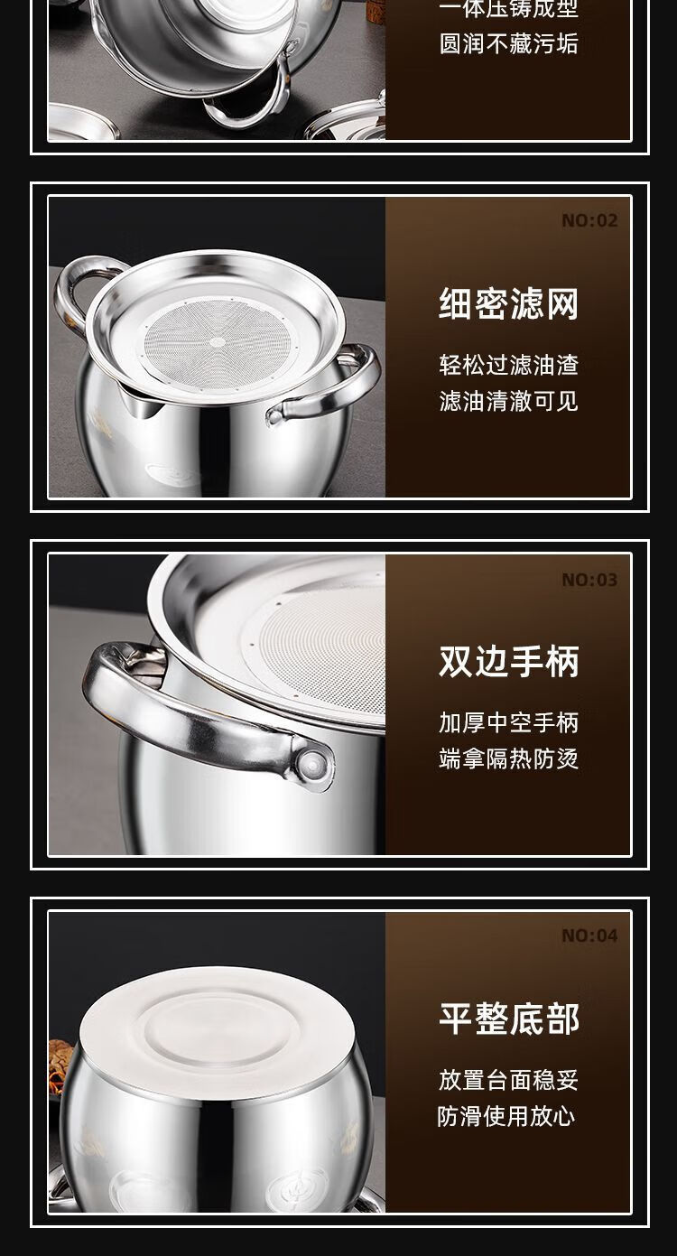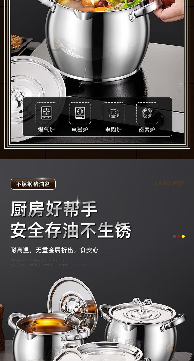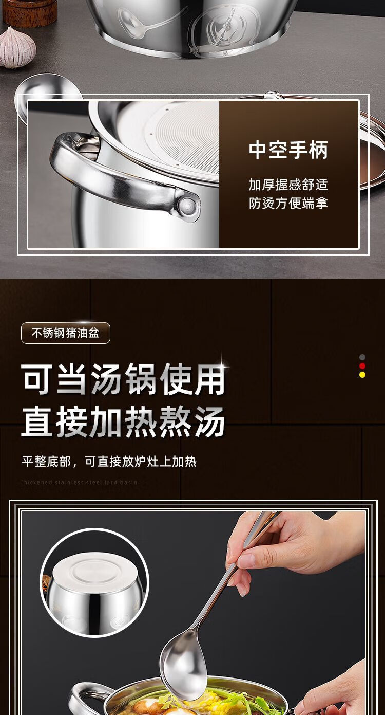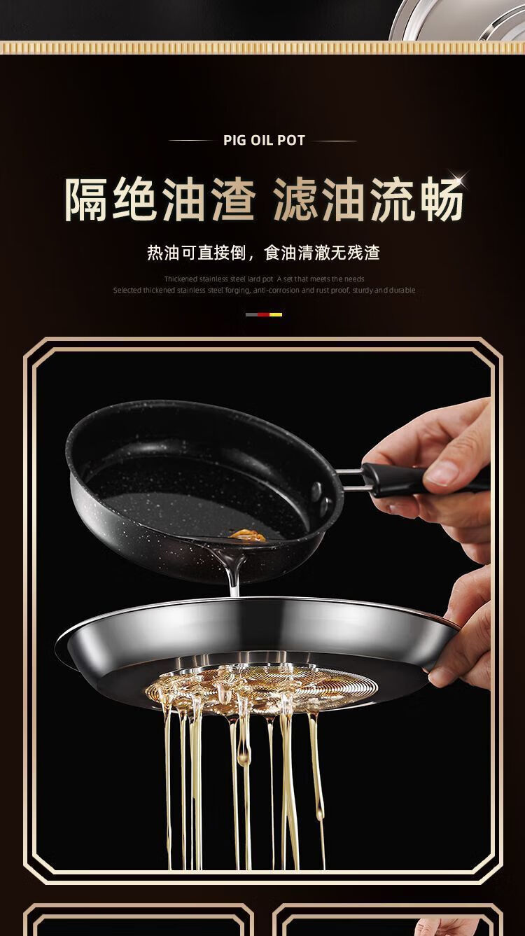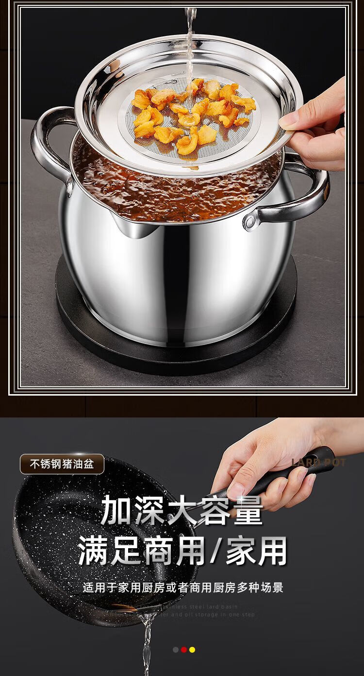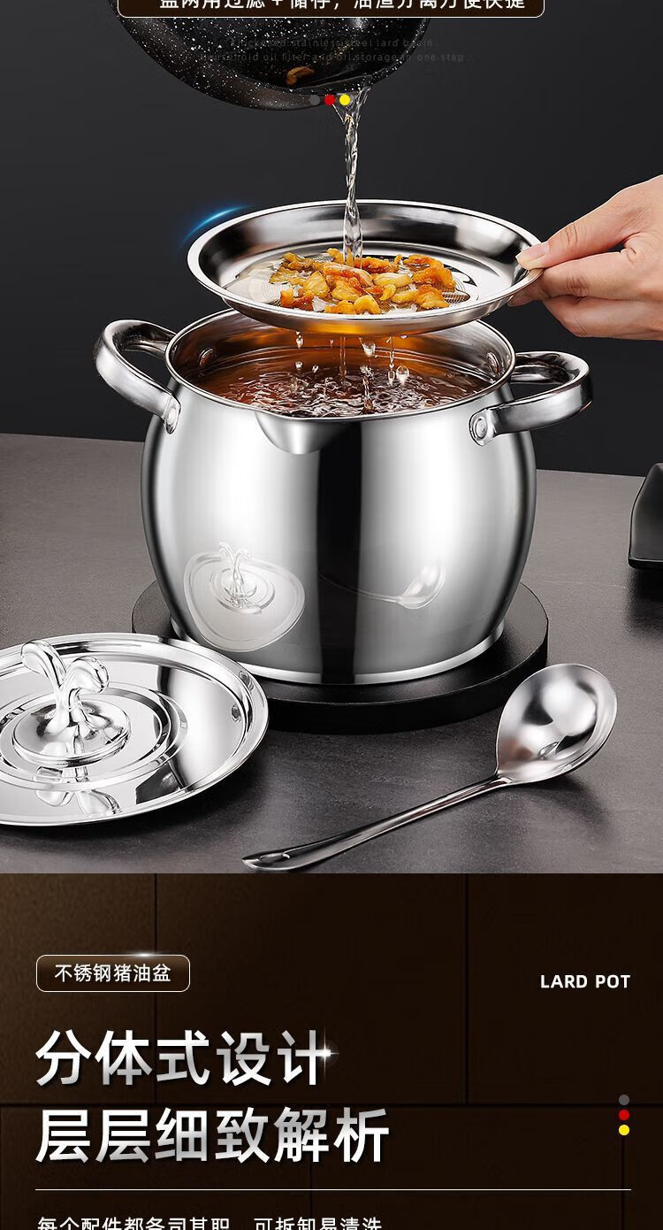 Zishi lard barrel stainless steel lard tank with filter double-ear lard pot with lid household high temperature resistant large capacity upgraded model large capacity holds about 5Jin Jin is equal to 0.5kg oil resistant