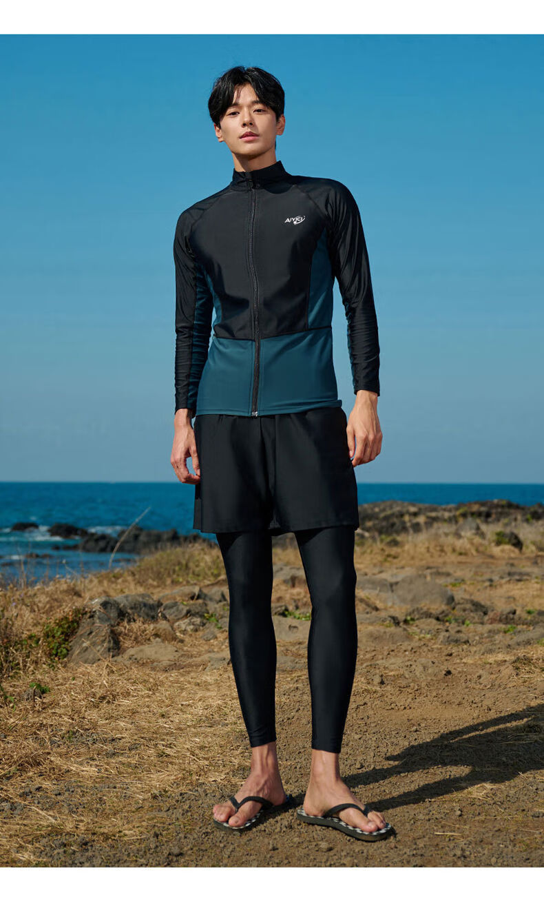 Wetsuit men's split long-sleeved trousers large size zipper quick-drying sun protection snorkeling surfing winter warm swimsuit suit black and green couple contact customer service L