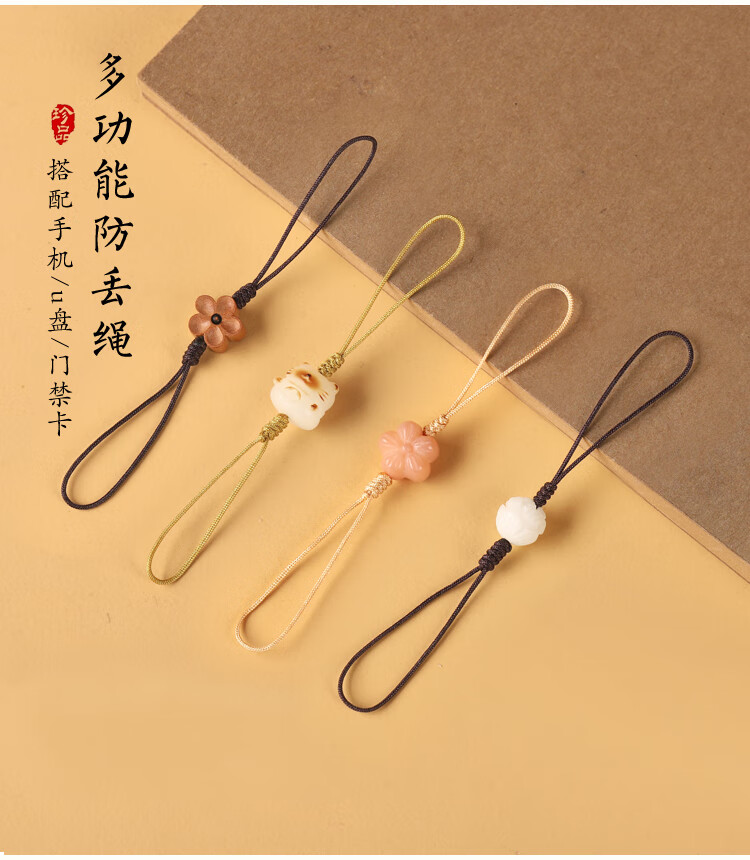 Mobile phone lanyard double-ended anti-lost bus card access control card USB flash drive mobile phone case pendant pendant cat mobile phone chain pendant Peach wood plum blossom No Specifications