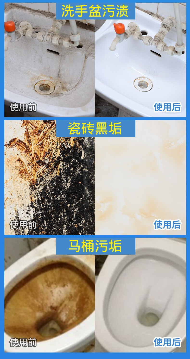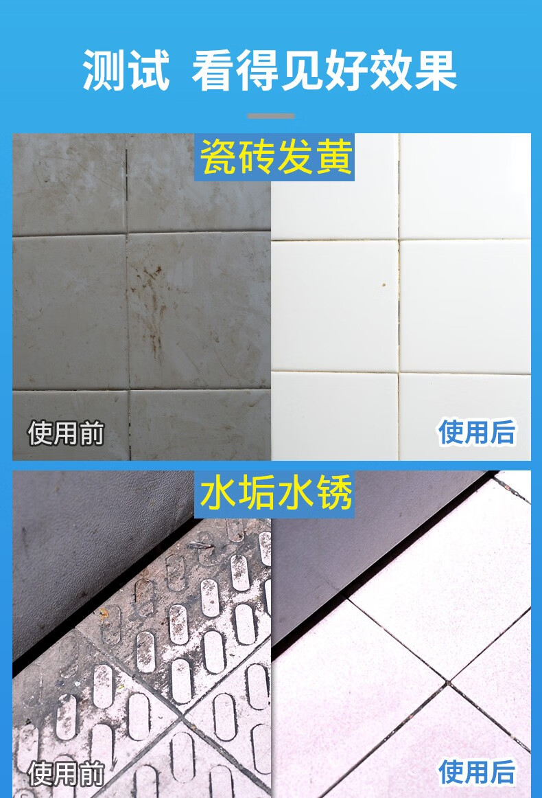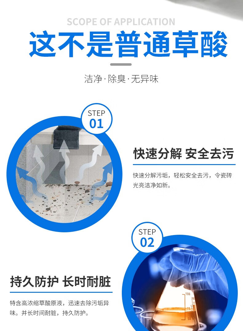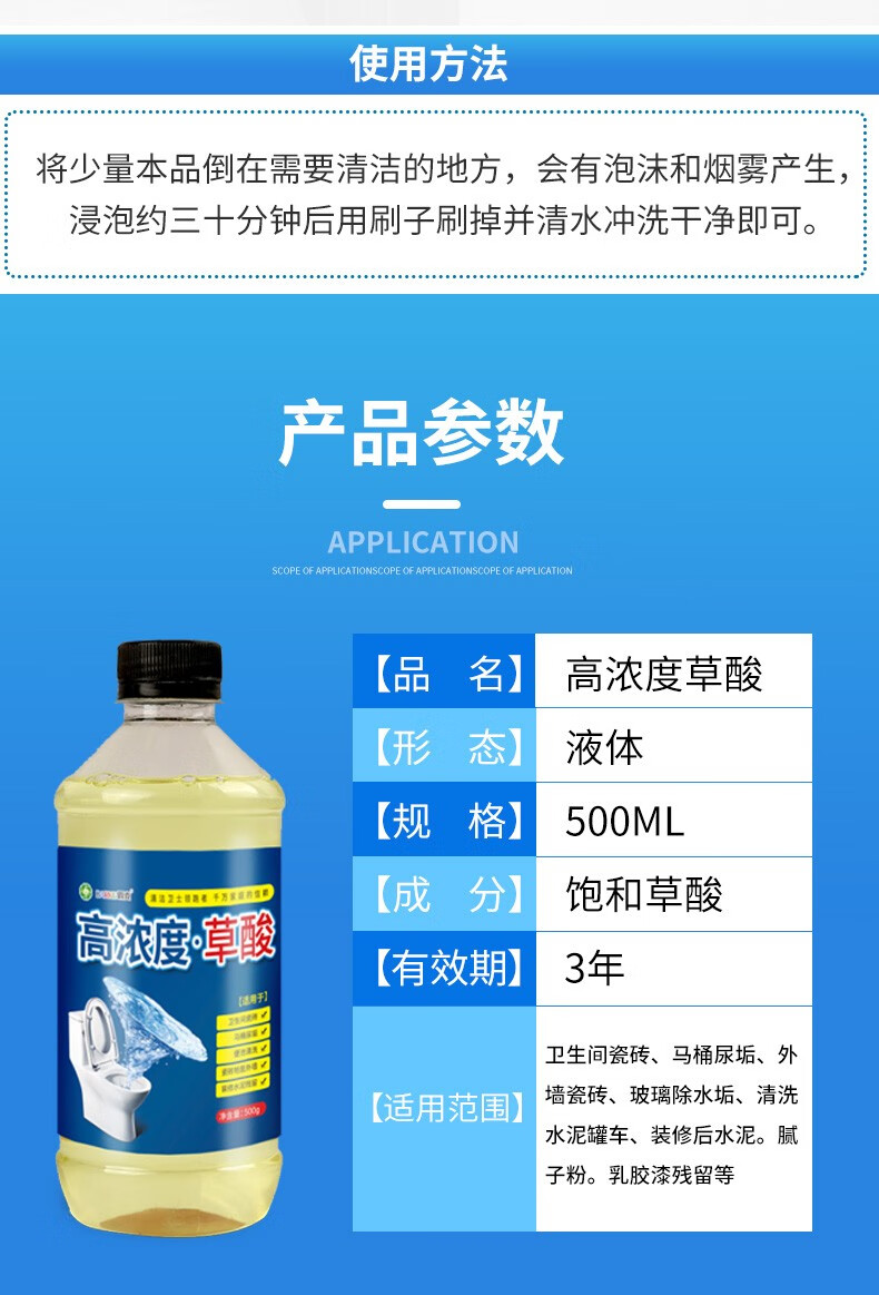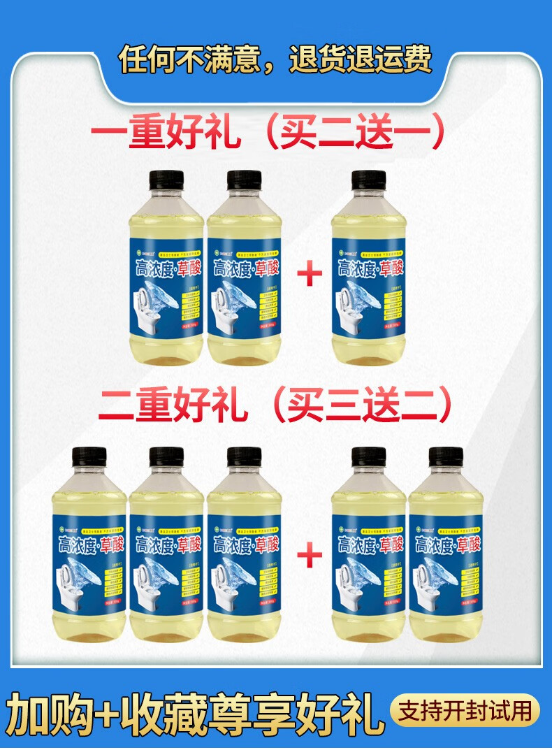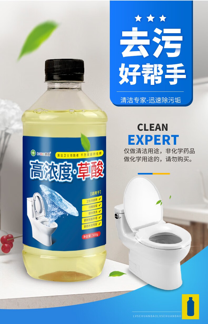 High-concentration oxalic acid cleaner, powerful decontamination and descaling to remove yellow tiles, toilet and bathroom floor tile cleaning fluid 500ml oxalic acid 2 bottles plus 1 nozzle 1 pair of gloves