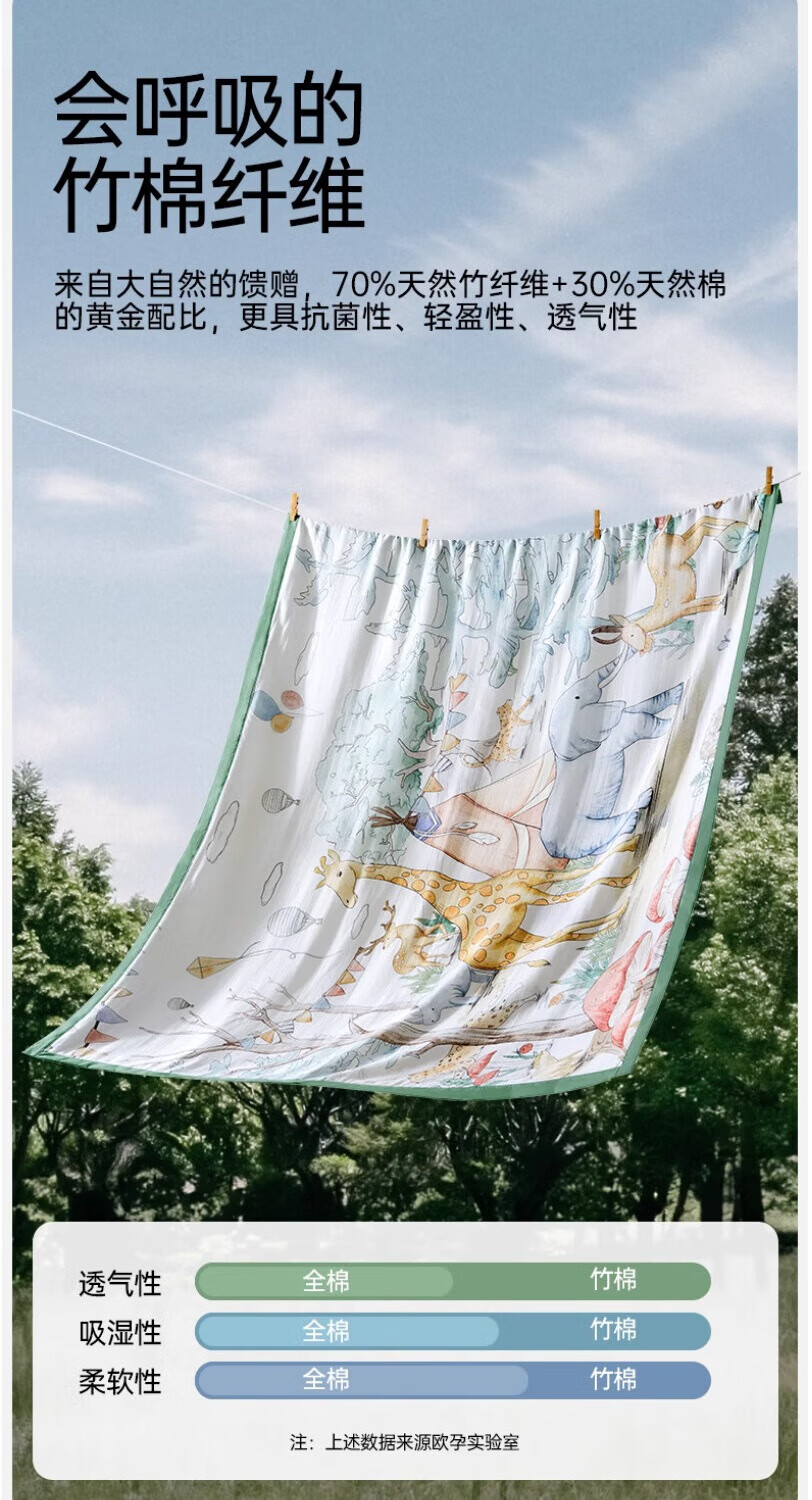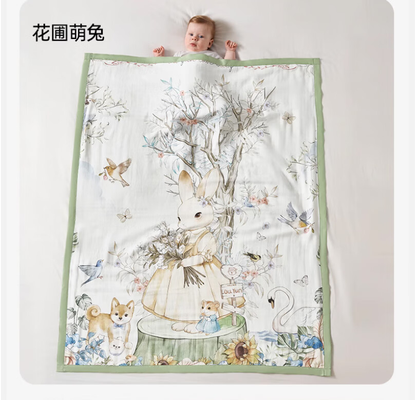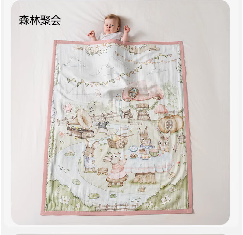 European pregnancy baby blanket baby bamboo cotton gauze summer cool quilt newborn quilt kindergarten all-season air-conditioned quilt forest party four layers of bamboo cotton suitable for 20-28