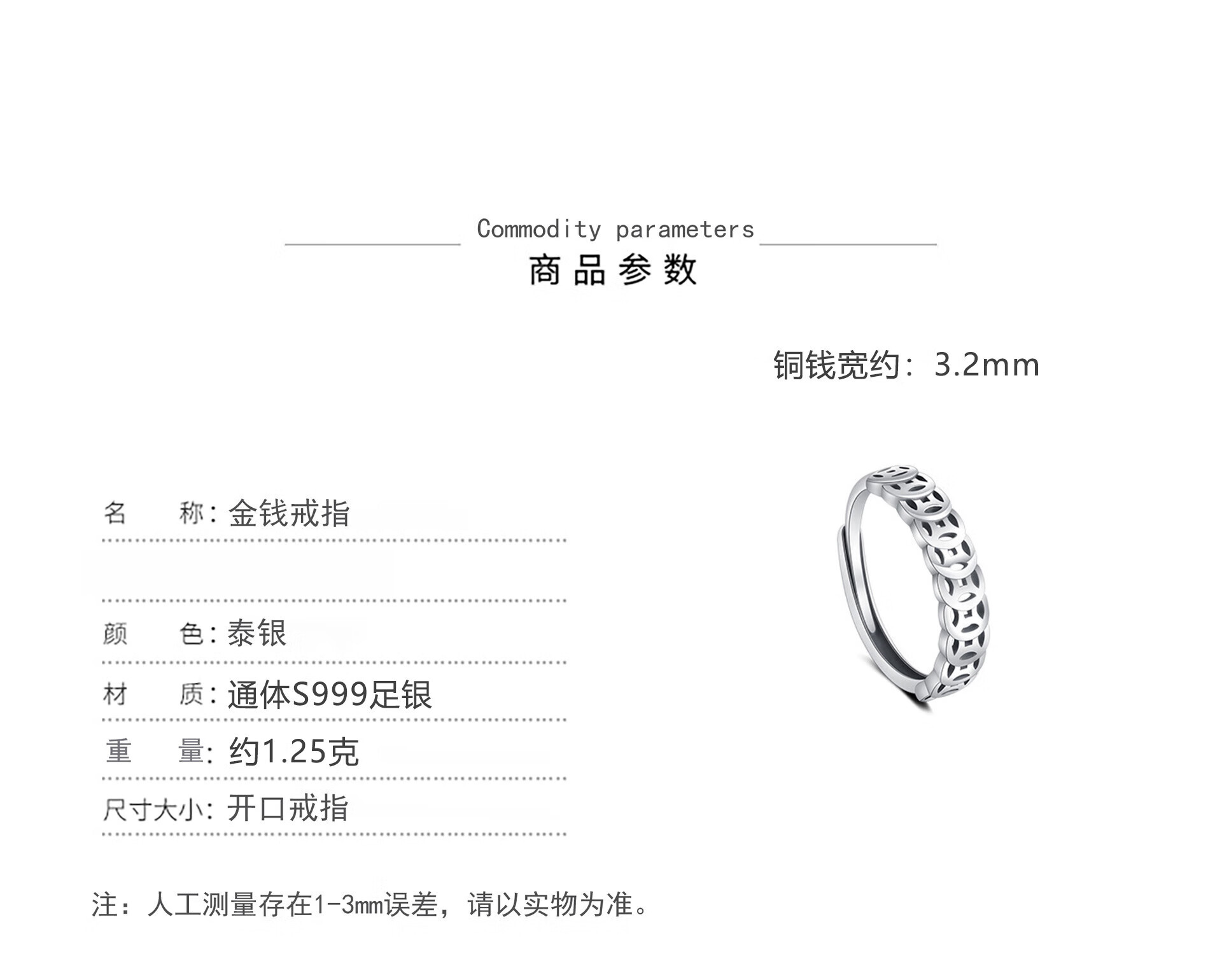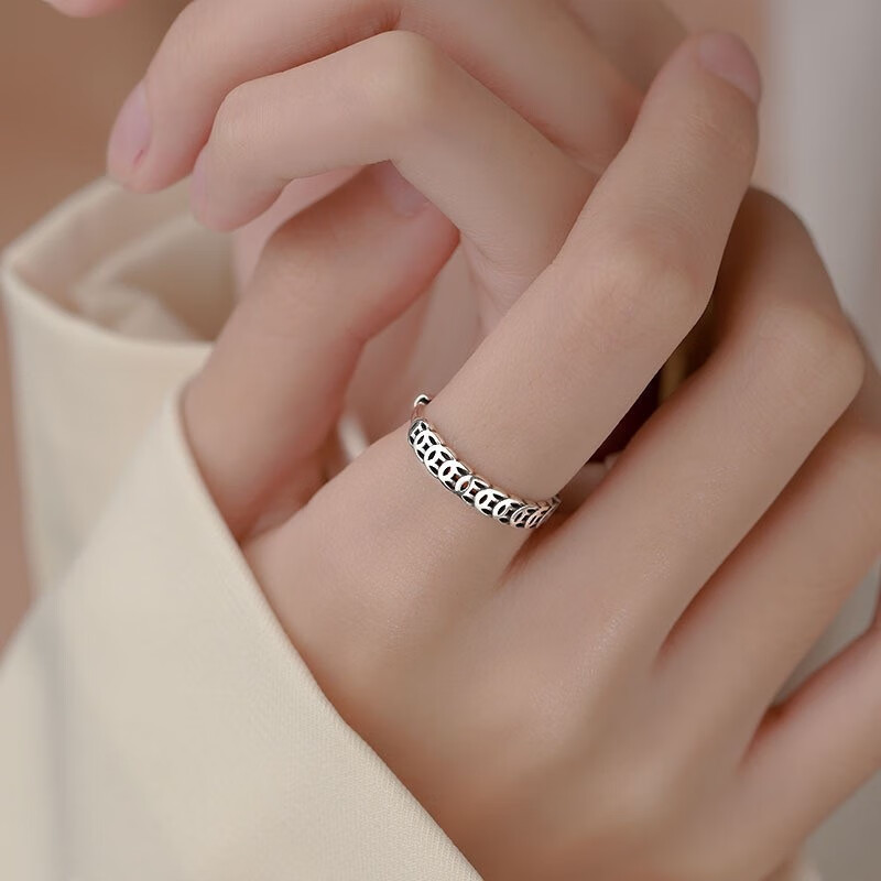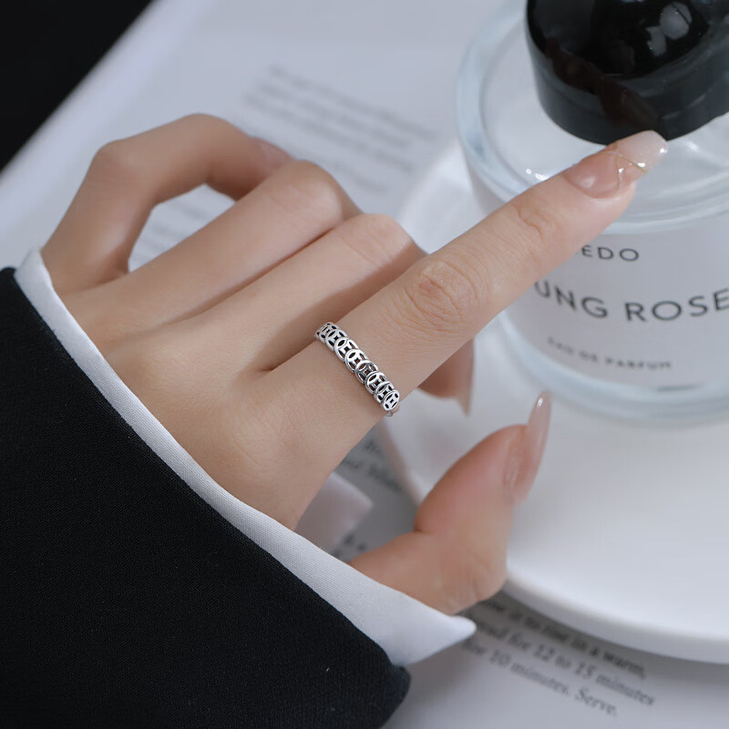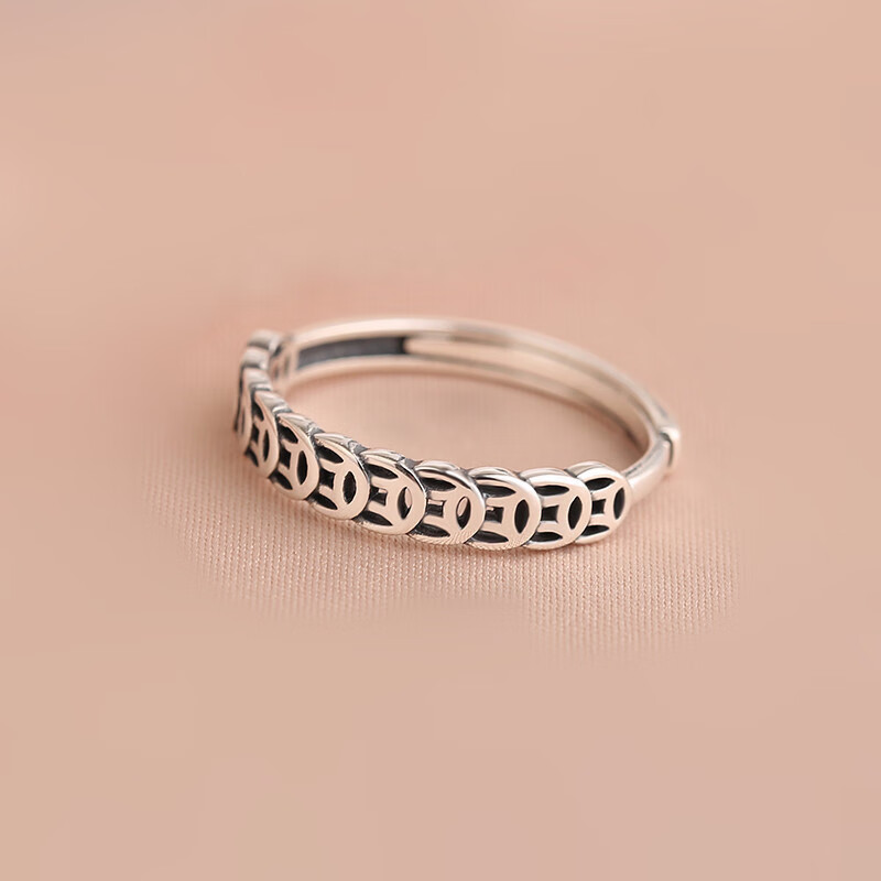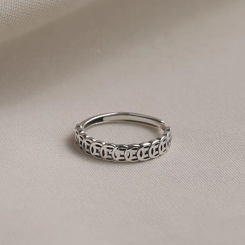 S999 Pure Silver Money Duoduo Retro Copper Coin Ring Women's Coin Simple Niche Open Ring Chinese Valentine's Day Gift Pure Silver Qian Duoduo Ring Original Exquisite Gift Box