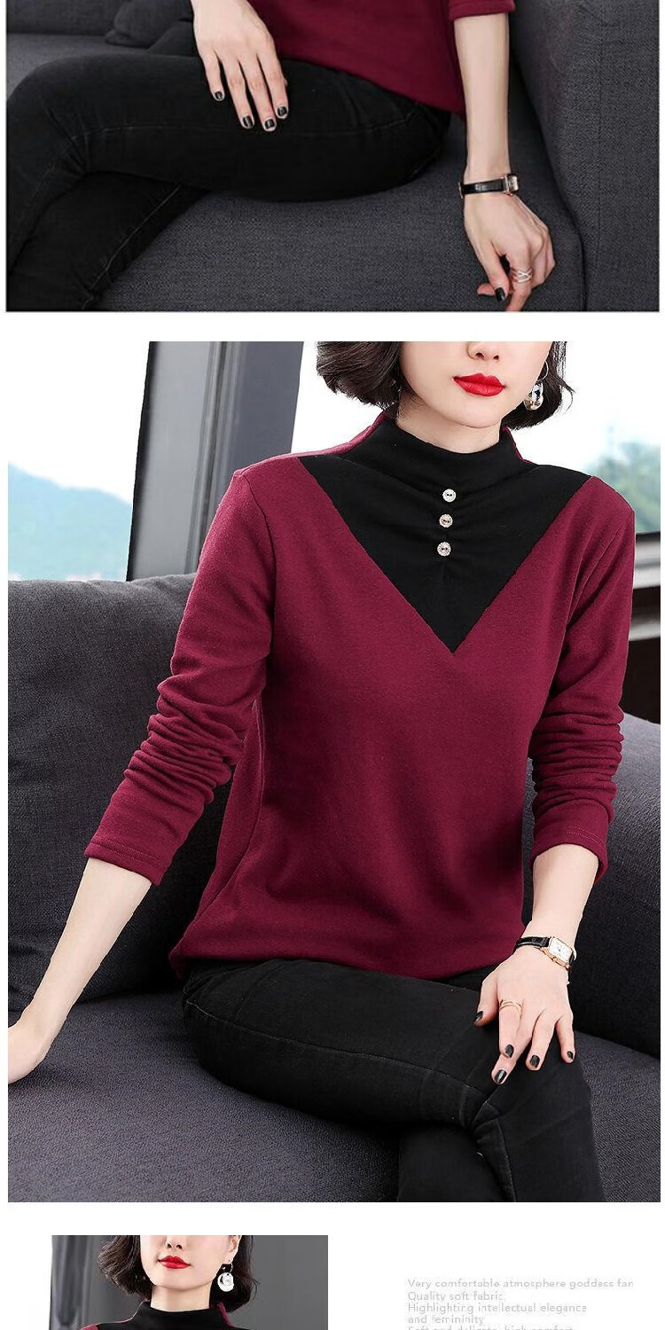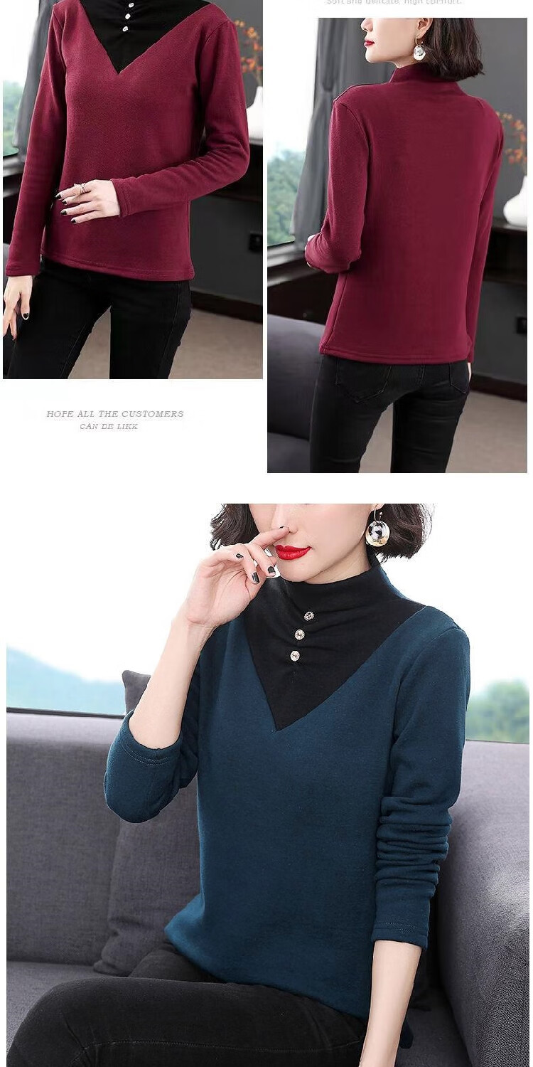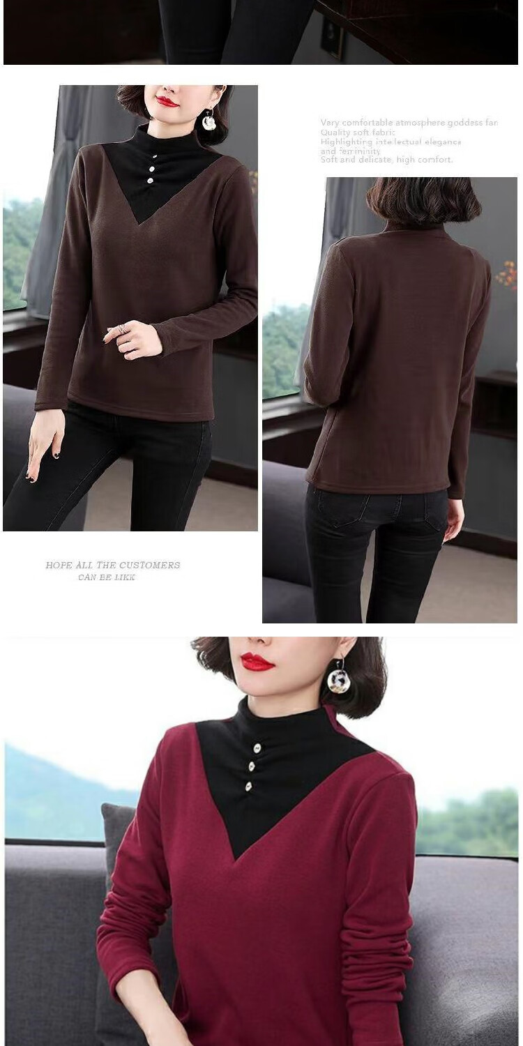 2026 new autumn and winter half turtleneck German velvet thermal clothing for women plus velvet thickened long-sleeved T-shirt can be worn outside, burgundy 3XL recommended 135-150Jin Jin equals 0.5 kg