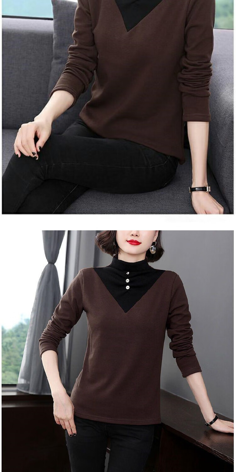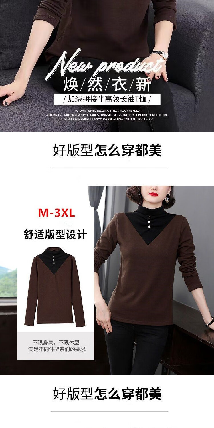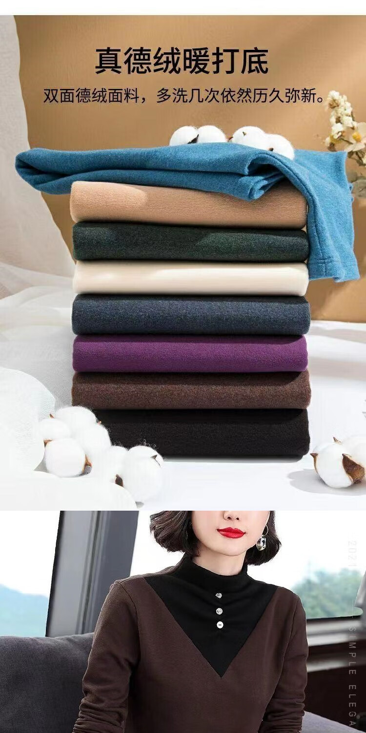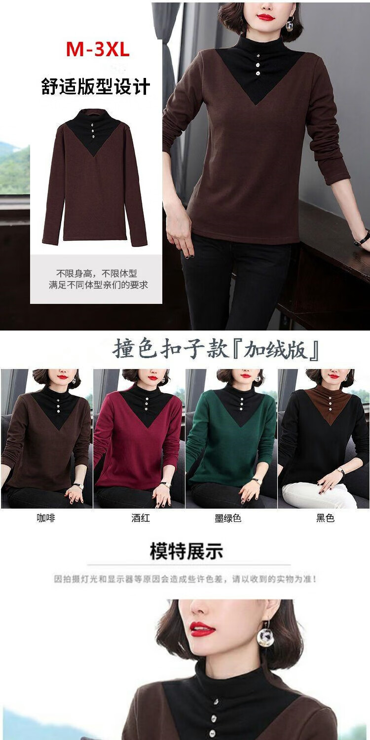 2026 new autumn and winter half turtleneck German velvet thermal clothing for women plus velvet thickened long-sleeved T-shirt can be worn outside, burgundy 3XL recommended 135-150Jin Jin equals 0.5 kg