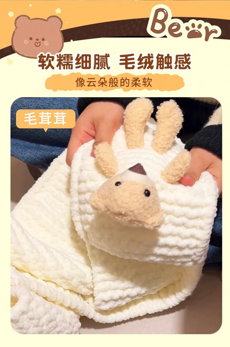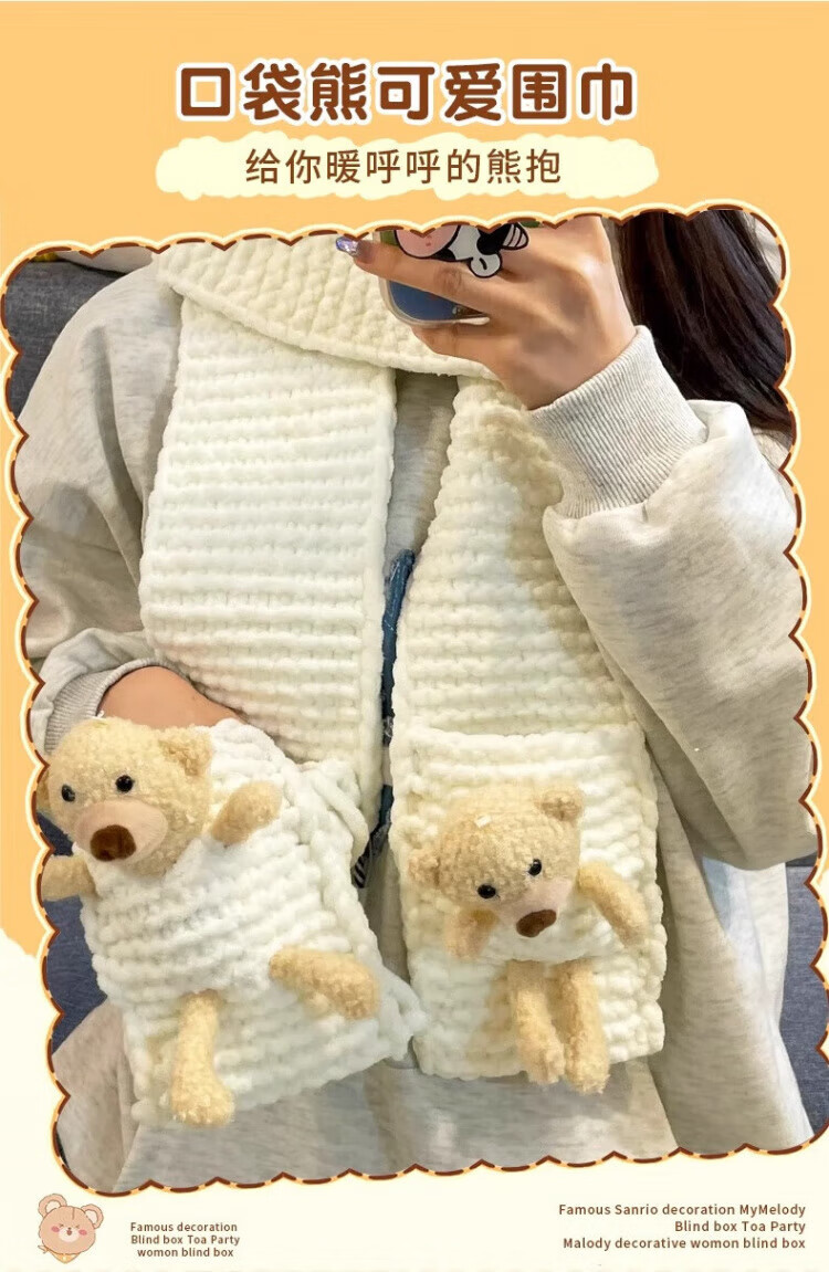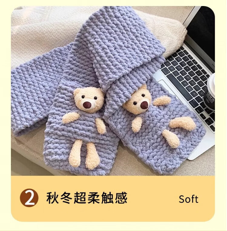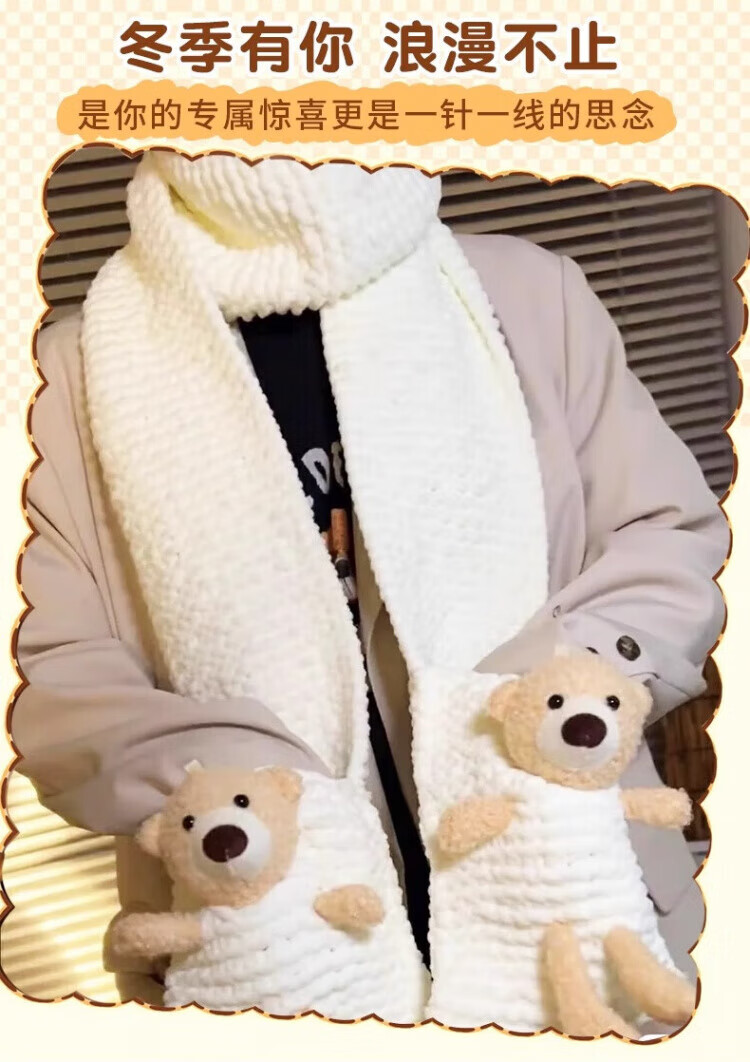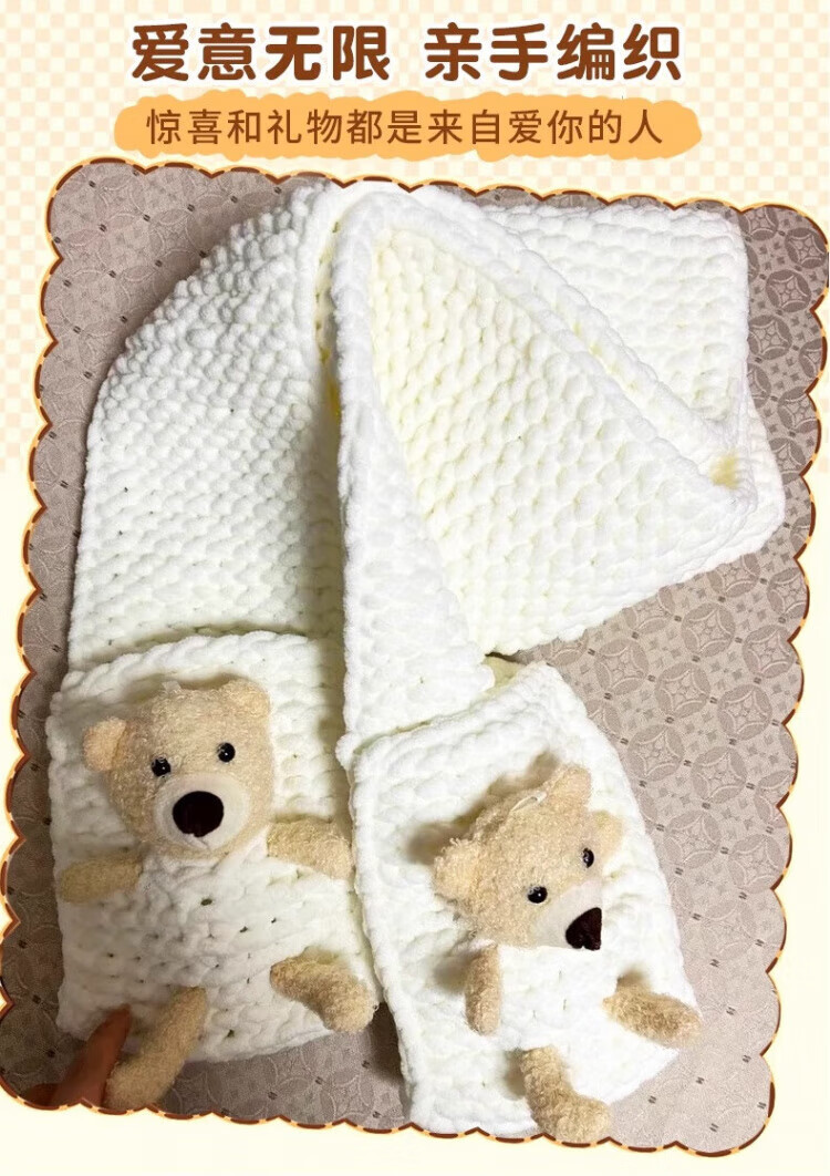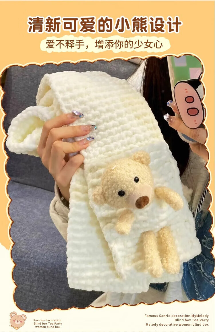 Bei Chuzhong bear scarf birthday gift female handmade woolen yarn for girlfriend knitting diy ice strip knitting scarf artifact neck scarf milky white 4 balls of thread + artifact + cartoon gift bag