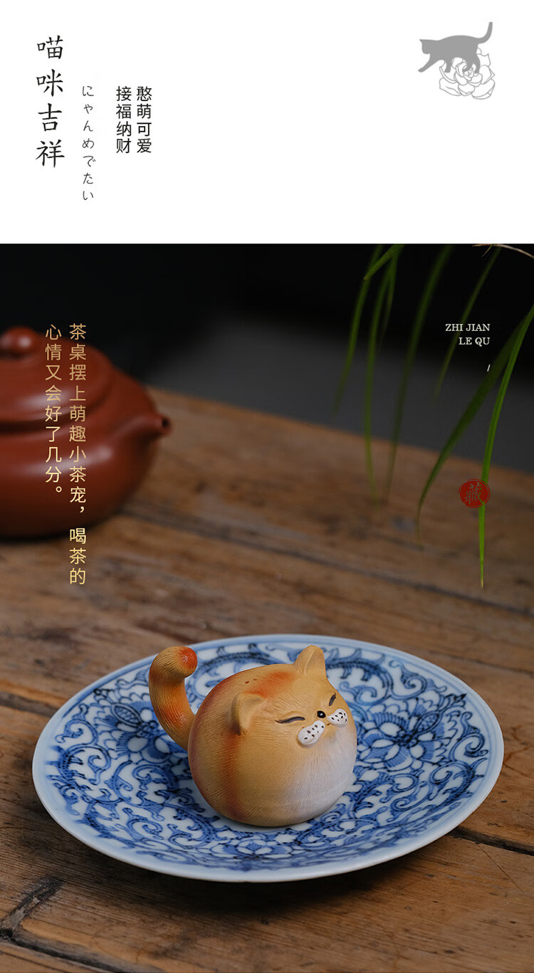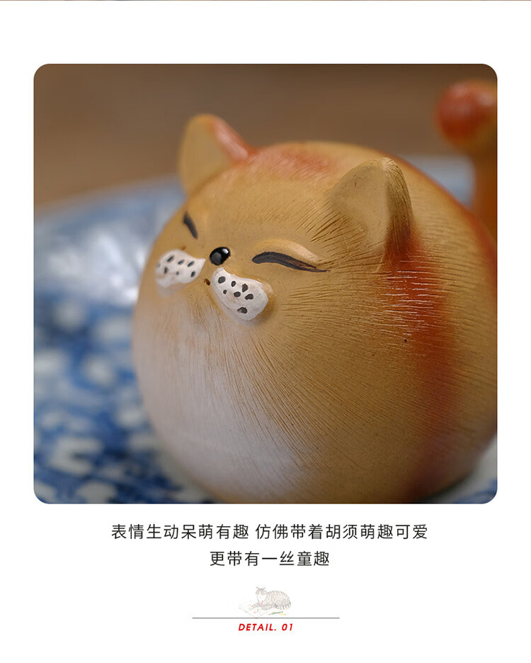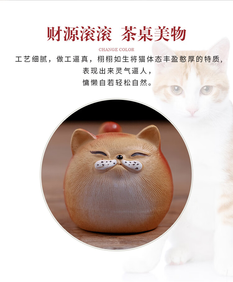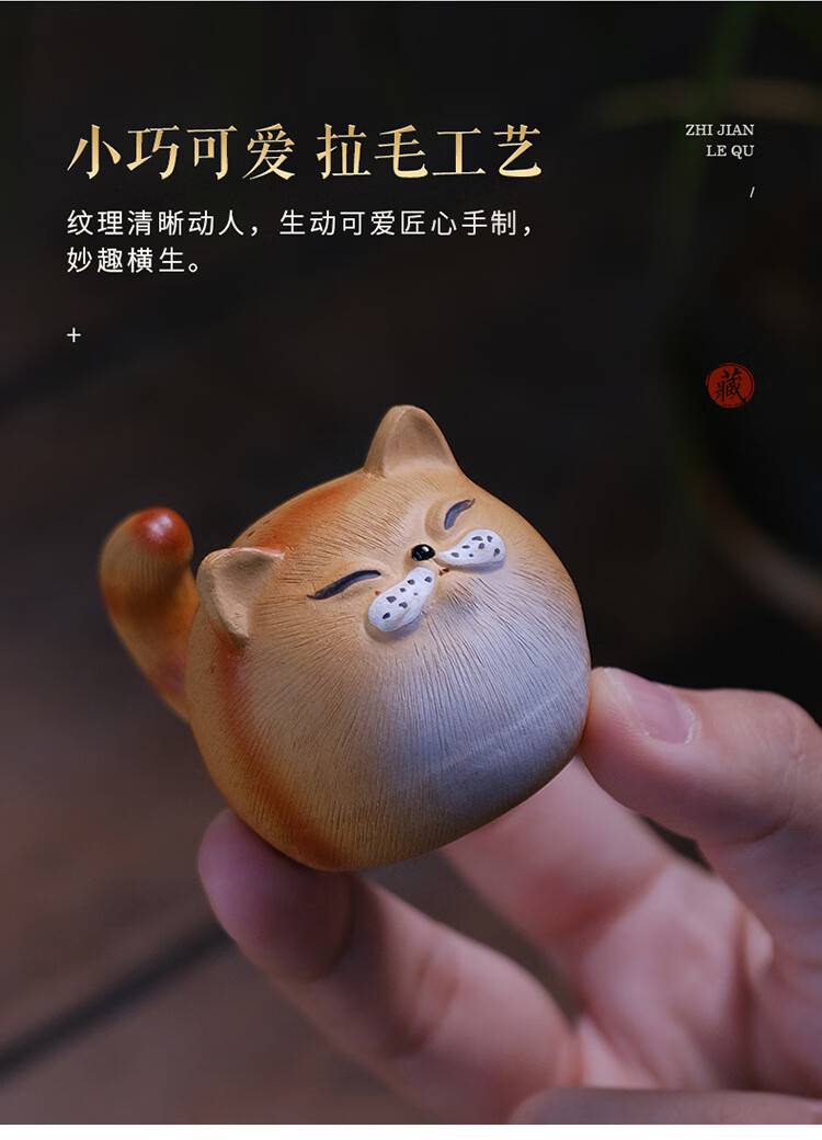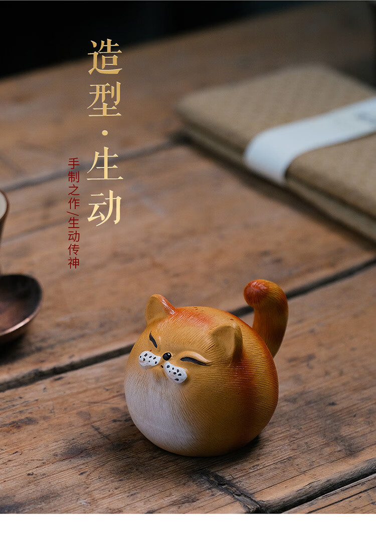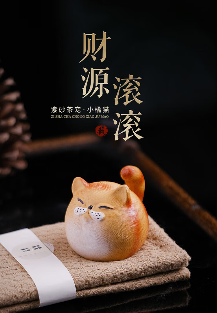 Jiangmingtang Yixing original mineral purple sand tea pet cute cute cat little yellow chicken sculpture creative clay painting ornaments tea play little cute cat little orange cat