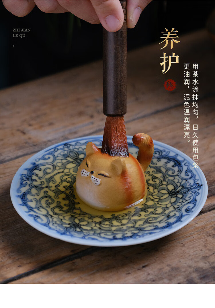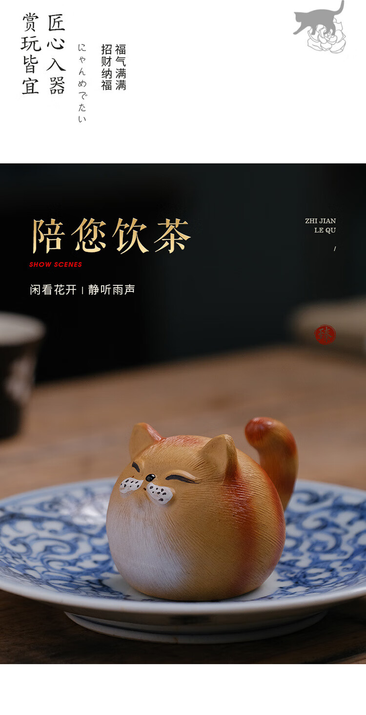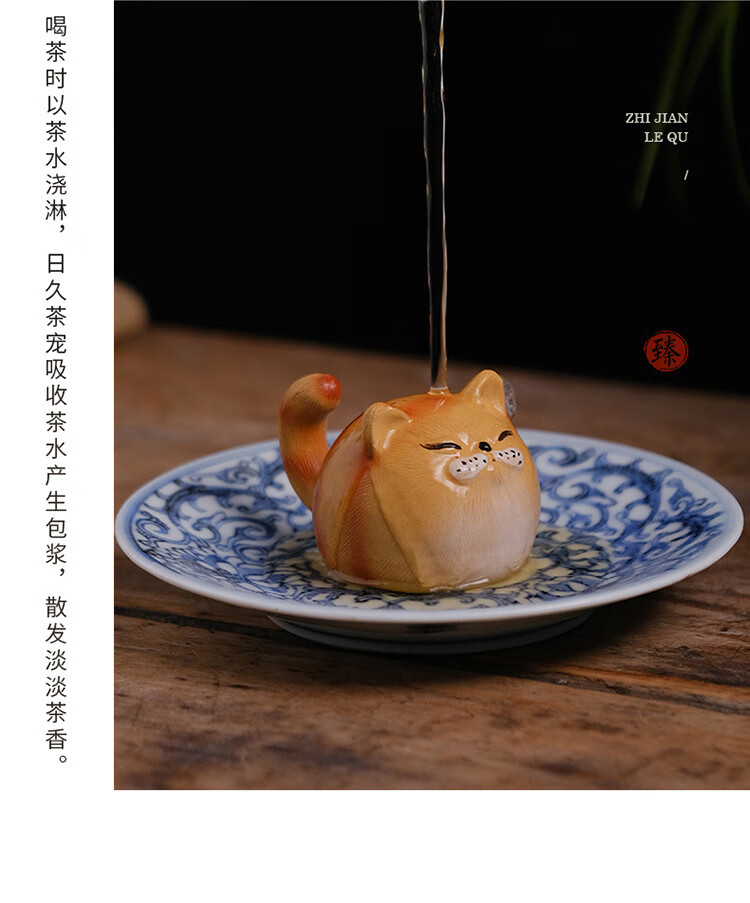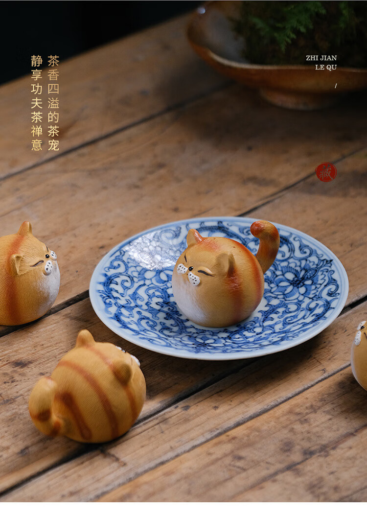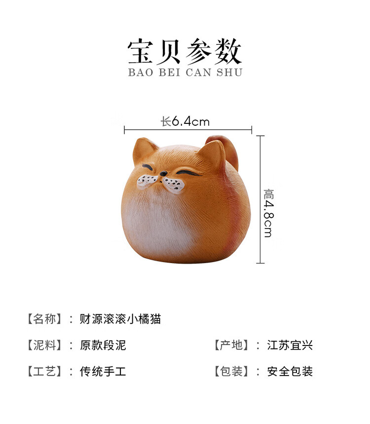 Jiangmingtang Yixing original mineral purple sand tea pet cute cute cat little yellow chicken sculpture creative clay painting ornaments tea play little cute cat little orange cat