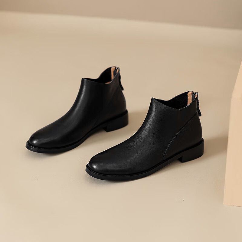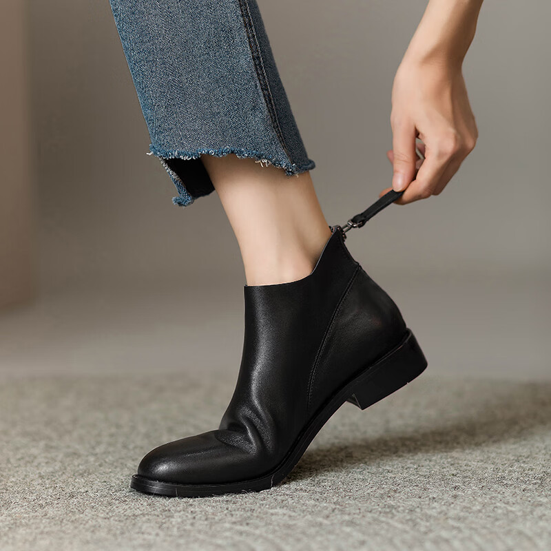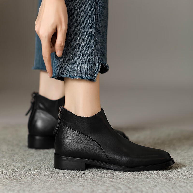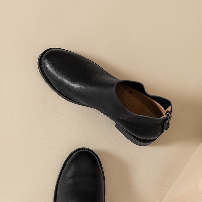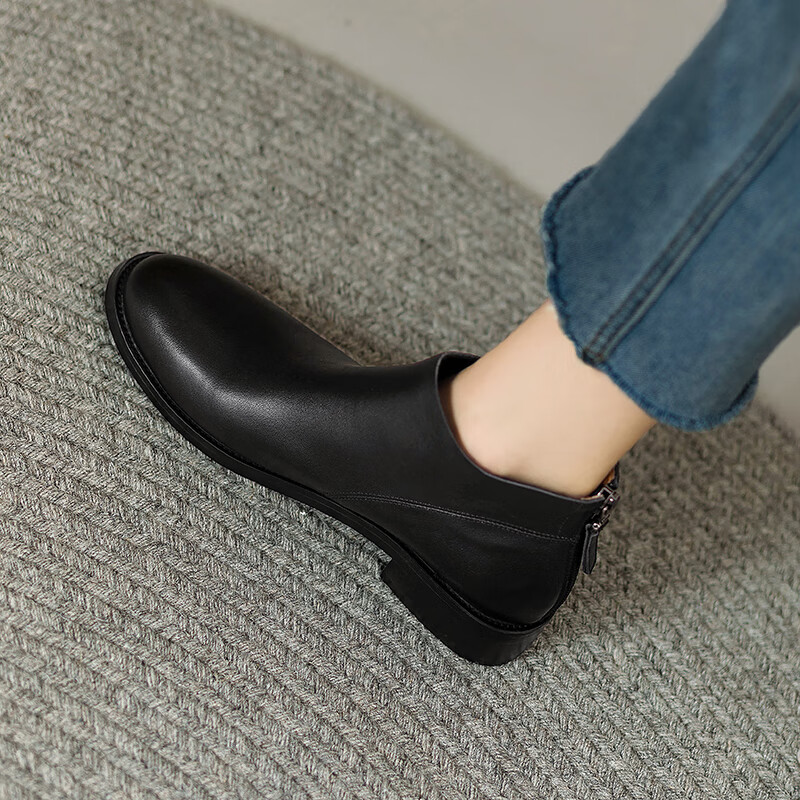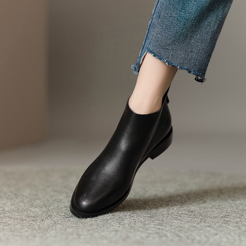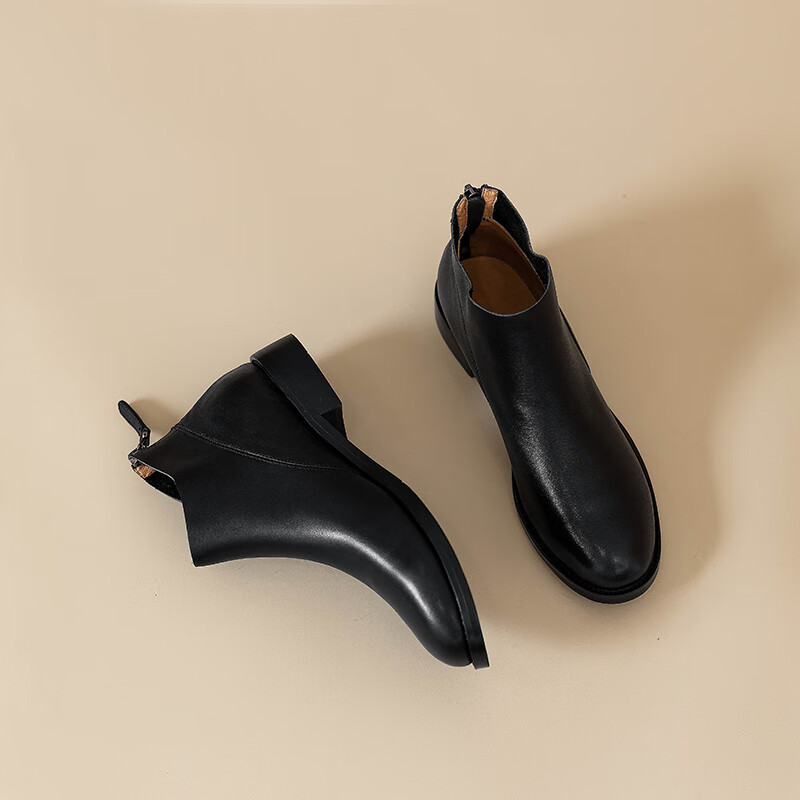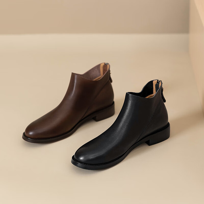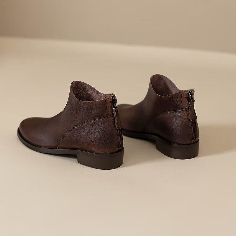 Belle's high-end super soft genuine leather flat-soled French style ankle boots for women 2024 spring and autumn retro brown (single lining) 38