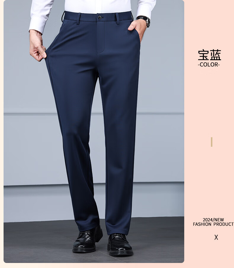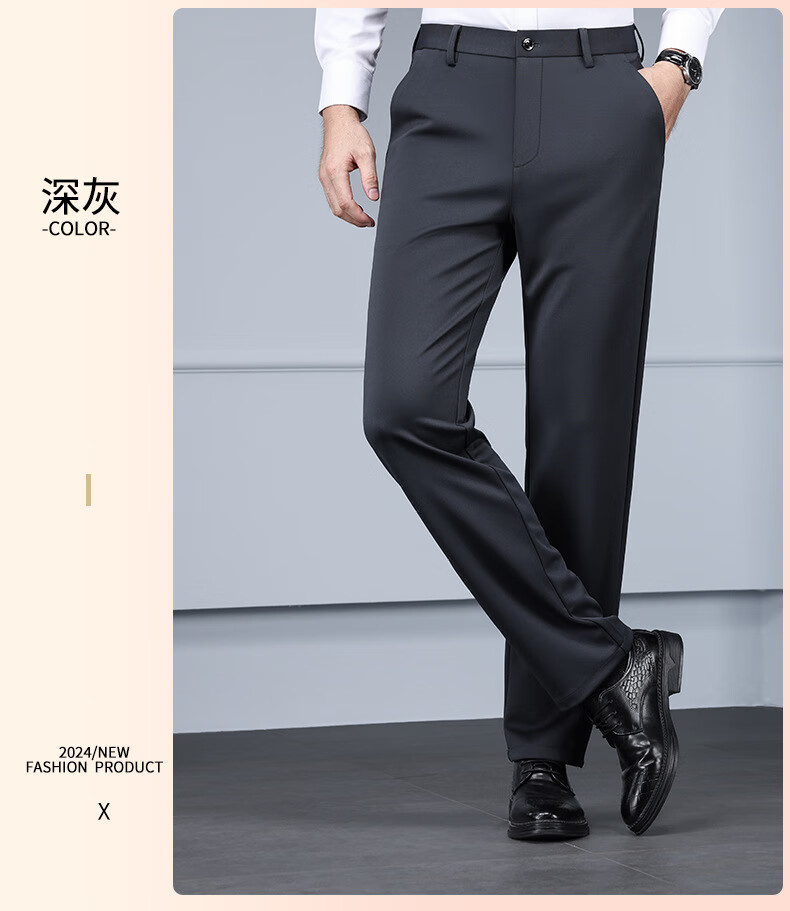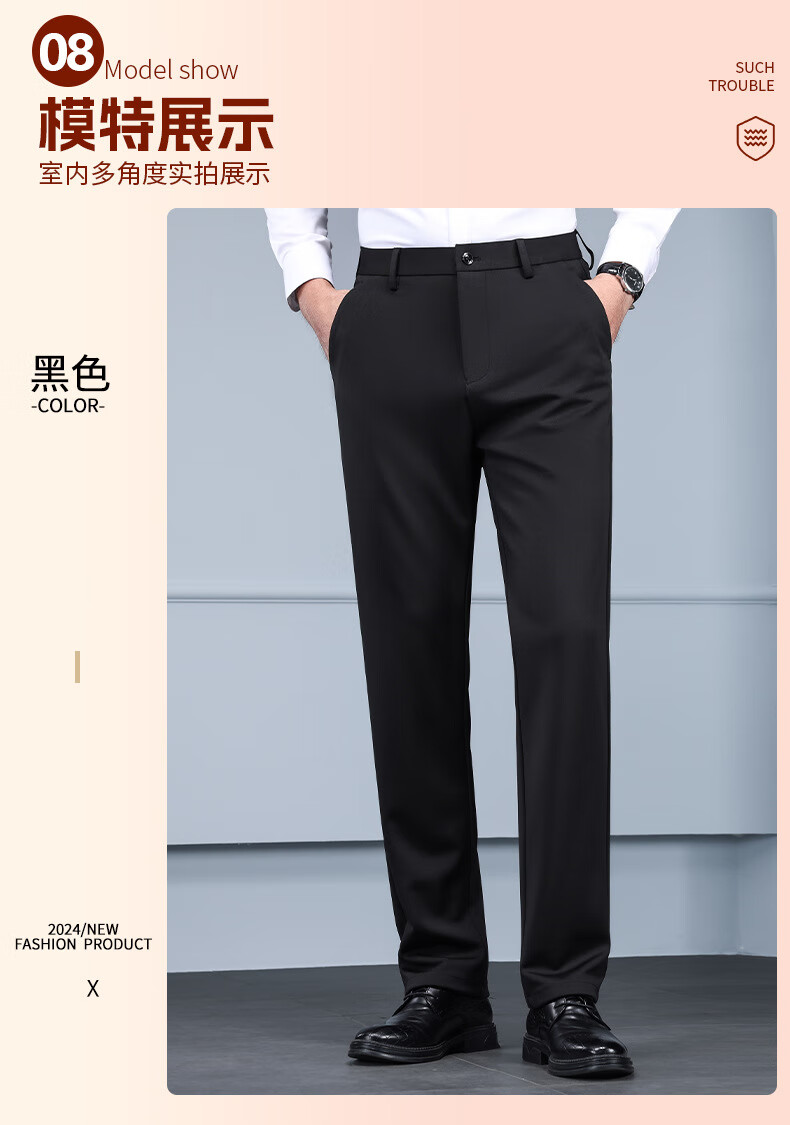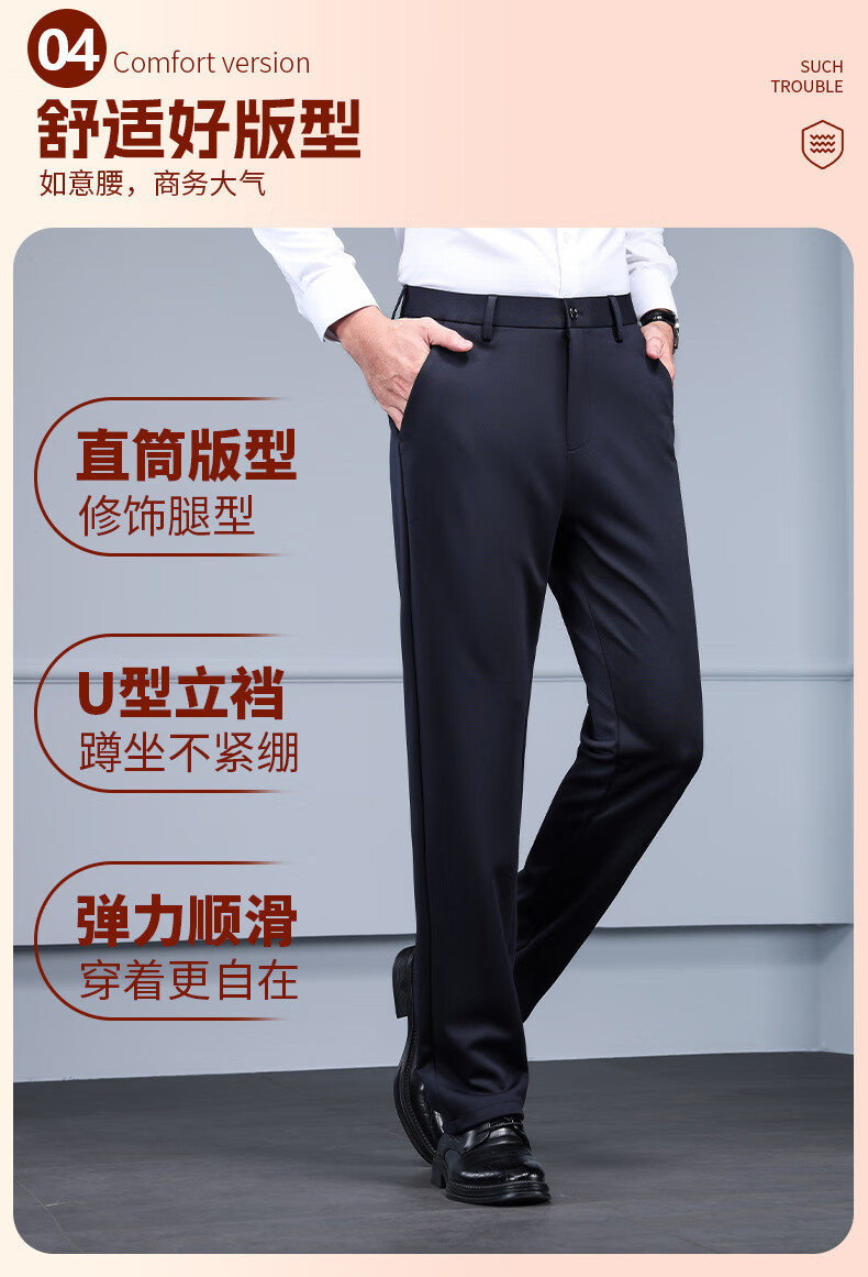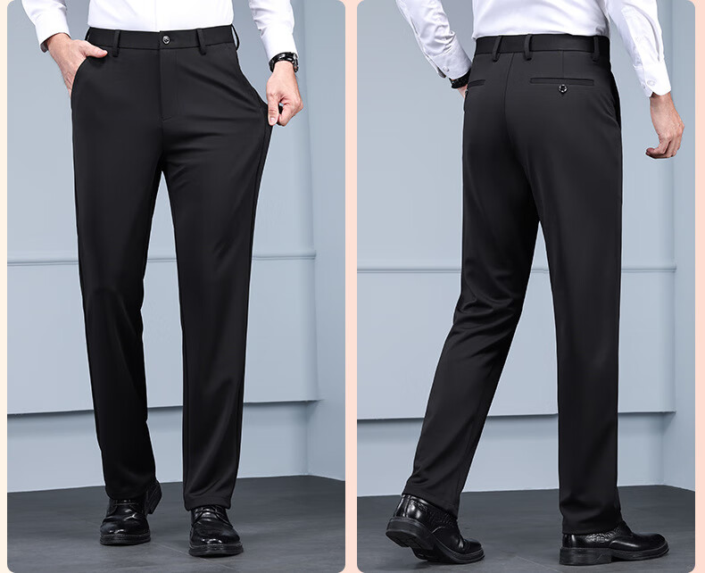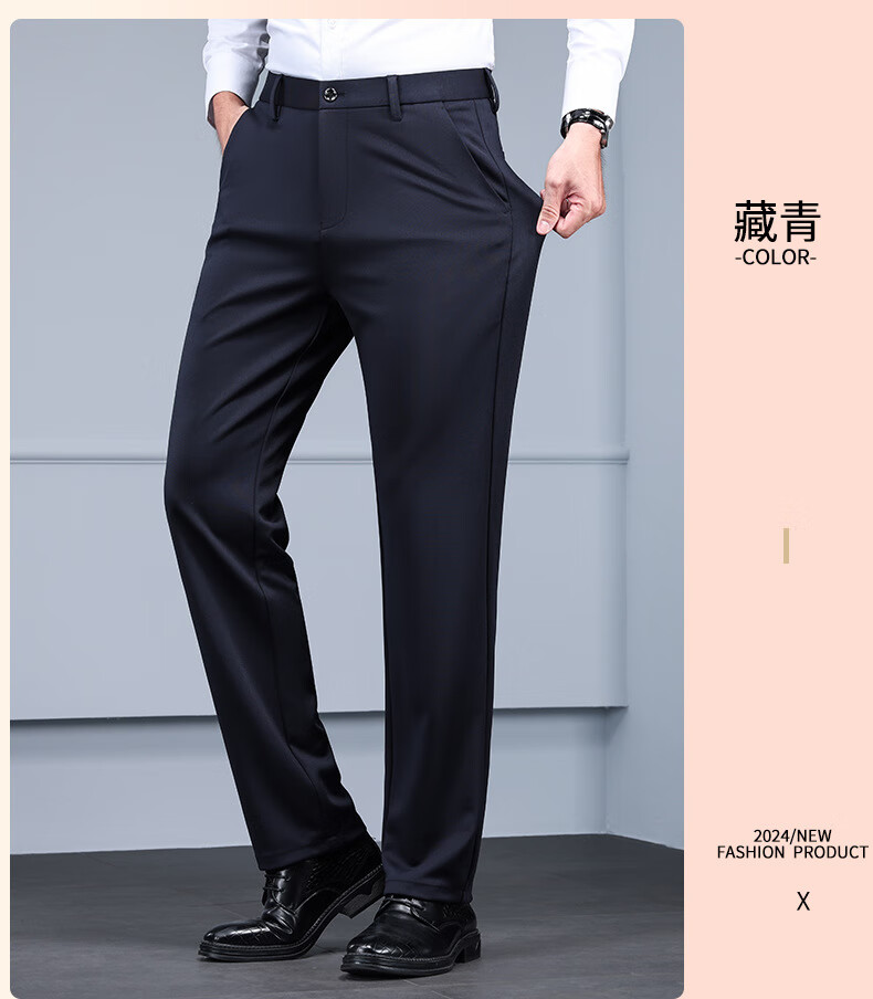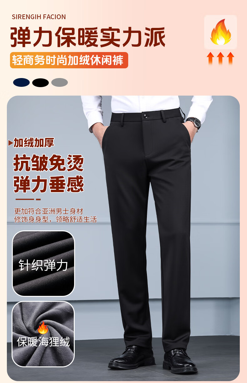 Business trousers, trousers for men, straight-leg loose trousers for autumn and winter, men's velvet and thickened high-elastic suit trousers, velvet and thickened brother pattern 722-black 31 - recommended 120-130Jin Jin is equal to about 0.5 kg