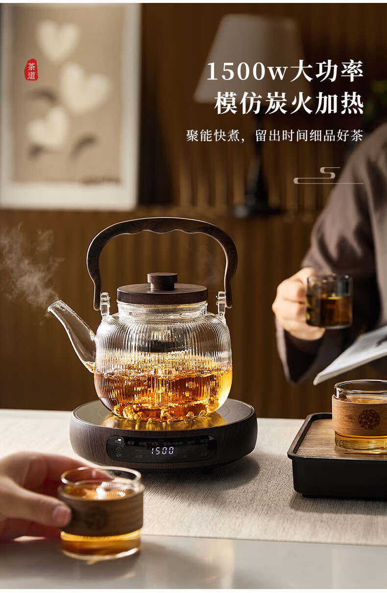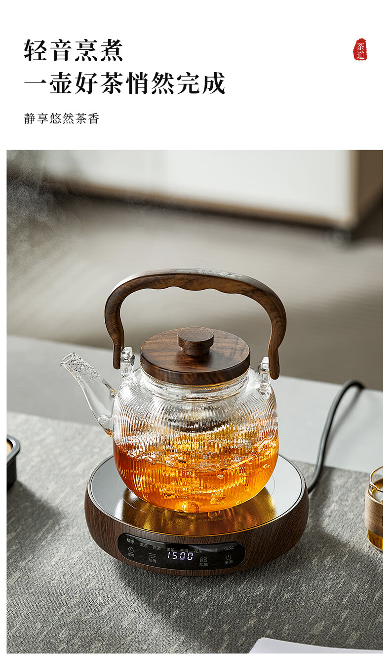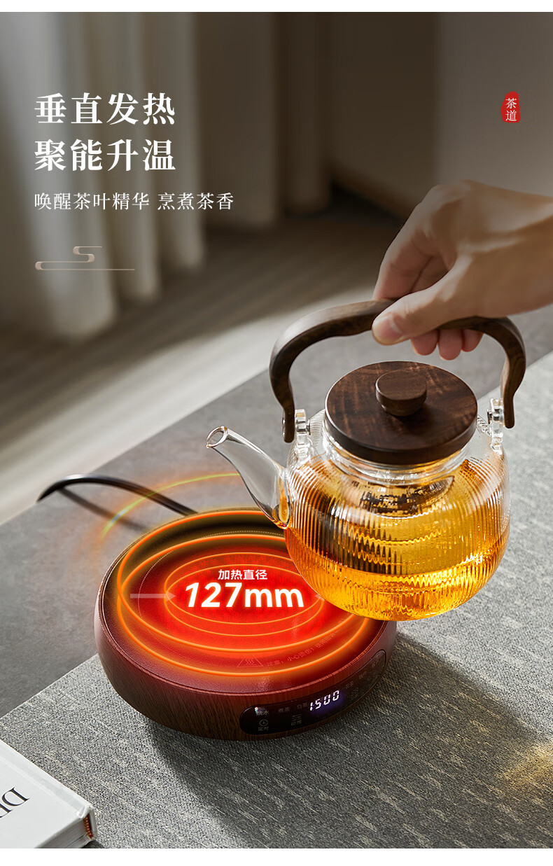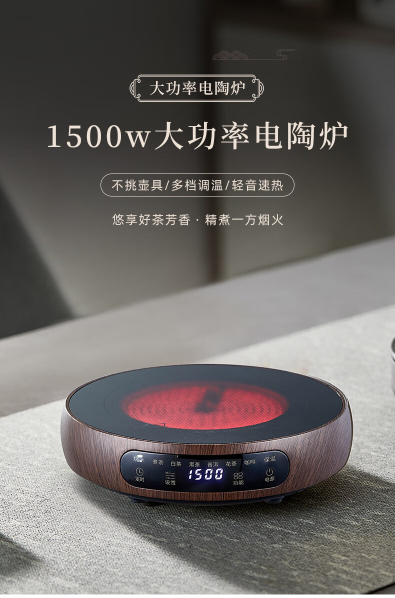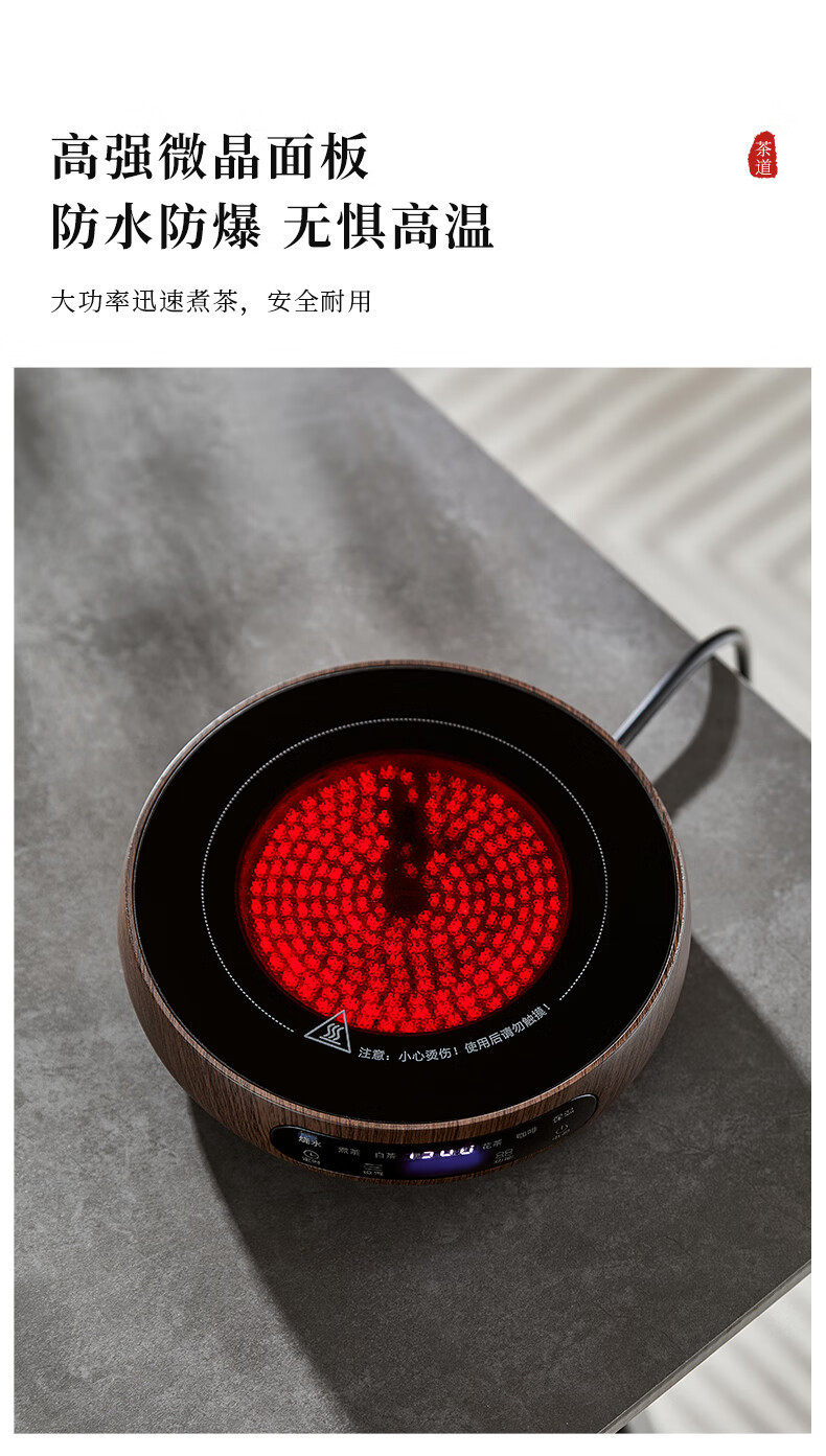 Yipot Tea Electric Ceramic Stove Tea Maker 2025 New Furnace Tea Cooking Set Household Multifunctional Water Stove High Power Tea Cooking Stove Slim and Does Not Take Up Space Wood Grain Color 1500w