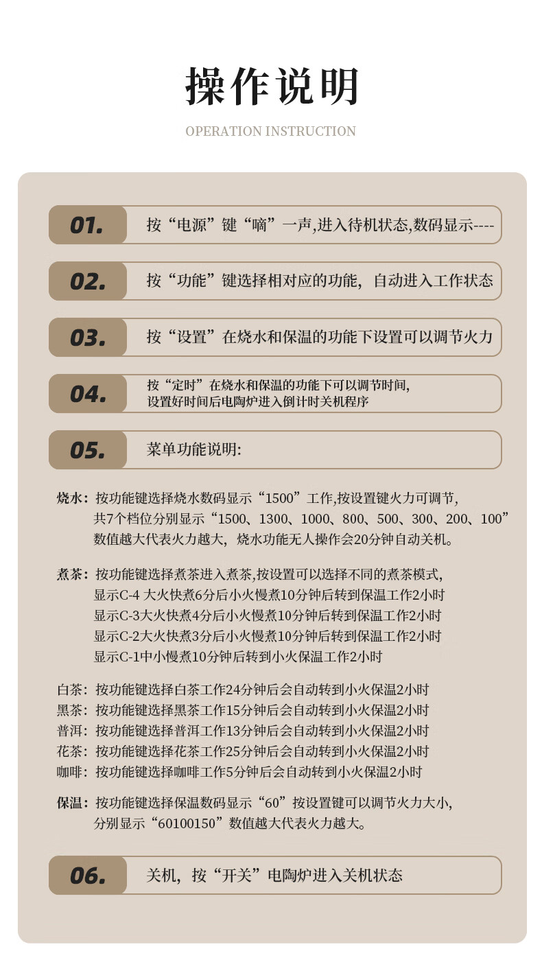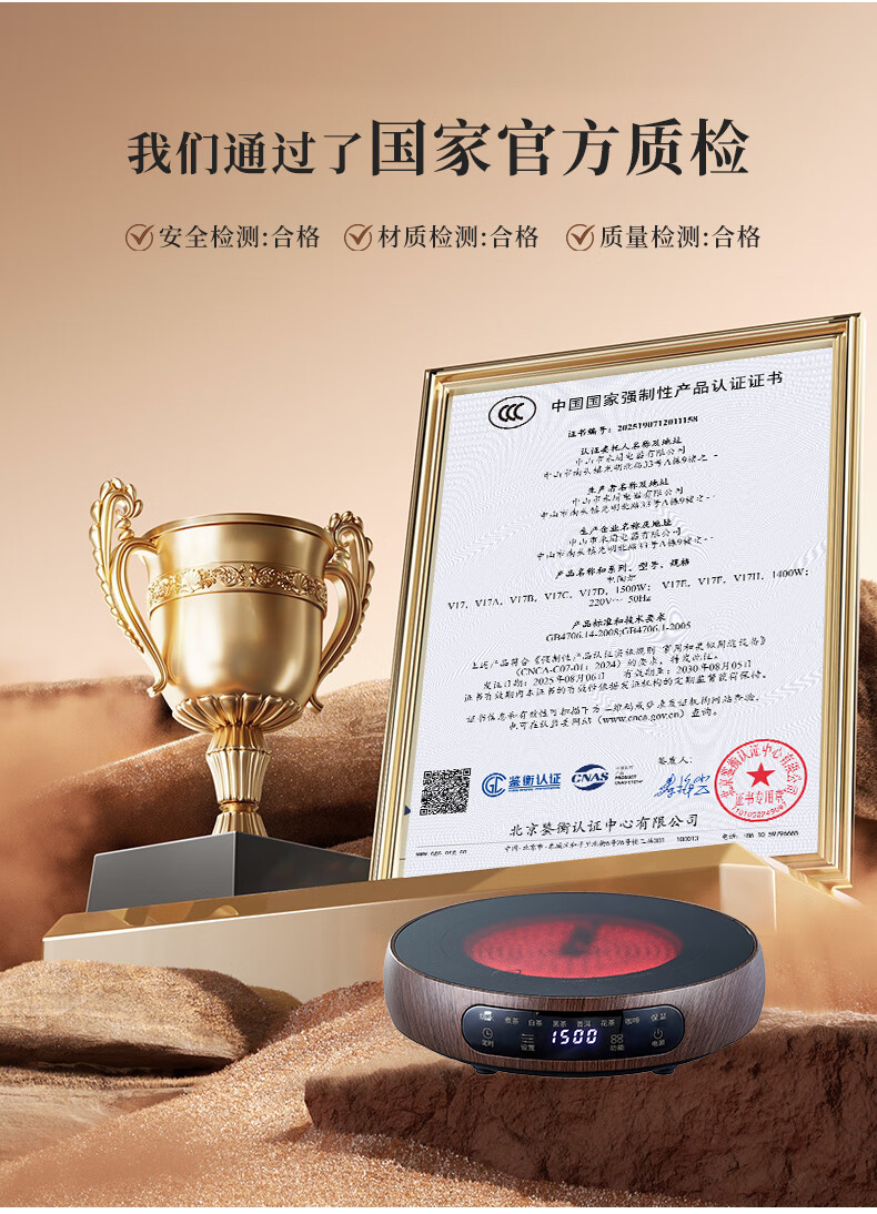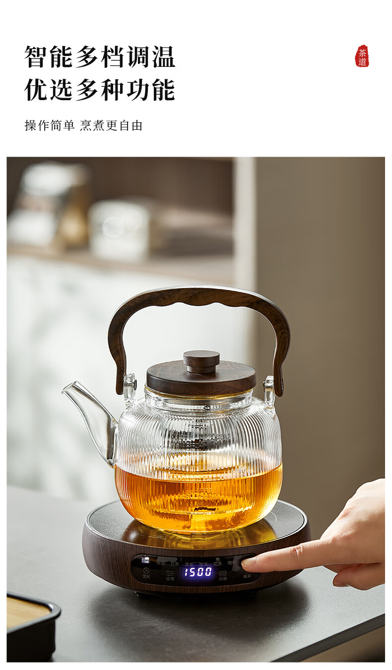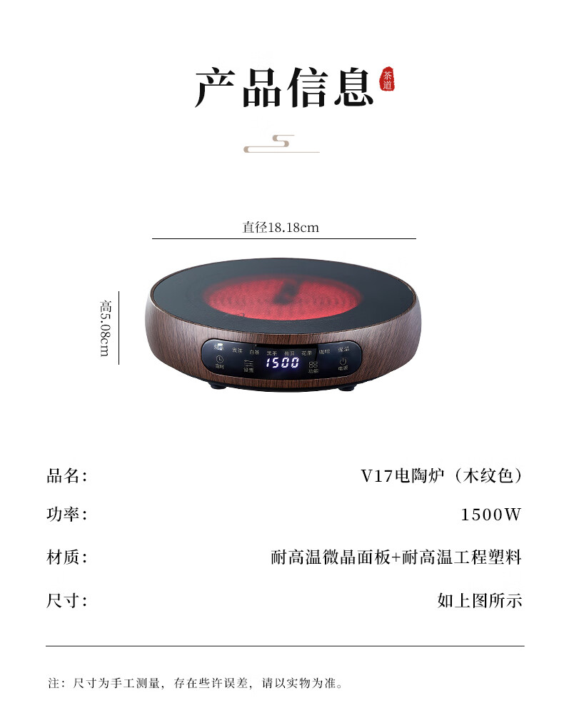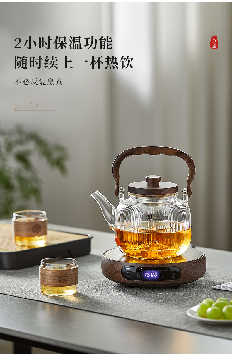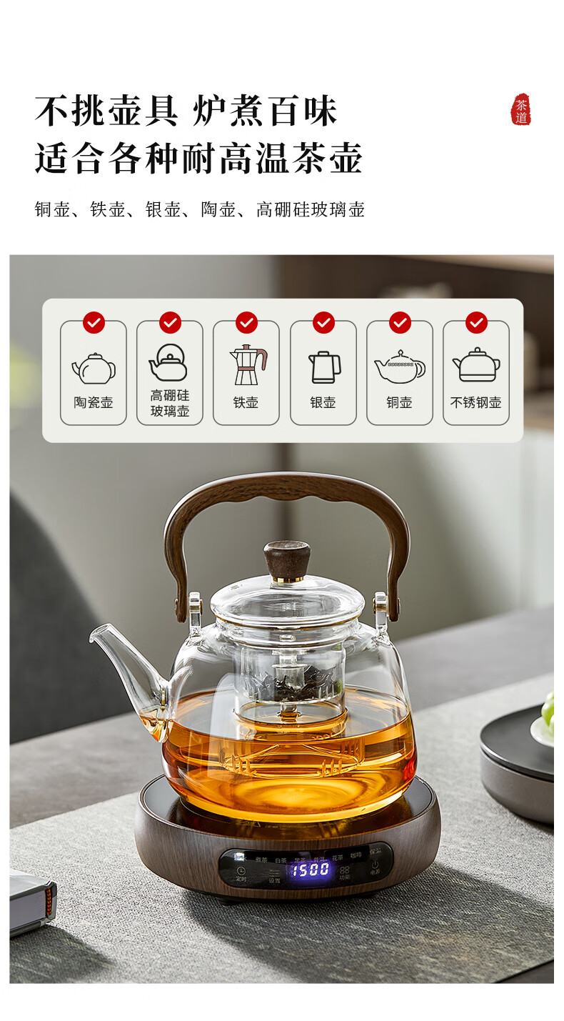 Yipot Tea Electric Ceramic Stove Tea Maker 2025 New Furnace Tea Cooking Set Household Multifunctional Water Stove High Power Tea Cooking Stove Slim and Does Not Take Up Space Wood Grain Color 1500w