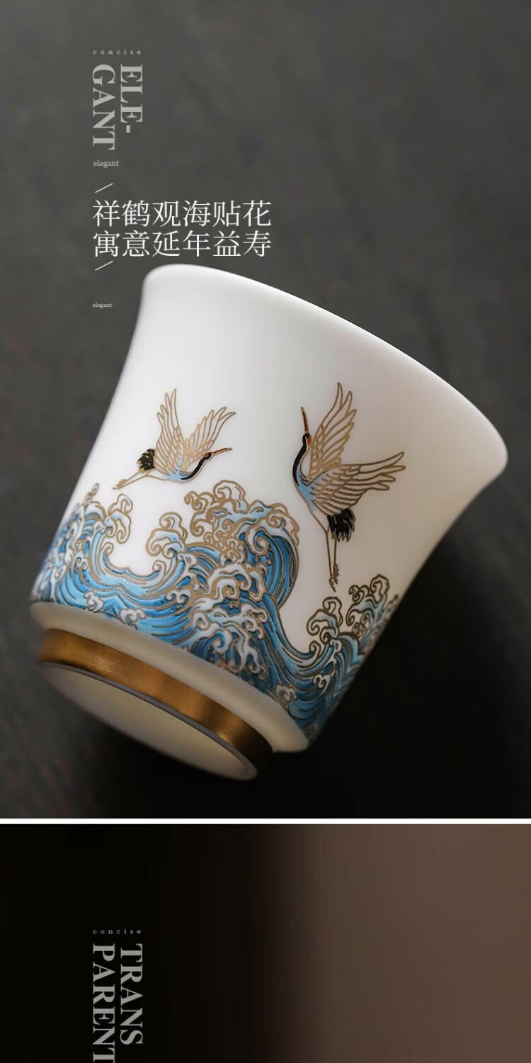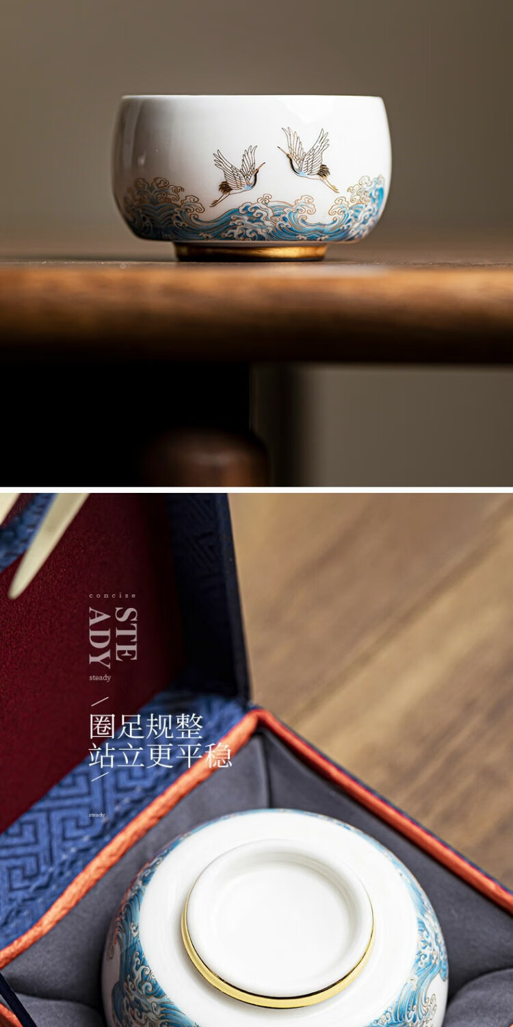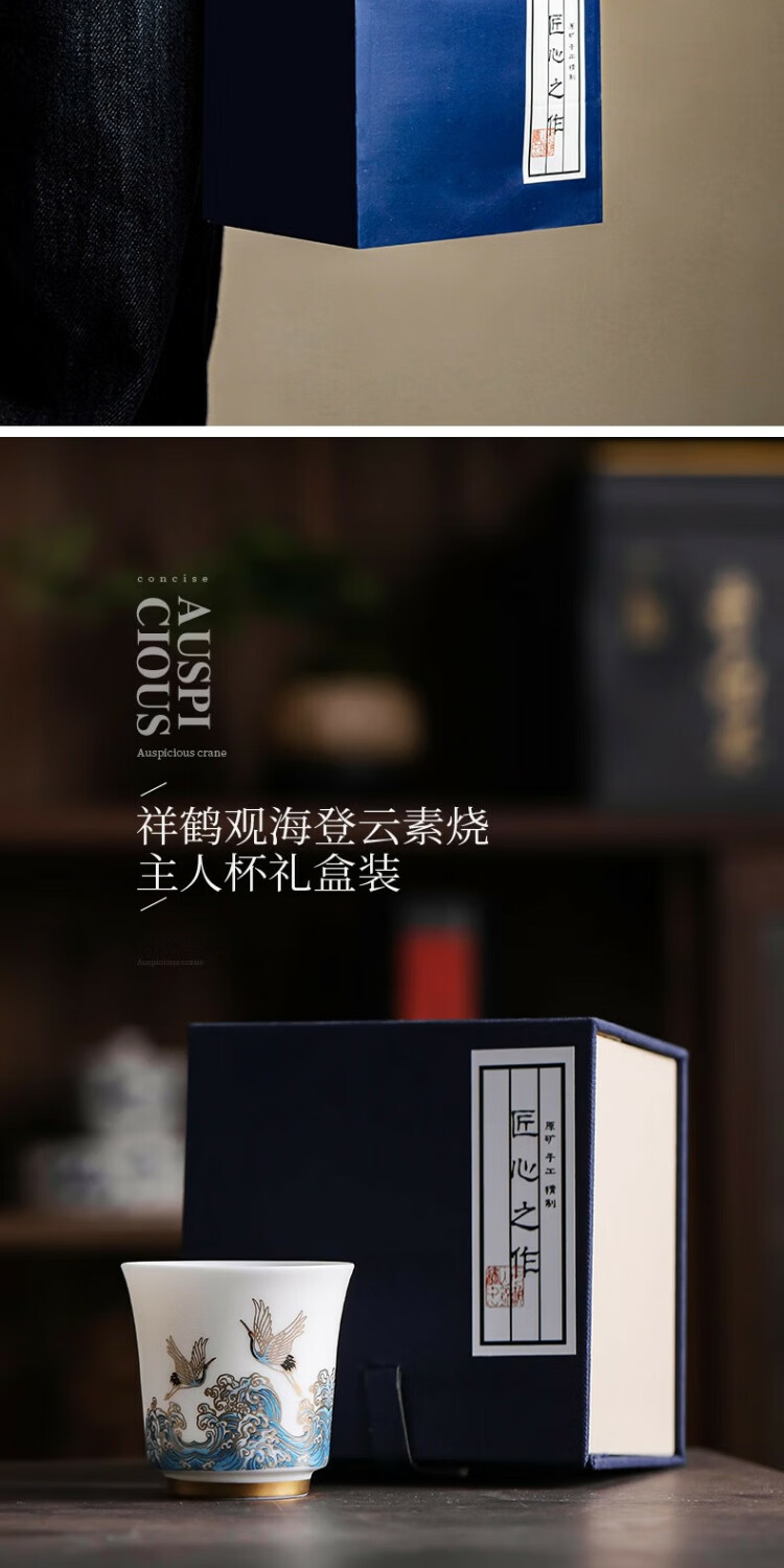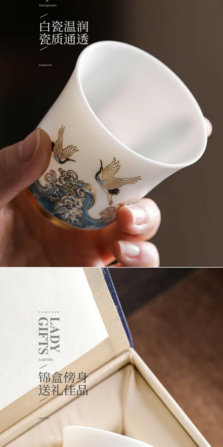 Xianghe Guanhai Tea Cup Master Cup Large Single Dehua White Porcelain Mutton Fat Jade Kung Fu Tea Set Tea Cup Xianghe Guanhai Dengyun Sukiyaki Master Cup Gift Box-125ml