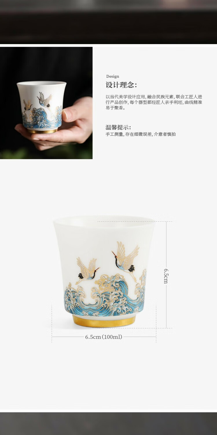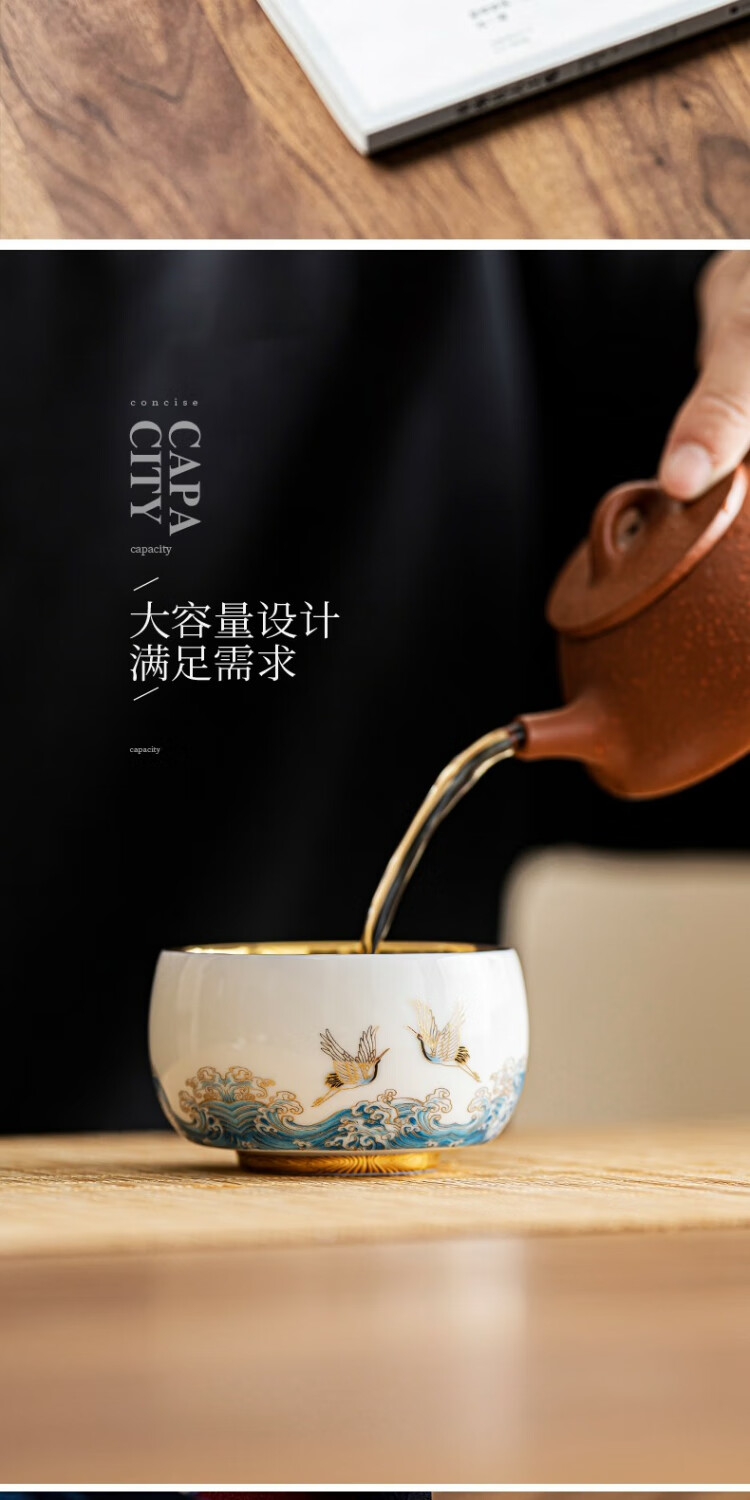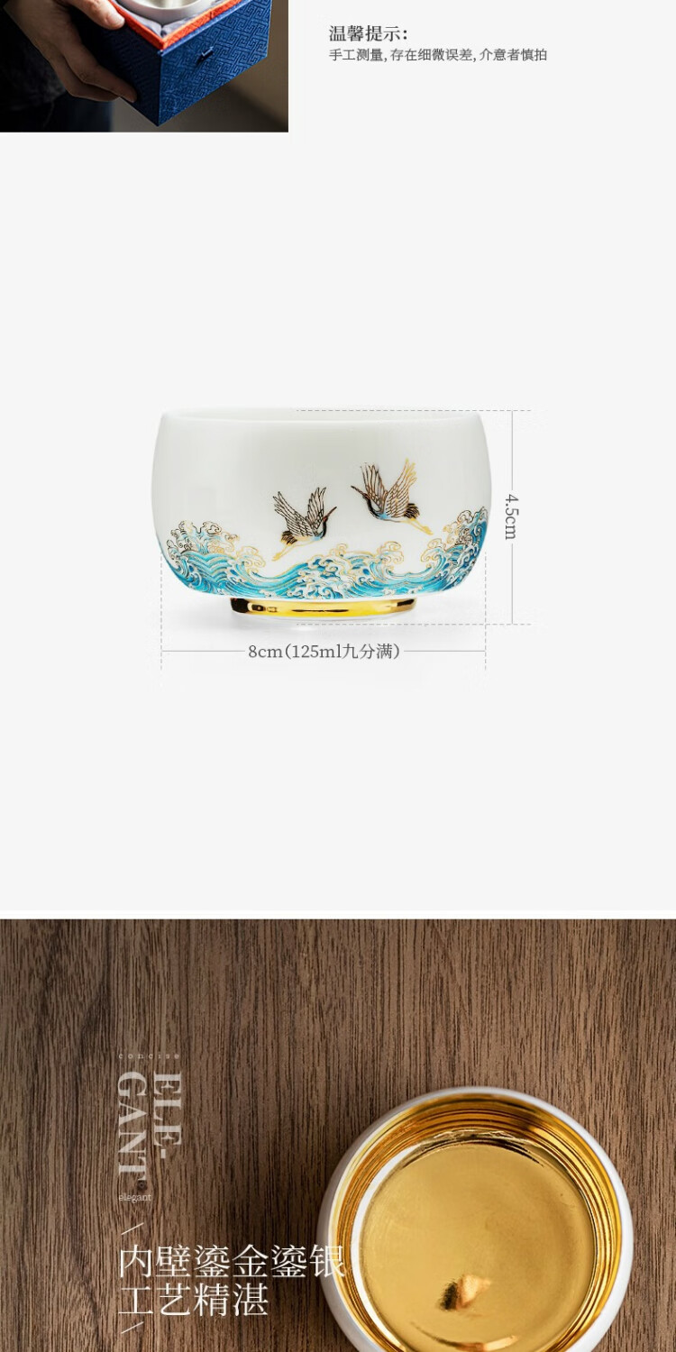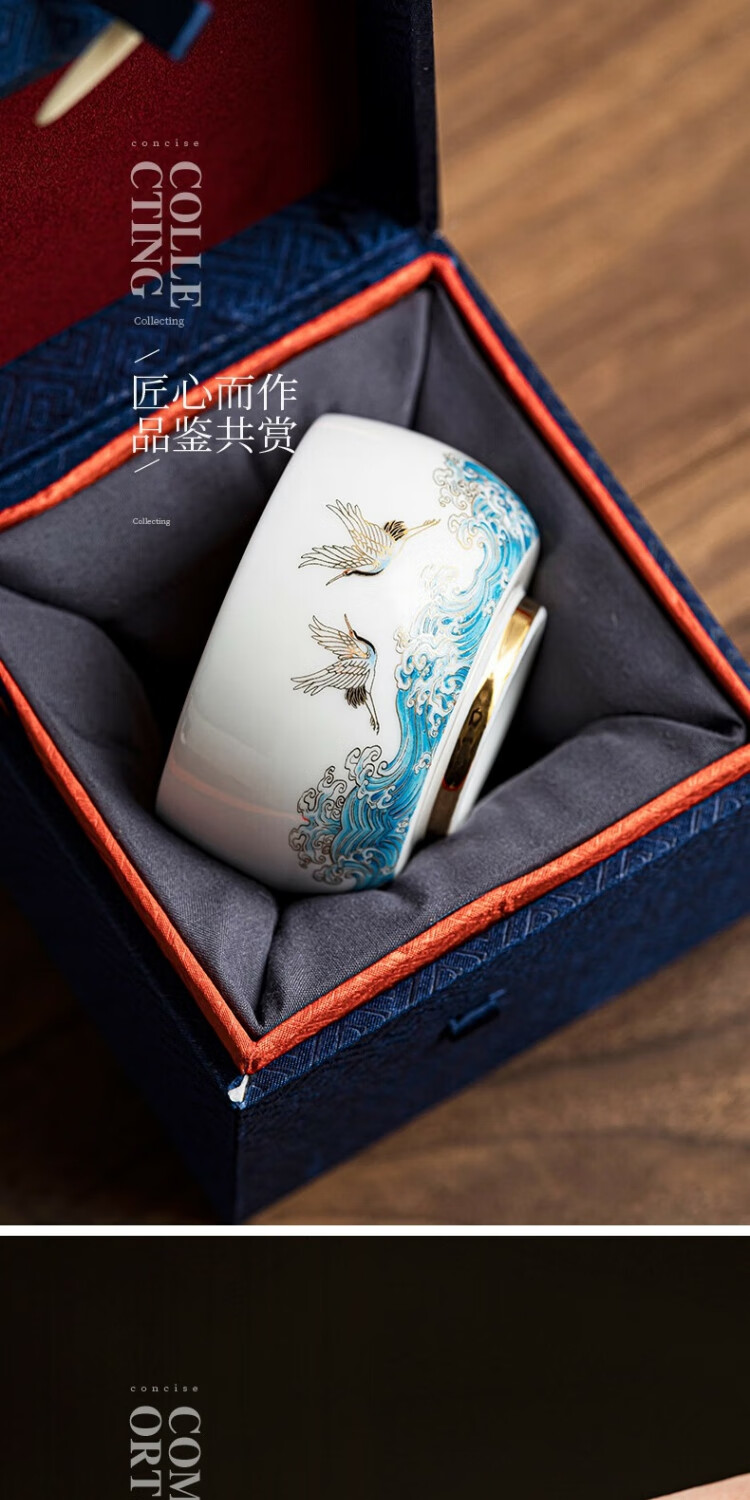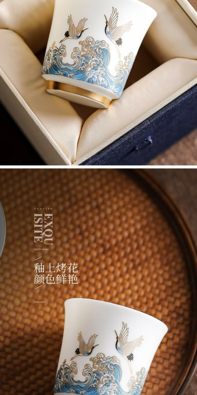 Xianghe Guanhai Tea Cup Master Cup Large Single Dehua White Porcelain Mutton Fat Jade Kung Fu Tea Set Tea Cup Xianghe Guanhai Dengyun Sukiyaki Master Cup Gift Box-125ml