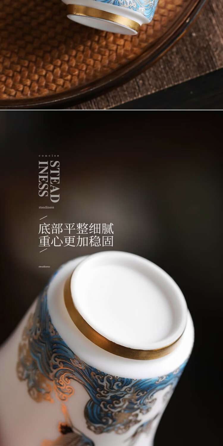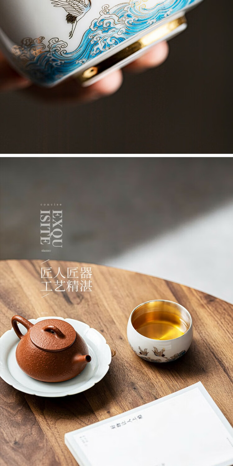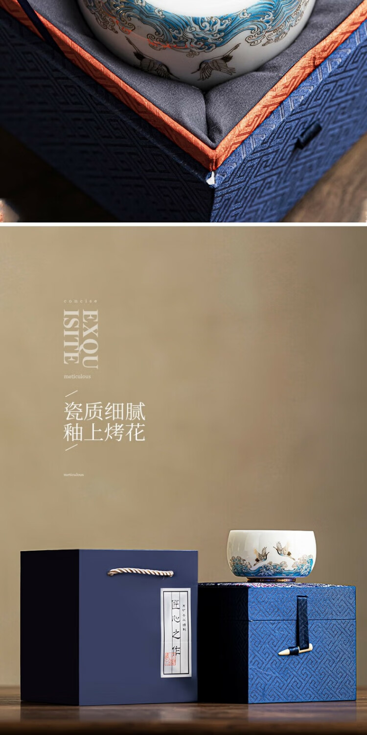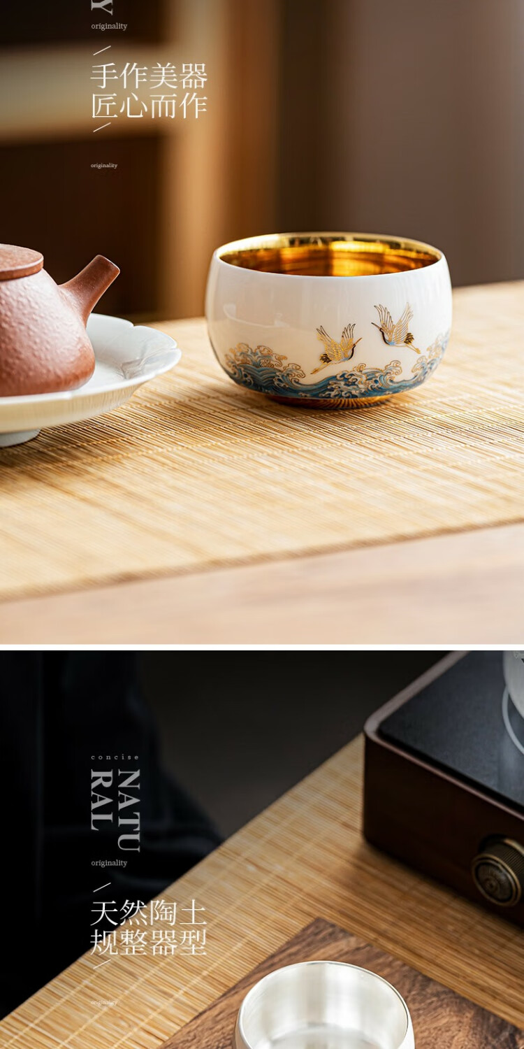 Xianghe Guanhai Tea Cup Master Cup Large Single Dehua White Porcelain Mutton Fat Jade Kung Fu Tea Set Tea Cup Xianghe Guanhai Dengyun Sukiyaki Master Cup Gift Box-125ml