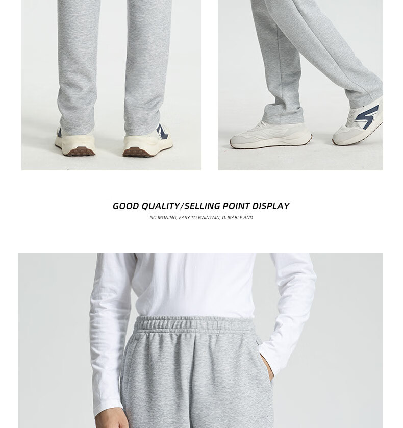 ANTA sweatpants men's autumn and winter new loose straight men's breathable cotton trousers sweatpants youth casual pants men's gray gray regular straight - embroidered logo - zipper pocket M /170 (100-120Jin Jin is equal to 0.5 kg)