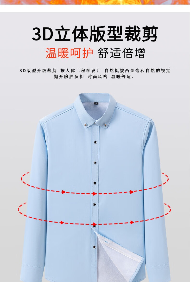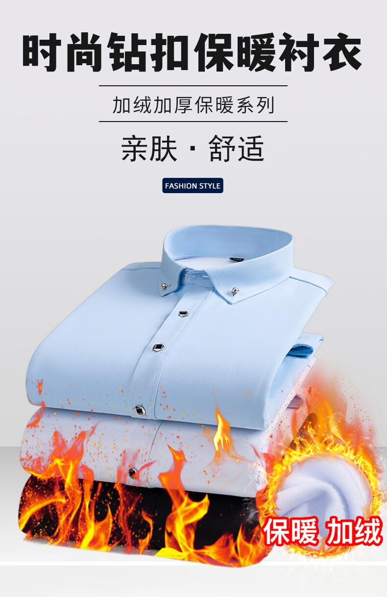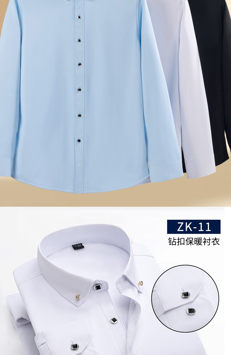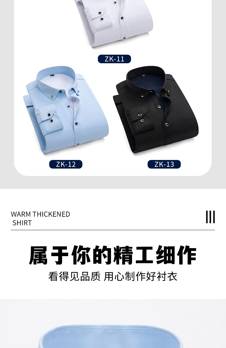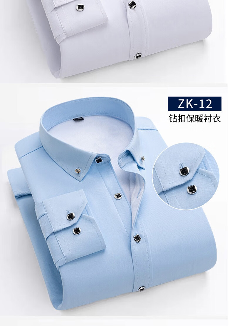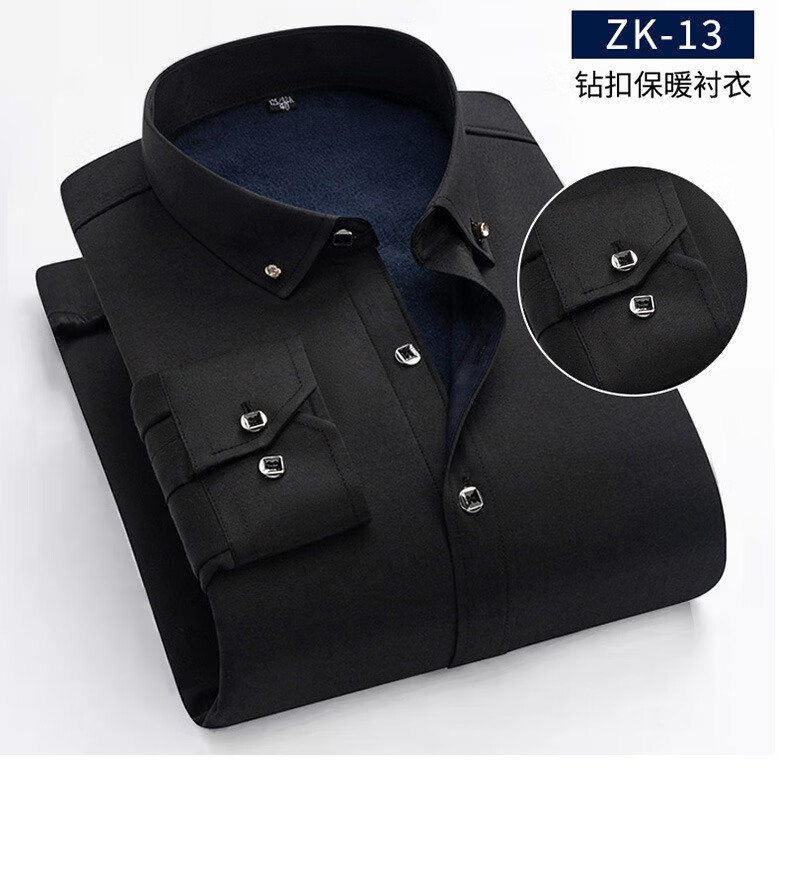 Winter men's velvet shirt long-sleeved thickened warm white shirt business slim youth professional formal work clothes black 44