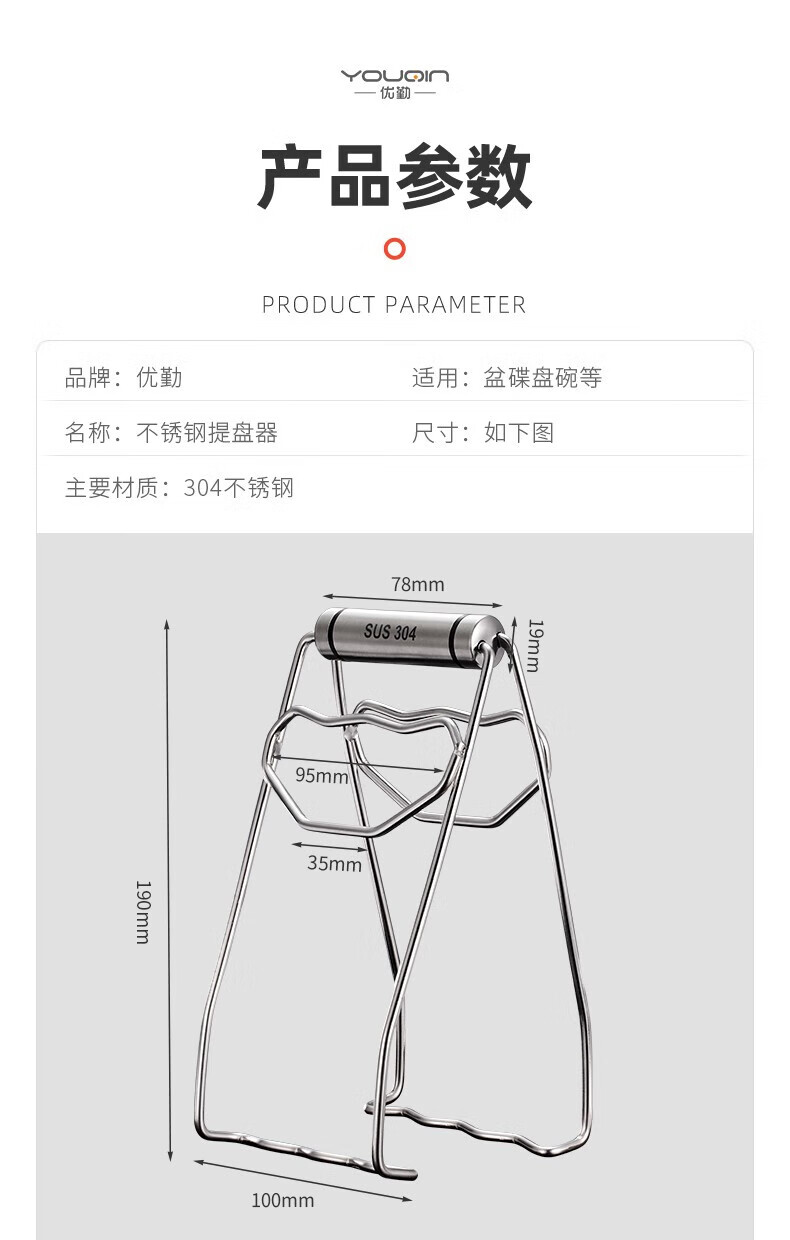 Youqin (YOUQIN) Youqin anti-scalding bowl clip, steamed vegetable clip 304 stainless steel kitchen artifact bowl anti-scalding anti-slip plate clip anti-scalding plate clip 304 stainless steel