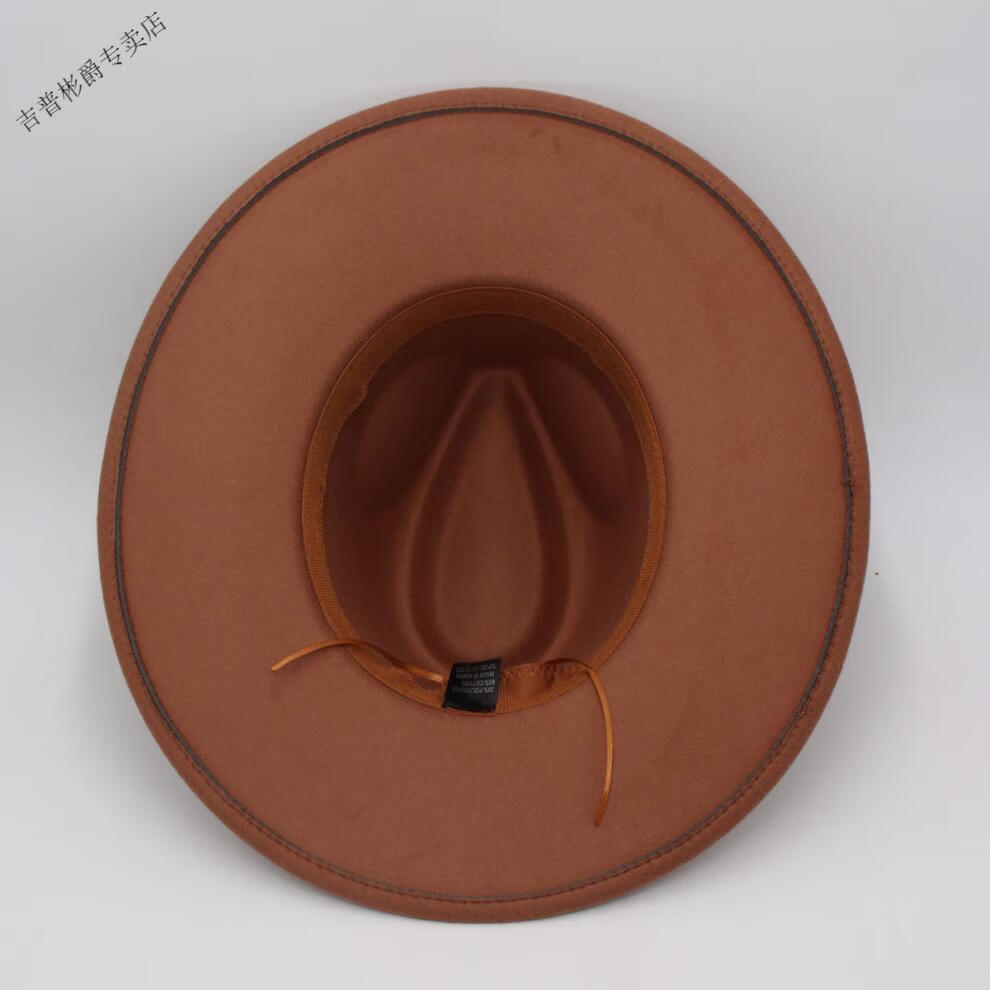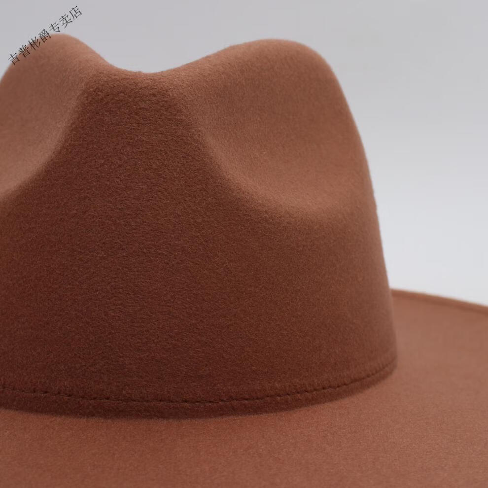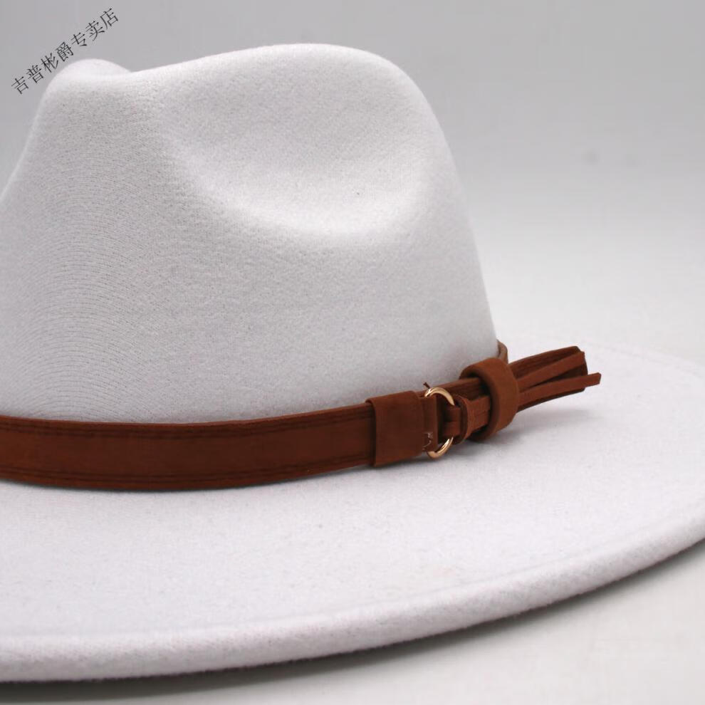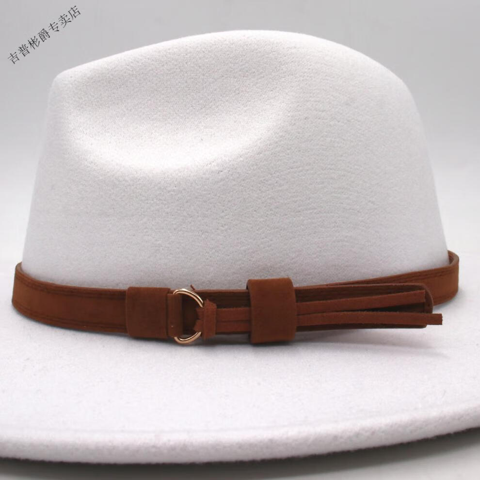 JEEP SPIRIT9.5cm big brim British style hat wide brim European and American jazz hat simple felt hat classic retro woolen hat for men and women white (buckle belt) one size fits all (56-60cm) brim width 9.5cm