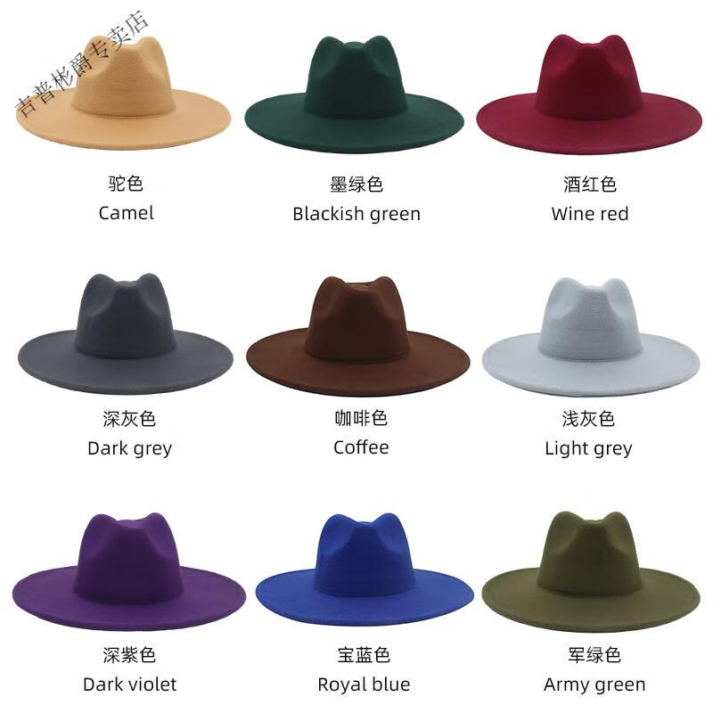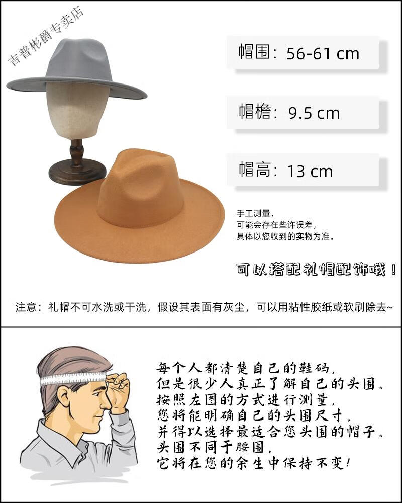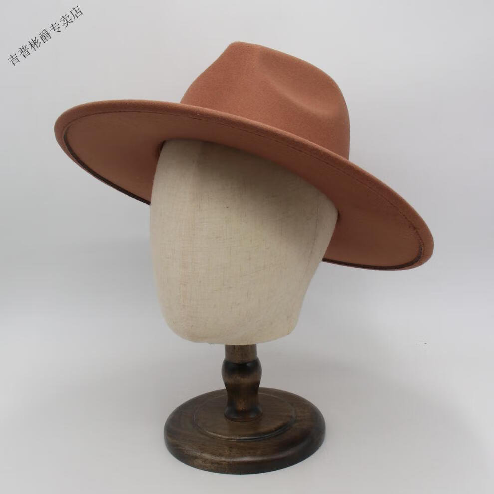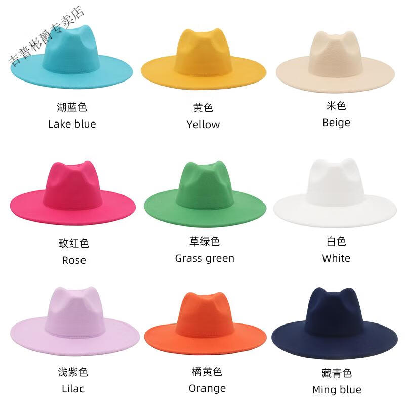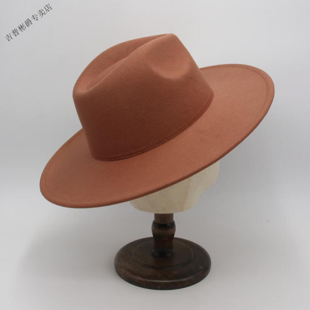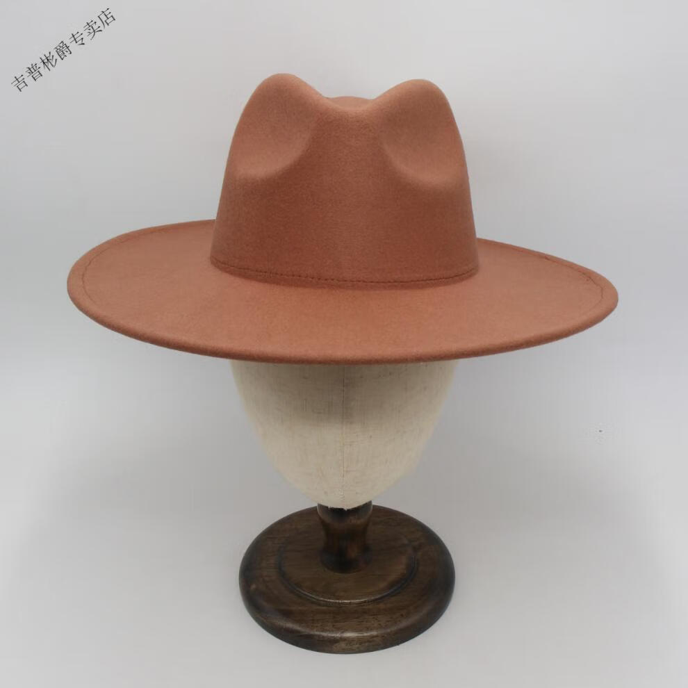 JEEP SPIRIT9.5cm big brim British style hat wide brim European and American jazz hat simple felt hat classic retro woolen hat for men and women white (buckle belt) one size fits all (56-60cm) brim width 9.5cm