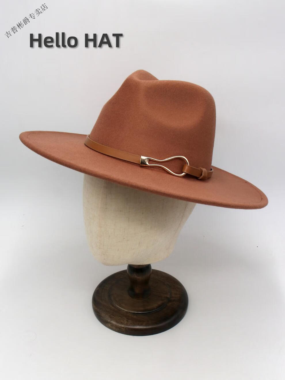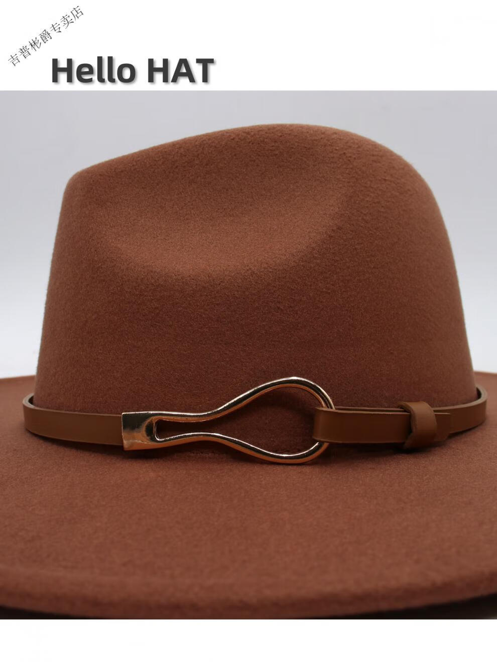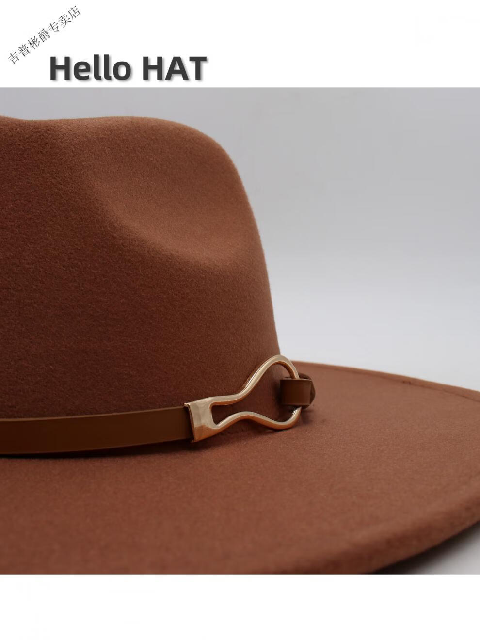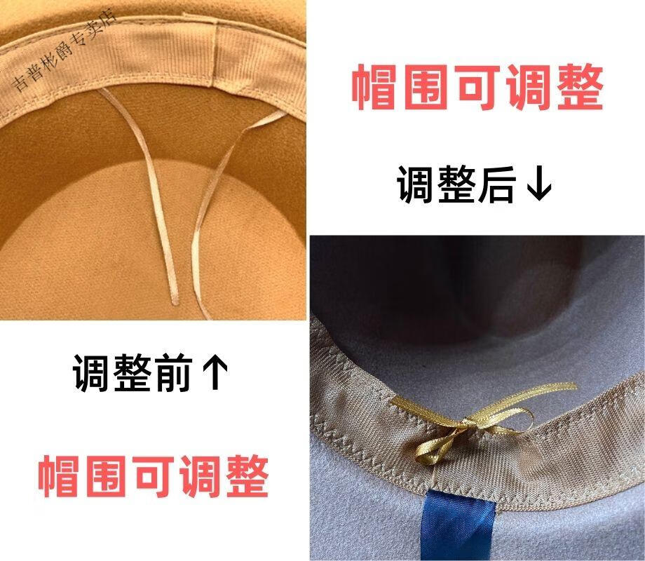 JEEP SPIRIT9.5cm big brim British style hat wide brim European and American jazz hat simple felt hat classic retro woolen hat for men and women white (buckle belt) one size fits all (56-60cm) brim width 9.5cm