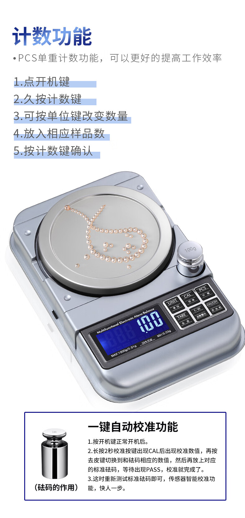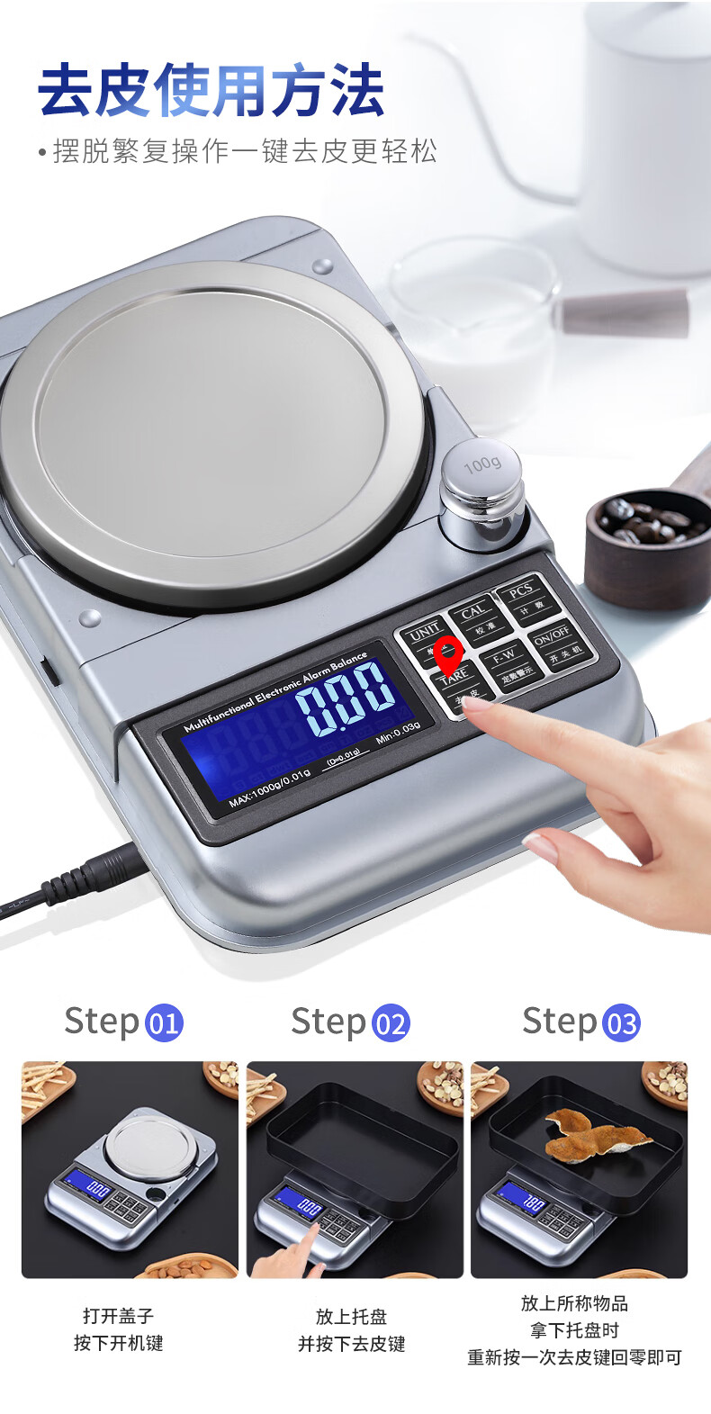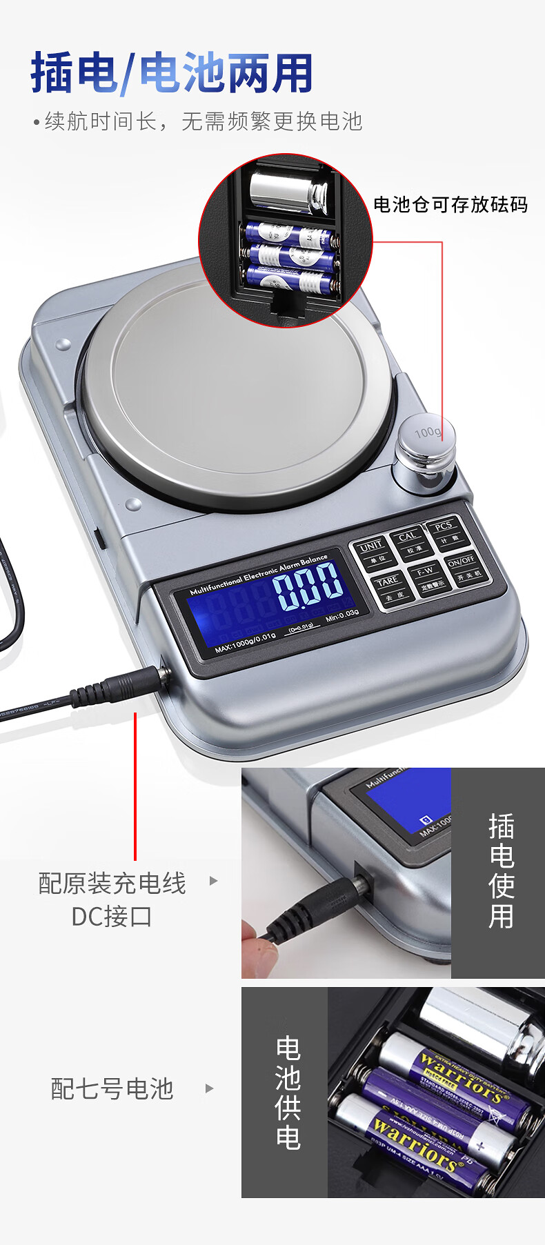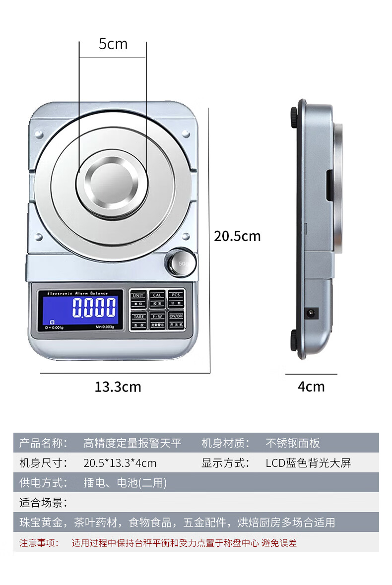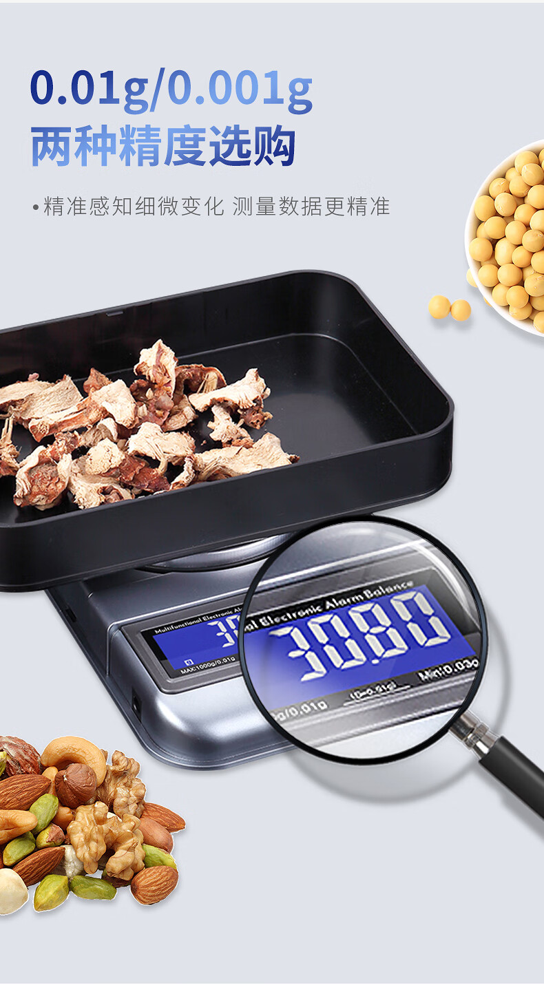 Kubei Home Commercial High-precision Electronic Scale Small Quantitative Balance Jewelry Scale Precision Weighing Gold Special Gram Weigher Dual-use Model 500g/0.01g Plug-in/Battery